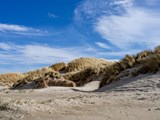 Den fine, brede sandstrand bag de marehalmsbeklædte klitter har det eftertragtede Blå Flag, der er kvalitetsstemplet for høj vandkvalitet og fine forhold på stranden, og er blandt de bedste strande i Danmark. Stranden er perfekt til hyggeligt samvær med familien, hvor børnene bygger sandslotte, graver dæmninger og samler sten og skaller, og det er nemt at finde læ til afslapning i klitterne.