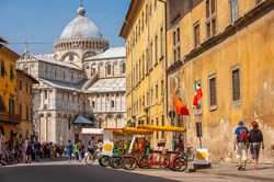 Byens centrum går igennem fire historiske bykvarterer, der har bevaret jeres autenticitet og ægthed. Fra banegården i syd til Piazza dei Miracoli (Miraklernes Plads) i nord. Ponte di Mezzo, den centrale bro over Arno, er centrum for de historiske kvarterer, San Martino, Santa Maria, San Francesco og Sant’Antonio.