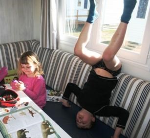 Syvårige Otto føler sig hurtigt hjemme i det mobil home, som de næste par dage skal være vores hjem på Nordsø Camping i Årgab ved Hvide Sande og Vesterhavet.
