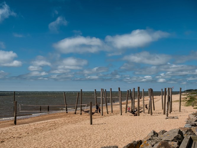 Under en lang gåtur på Sædding strand kan I opleve skulpturen Mennesket ved Havet, som er blevet et varemærke for Esbjerg. Det røde- og hvidstribede fyrtårn ved Sædding strand giver en maritim stemning. Her kan I også se bunkerne, der næsten er fritlagte på grund af vejret. I kan også bruge tiden på stranden til at samle muslingeskaller, bygge sandslotte eller nyde en hyggelig familiepicnic.