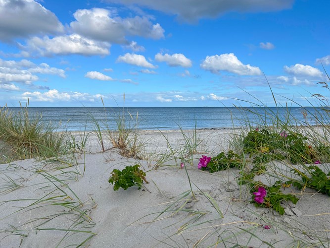 Den dejlige børnevenlige strand er den helt perfekte ramme om en dag i samvær med familien med hygge, afslapning og leg med børnene i det fredelige lave vand. Stranden er velegnet til drageflyvning og windsurfing, og her er masser af smukke sten og skaller. Der er p-plads lige i nærheden, men ønsker I at tage bilen med ned på stranden, er det også tilladt.