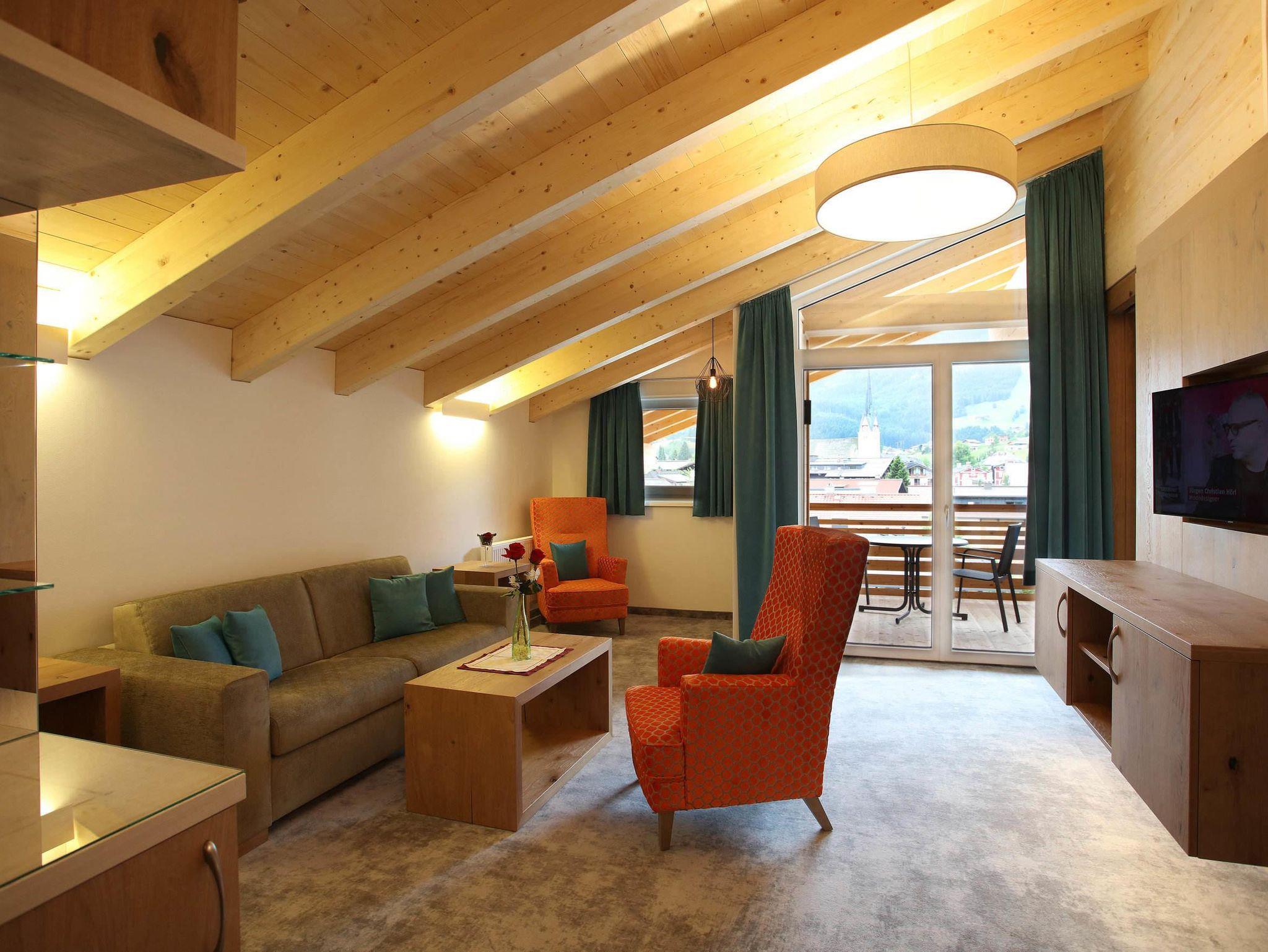 Zimmer ca. 24 m² mit Dusche, WC, Fön, Sitzecke, Radio, Telefon, Sat-TV, Safe, Balkon, WLAN