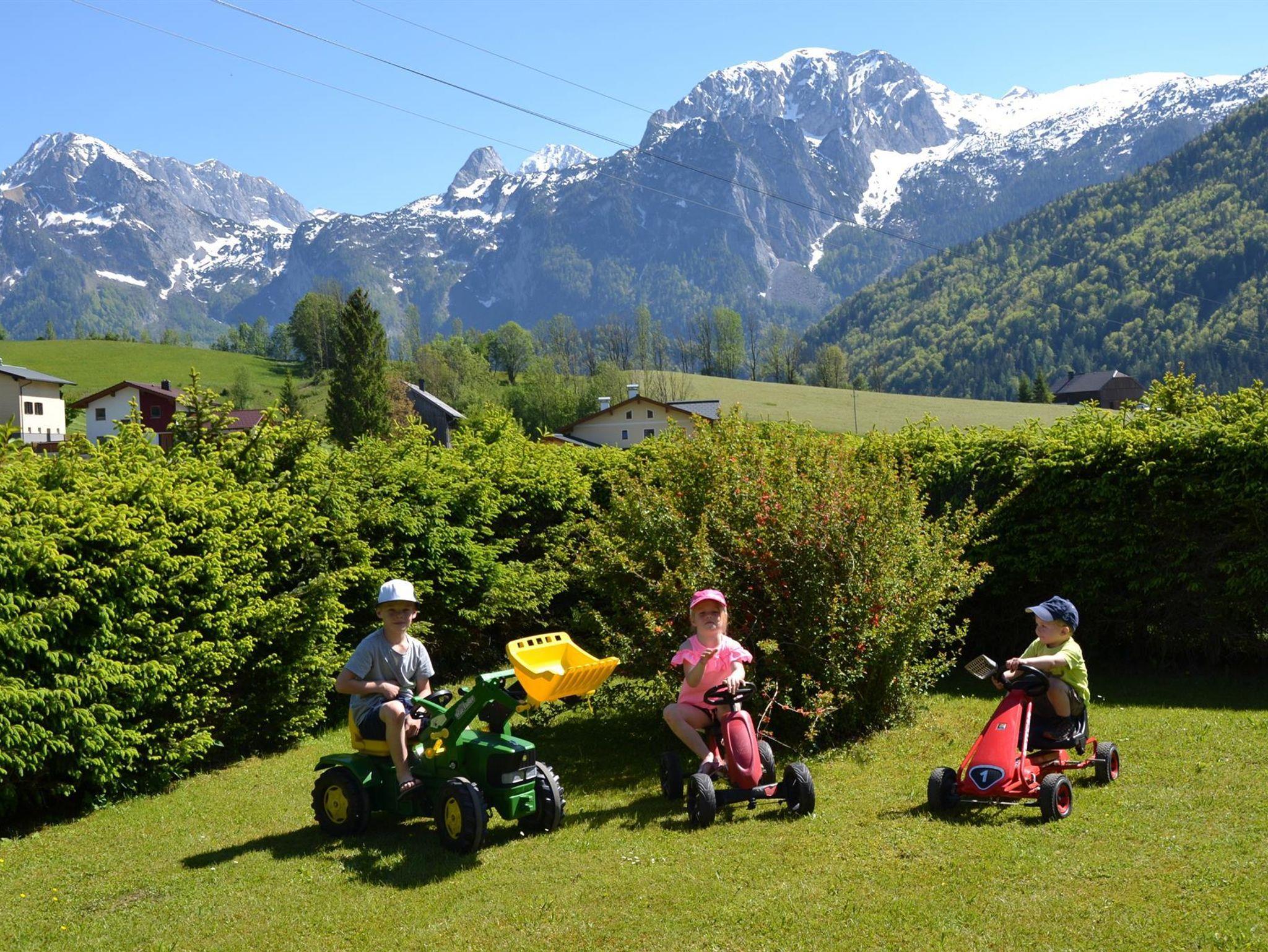 Spielmöglichkeiten für Ihre Kinder: Trampolin, Rutsche, Schaukel, Sandkasten,Tischtennis und Tischfußball sowie ein Kindertraktor und Go-Kart.