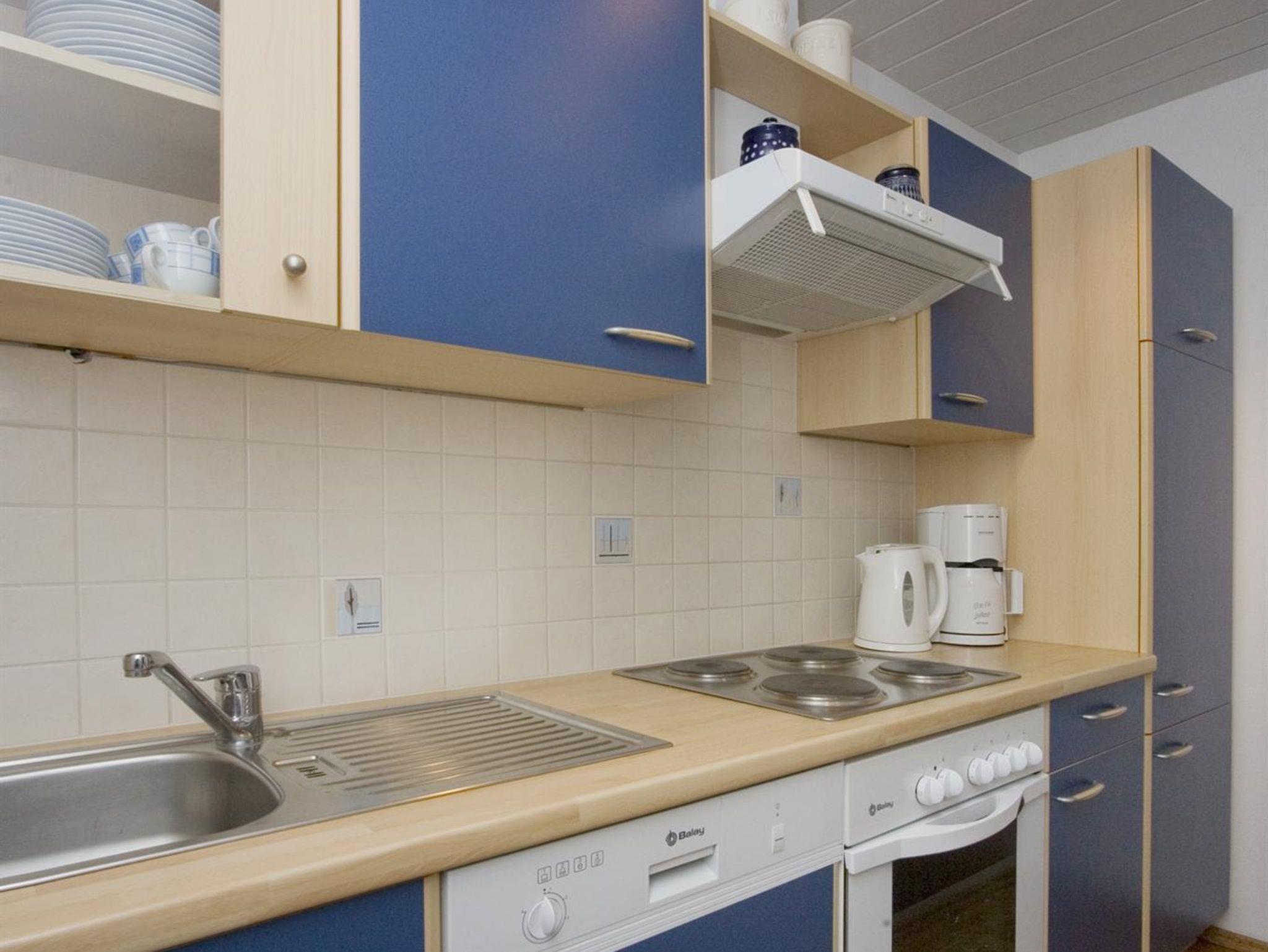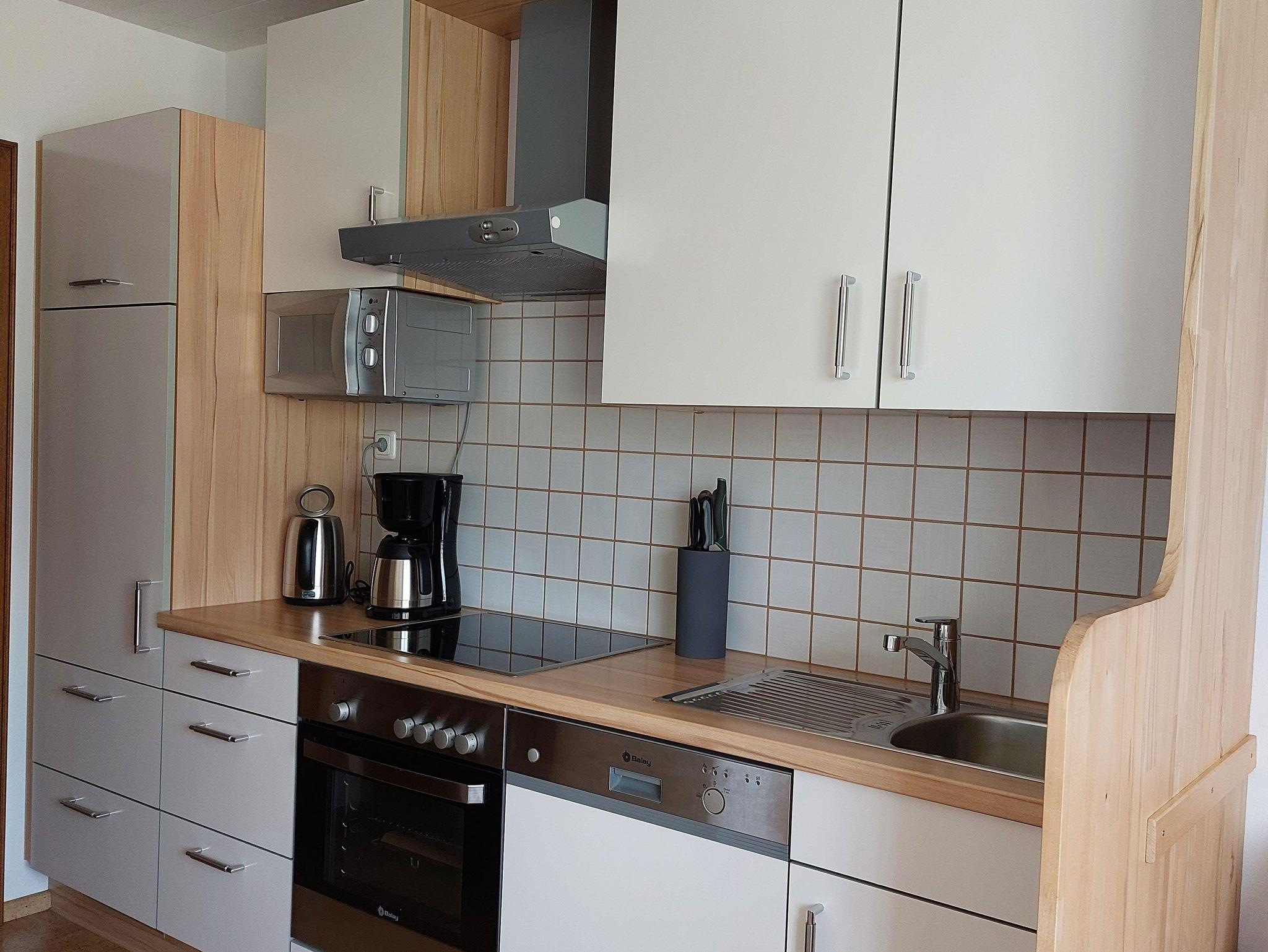 • Küche mit E-Herd, Backrohr, Geschirrspüler, Kühlschrank, Wasserkocher und allem wichtigen Geschirr