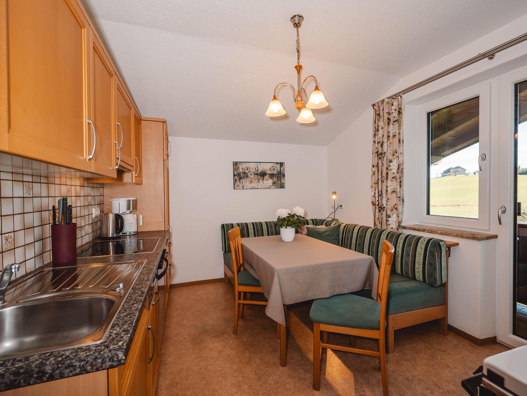• Wohnküche mit gemütlicher Sitzecke, Flatscreen-TV und Radio