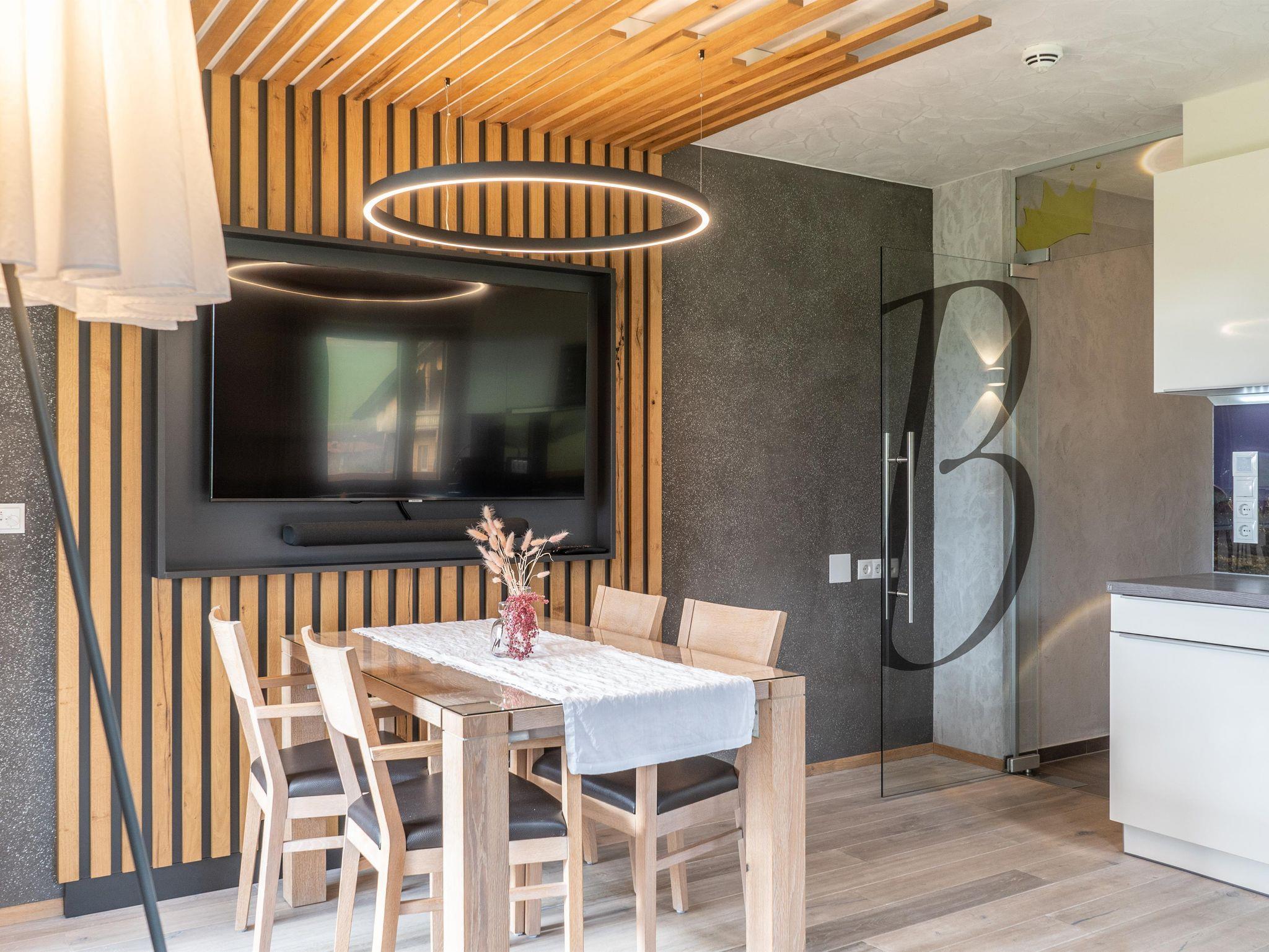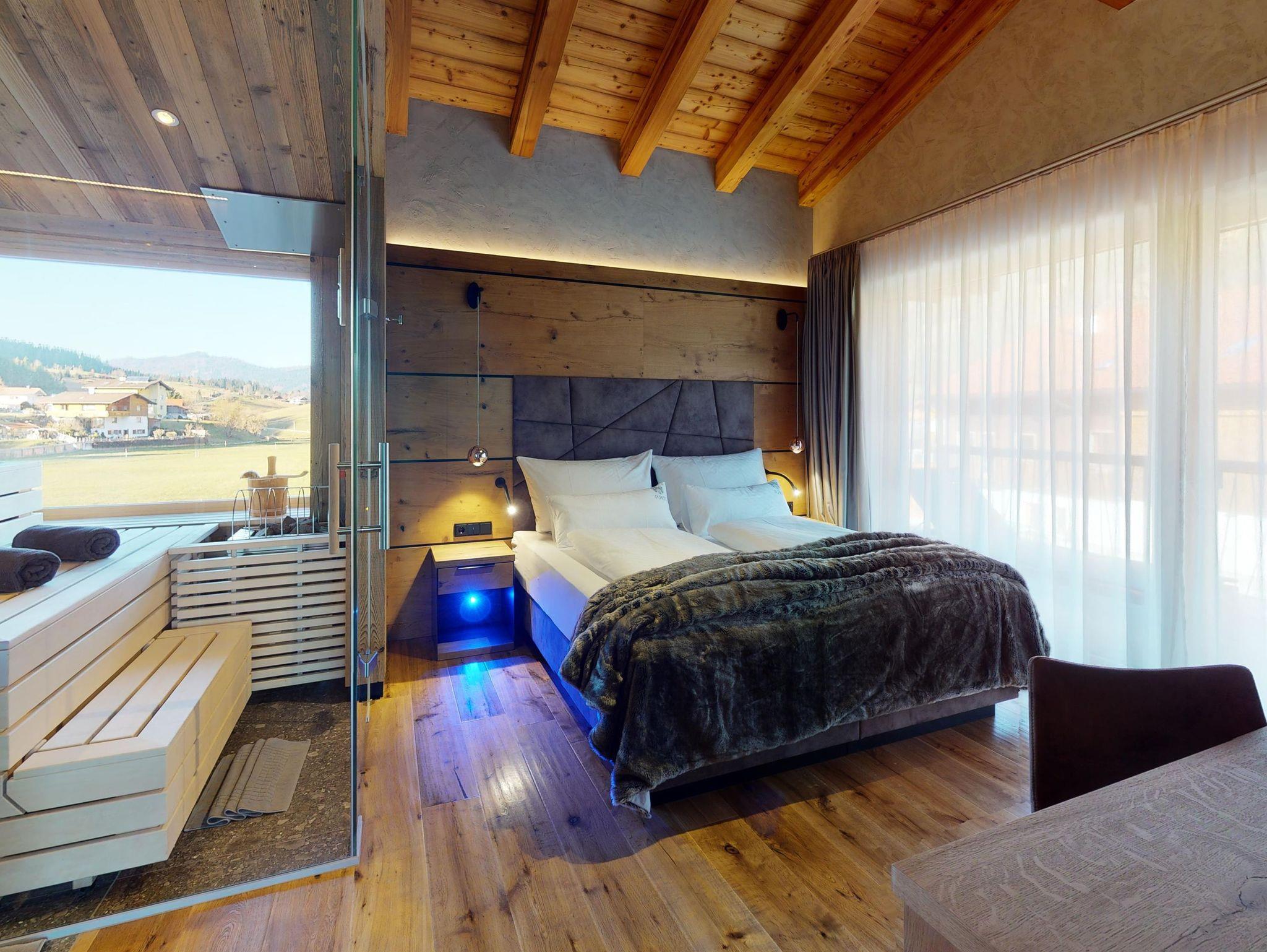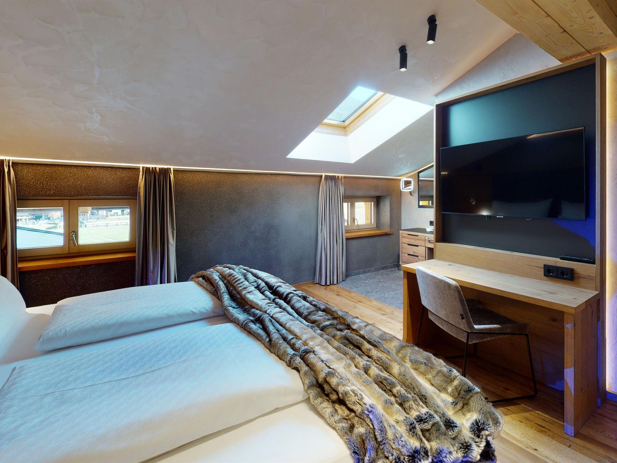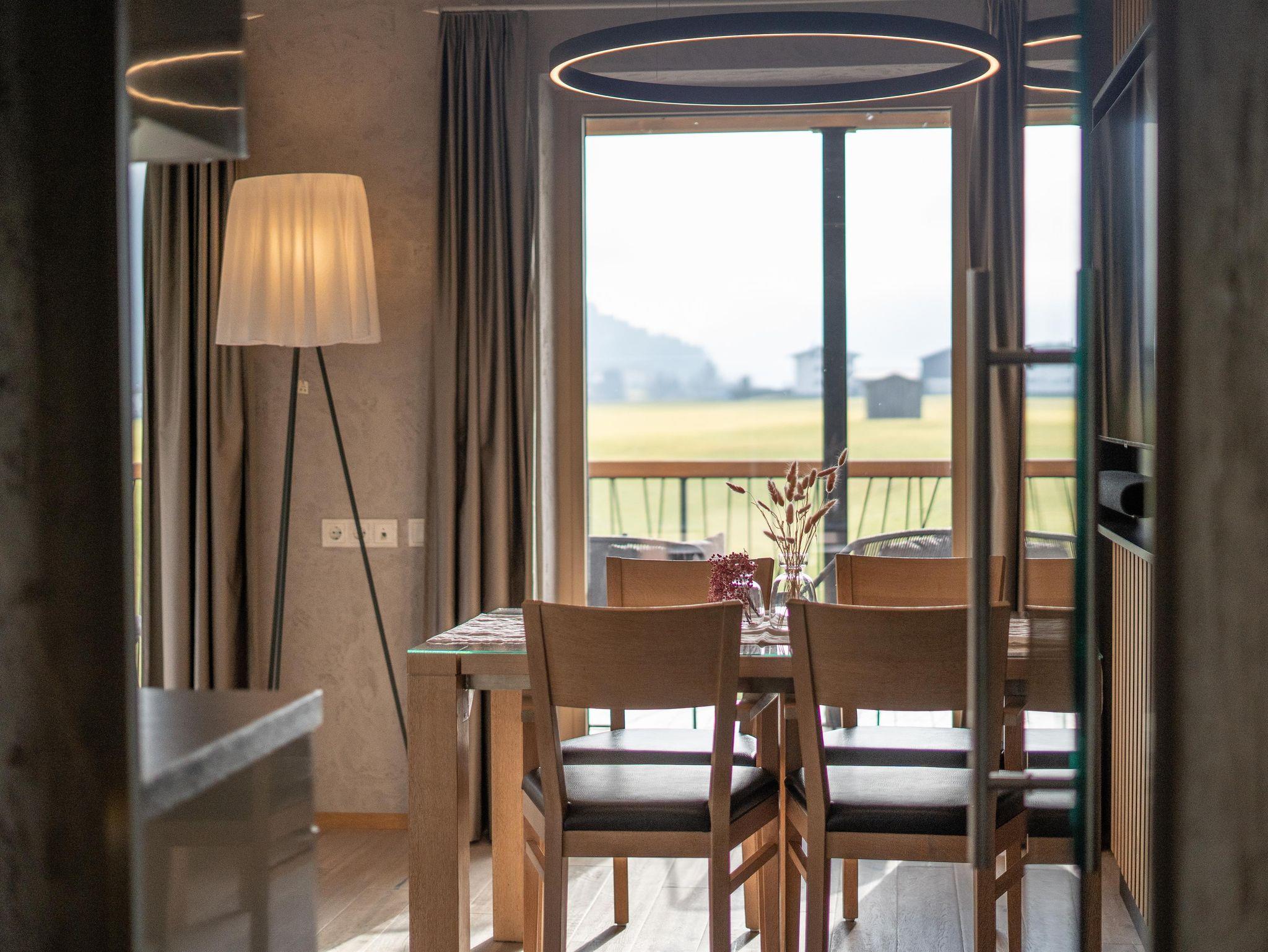Unsere exquisite Appartement PUREST Passion ist eine neue, helle und freundliche 47m² Ferienwohnung bestehend aus einem Wohnraum mit Schlafmöglichkeit für die 3. und 4. Person sowie einer Küchenzeile. Ein separates Schlafzimmer für 2 Personen ist mit einer Schrank-, Schreibtischkombination ausgestattet. Das modern eingerichtete Bad mit begehbarer Dusche bietet als Besonderheit eine Physotherm Infrarotkabine. Das WC ist vom Bad getrennt. Der 21m² große Süd- und Ost-Balkon bietet einen wunderschönen Panorama-Ausblick auf Wiesen und Berge.