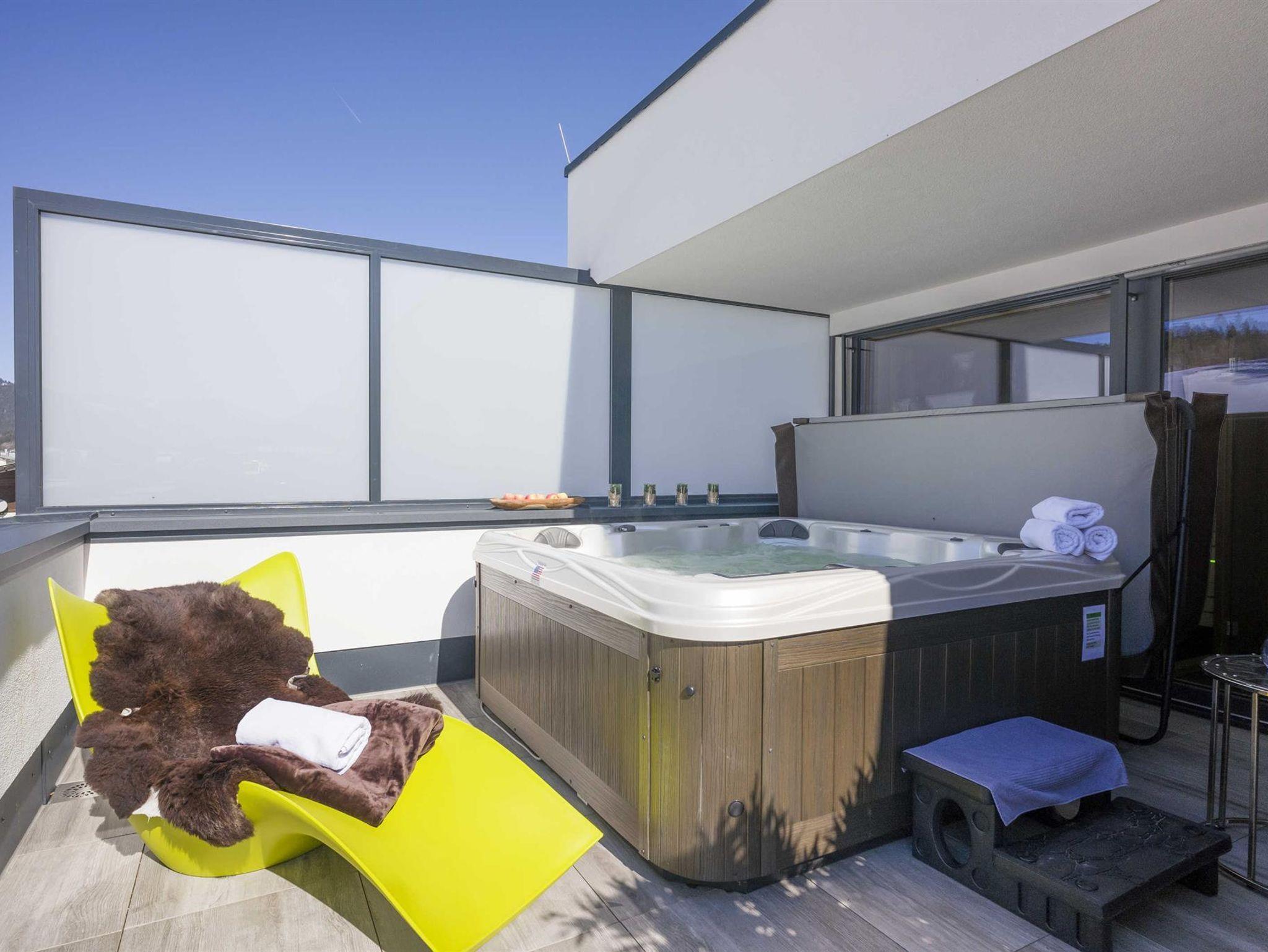 Dieses Loft lässt keine Wünsche offen - 2 Schlafzimmer, 1 Wohnzimmer mit ausziehbarer Couch und Smart-TV, Badezimmer mit Dusche und Badewanne, separates WC, großzügige offene Küche mit Seekarblick-Platzl und Esstisch für 8 Personen, vollständig eingerichtete Küche mit amerikanischem Kühlschrank, SodaStream, Nespresso-Maschine, Wasserkocher, Toaster uvm, private Wellnessoase mit separatem WC, Wellness-Dusche, Infrarot-Zirbenkabine mit Blick in die Berge und Whirlpool auf der Dachterrasse!