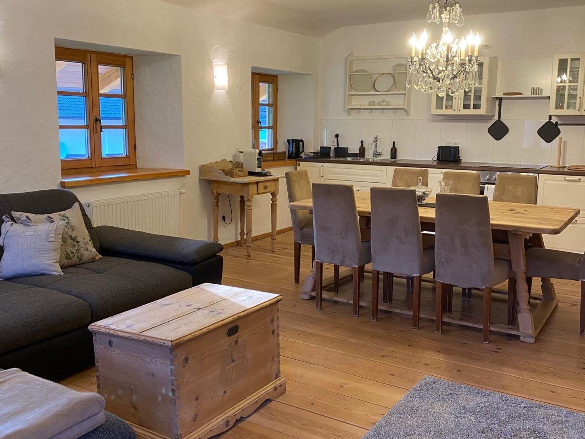 Die Ferienwohnung ist im rustikalen, altbäuerlichen Stil eingerichtet und verfügt über einen herrlichen Ausblick auf die Wiesen und Berge von Achenkirch. In der Wohnung befinden sich ein großes und ein kleines Schlafzimmer, ein Bad, ein weiträumiges Wohnzimmer mit Balkon sowie eine voll ausgestattete Küche mit Essbereich. In der unmittelbaren Umgebung können Sie sich bei verschiedenen Aktivitäten wie zum Beispiel Skifahren, Rodeln oder Snowkiten im Winter bzw. Wandern, Golfen, Segeln oder Surfen im Sommer am Achensee vergnügen. Durch die zentrale Lage des Pulvererhofes ist das nächste Lebenmittelgeschäft, Skilift, der Arzt mit Apotheke, Restaurants und Cafes, Spielplätze, Regiobushaltestelle, Dampferstation sowie der Achensee in wenigen Minuten auch zu Fuß erreichbar. Durch unsere Hühner und Hähne in Weidehaltung kann es vorkommen, dass Sie durch das Krähen unserer Goggl bereits am Morgen liebevoll begrüßt werden.