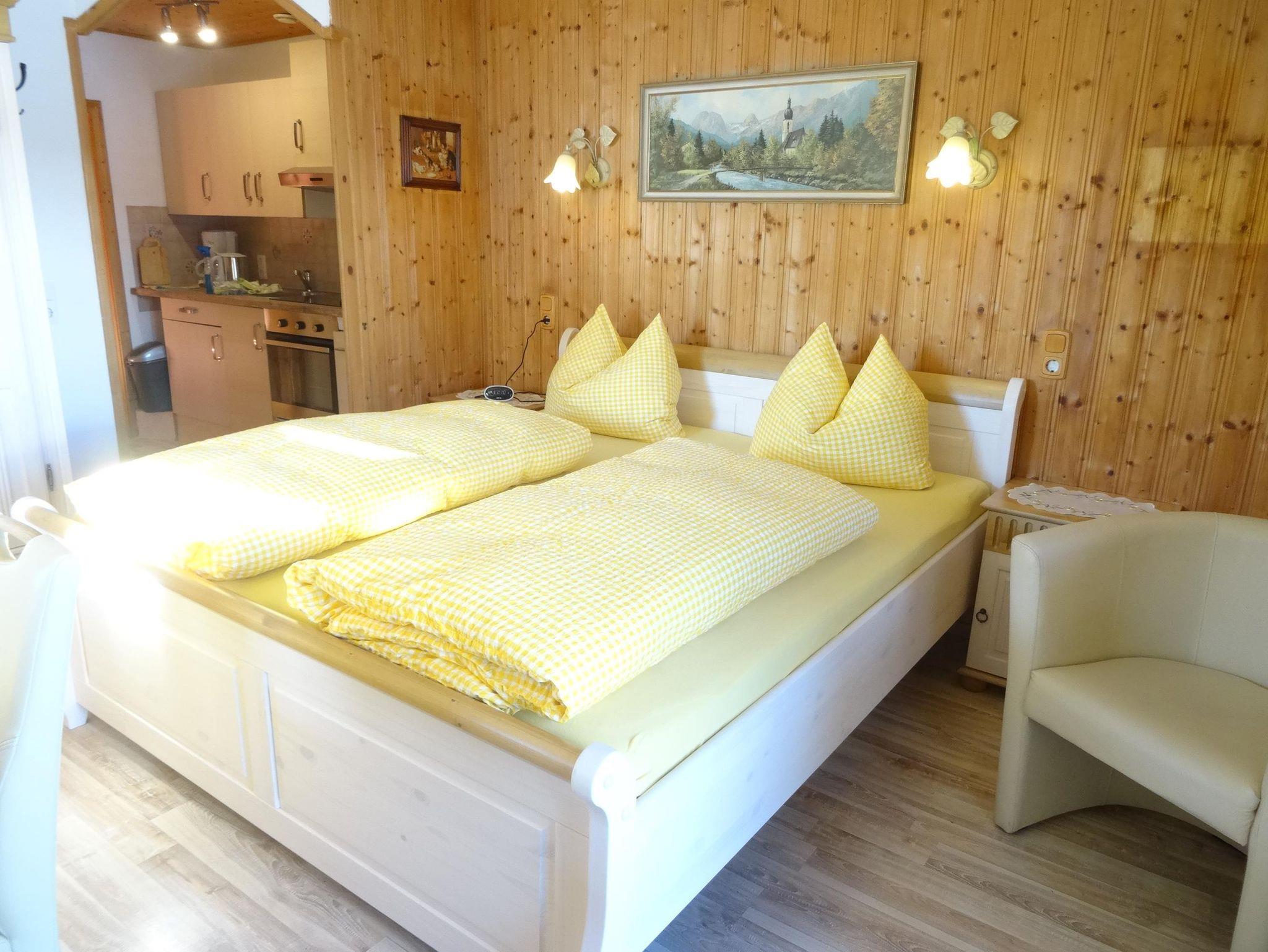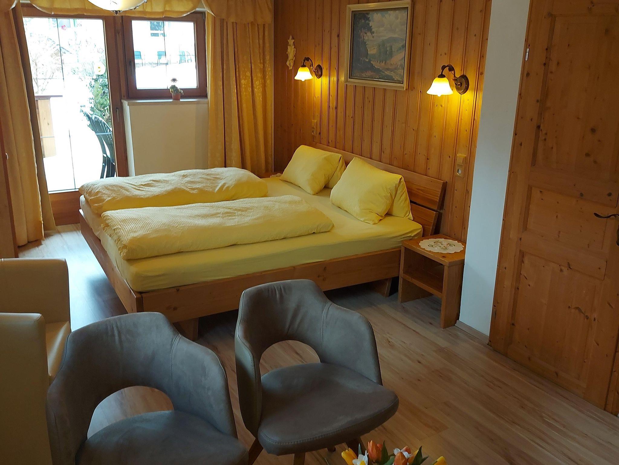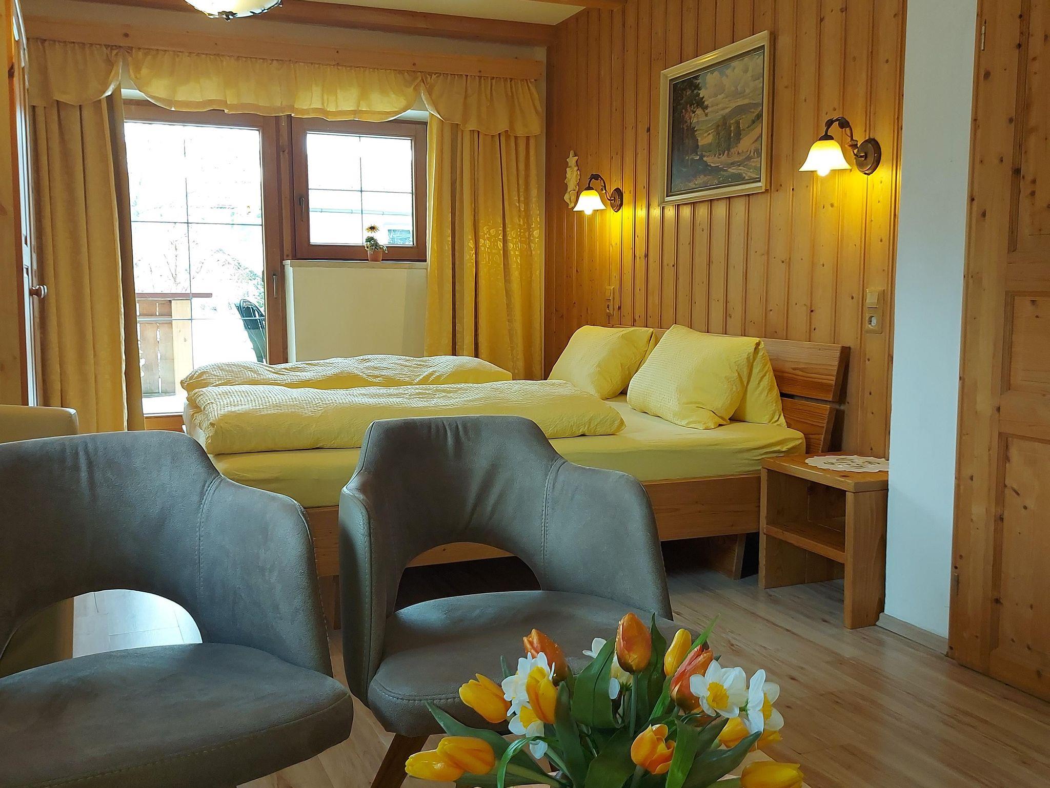 Die Ferienwohnung Bergblick ist ausgestattet mit einem Einzelzimmer mit Doppelcouch, einem Doppelzimmer mit Sitzecke und Sat-TV, einem großen Bad, einer kompletten Küche, einer Terrasse und Südbalkon.