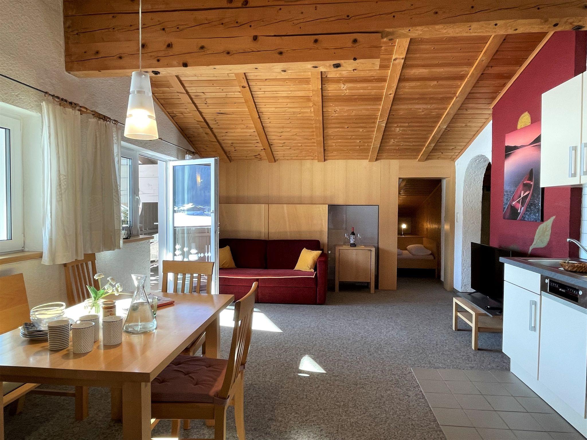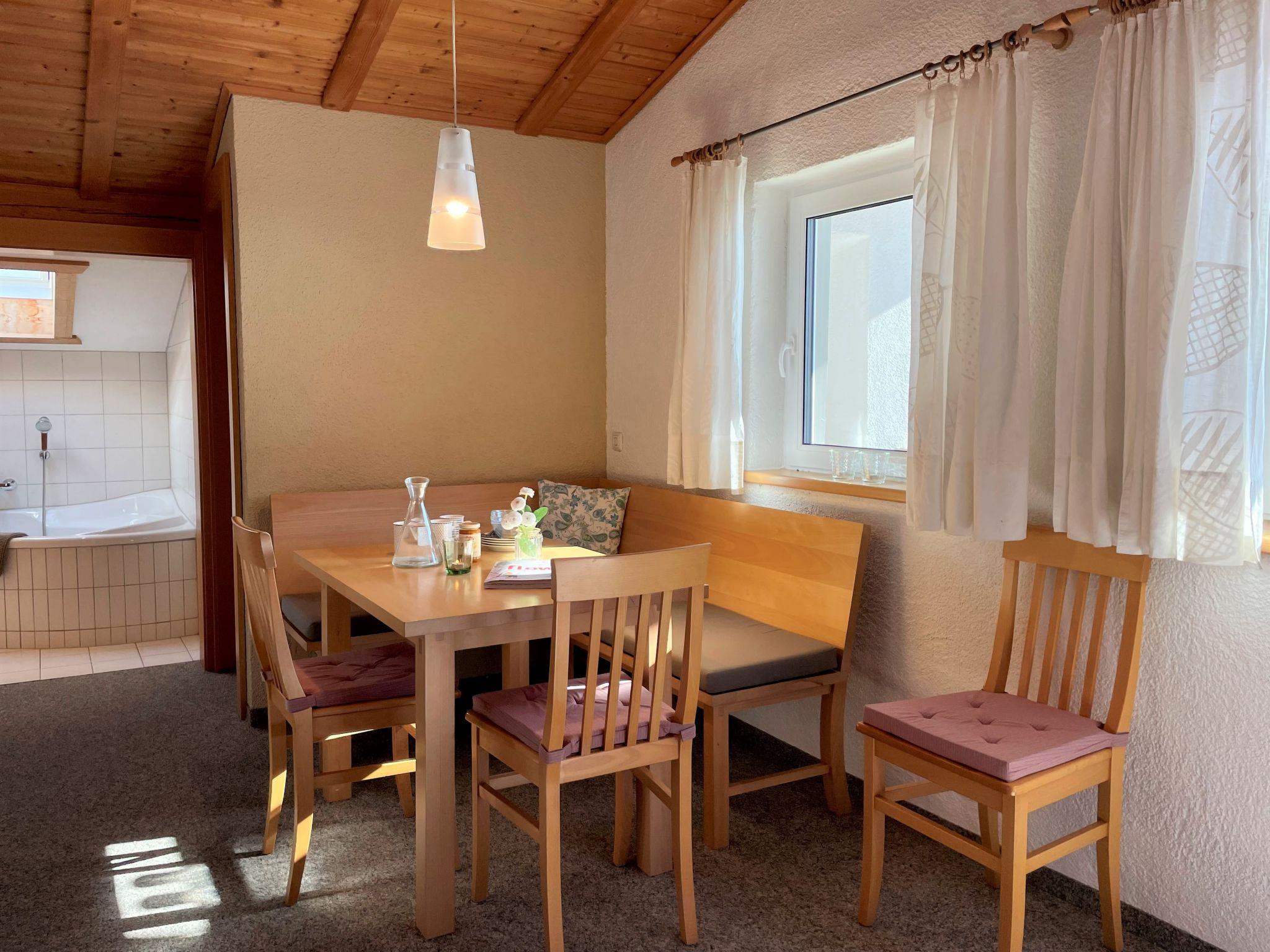 "Rofan", 3-room apartment 57 m2, on the top floor. Object suitable for 3 adults + 2 children. With sloping ceilings, cosy and wooden furniture furnishings: large living/sleeping room with 1 double sofabed, dining nook and satellite TV (flat screen). Exit to the balcony. 1 small room with sloping ceilings, ceiling height 80 - 150 cm with sliding door with 2 beds. 1 double bedroom. Open kitchen (oven, dishwasher, 4 ceramic glass hob hotplates, electric coffee machine). Bath/WC with corner bath. Oil heating. Balcony. Balcony furniture, box-room. Very beautiful view of the mountains. Facilities: Internet (WiFi, free). Parking (roofed, 1 car). Please note: non-smokers only. Bed layout is flexible. There are more sleeping options available than the maximum number of people allowed which may, however, not be exceeded.