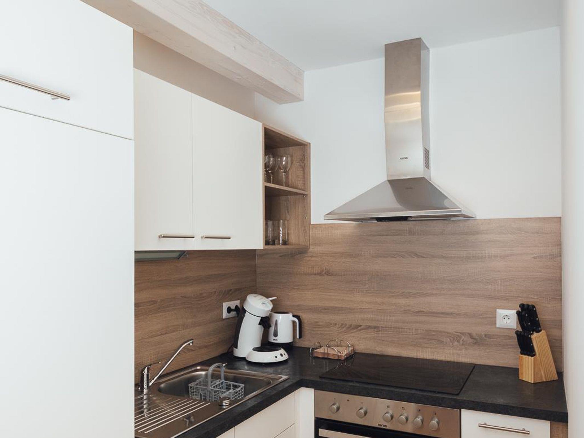 Modern eingerichtetes Appartement für 4 bis 6 Personen, Wohnzimmer mit Schlafcouch, 2 Schlafzimmer, Badezimmer und Küchenblock
