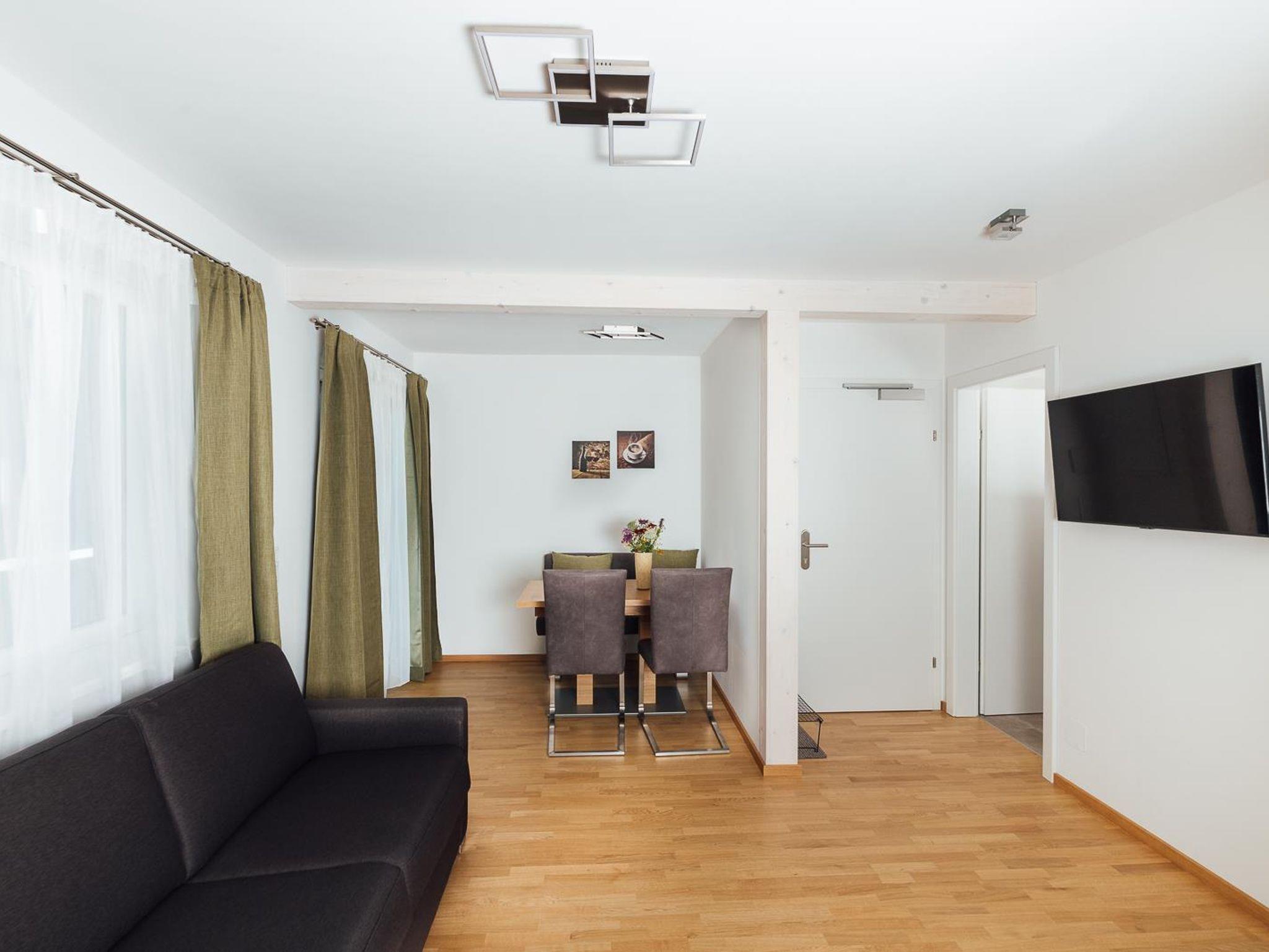 Modern eingerichtetes Appartement für 2 bis 4 Personen, Wohnzimmer mit Schlafcouch, Schlafzimmer, Badezimmer und Küchenzeile