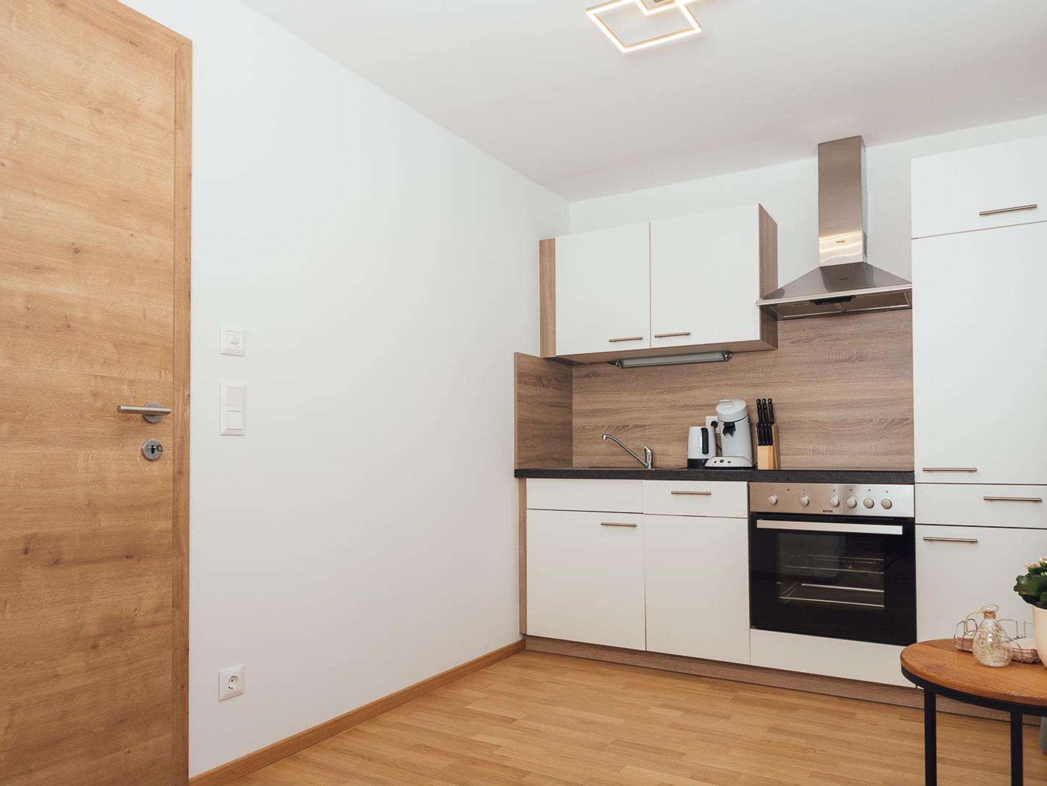 Modern eingerichtetes Appartement für 2 Personen, Wohn-/Schlafzimmer, Badezimmer und Küchenzeile