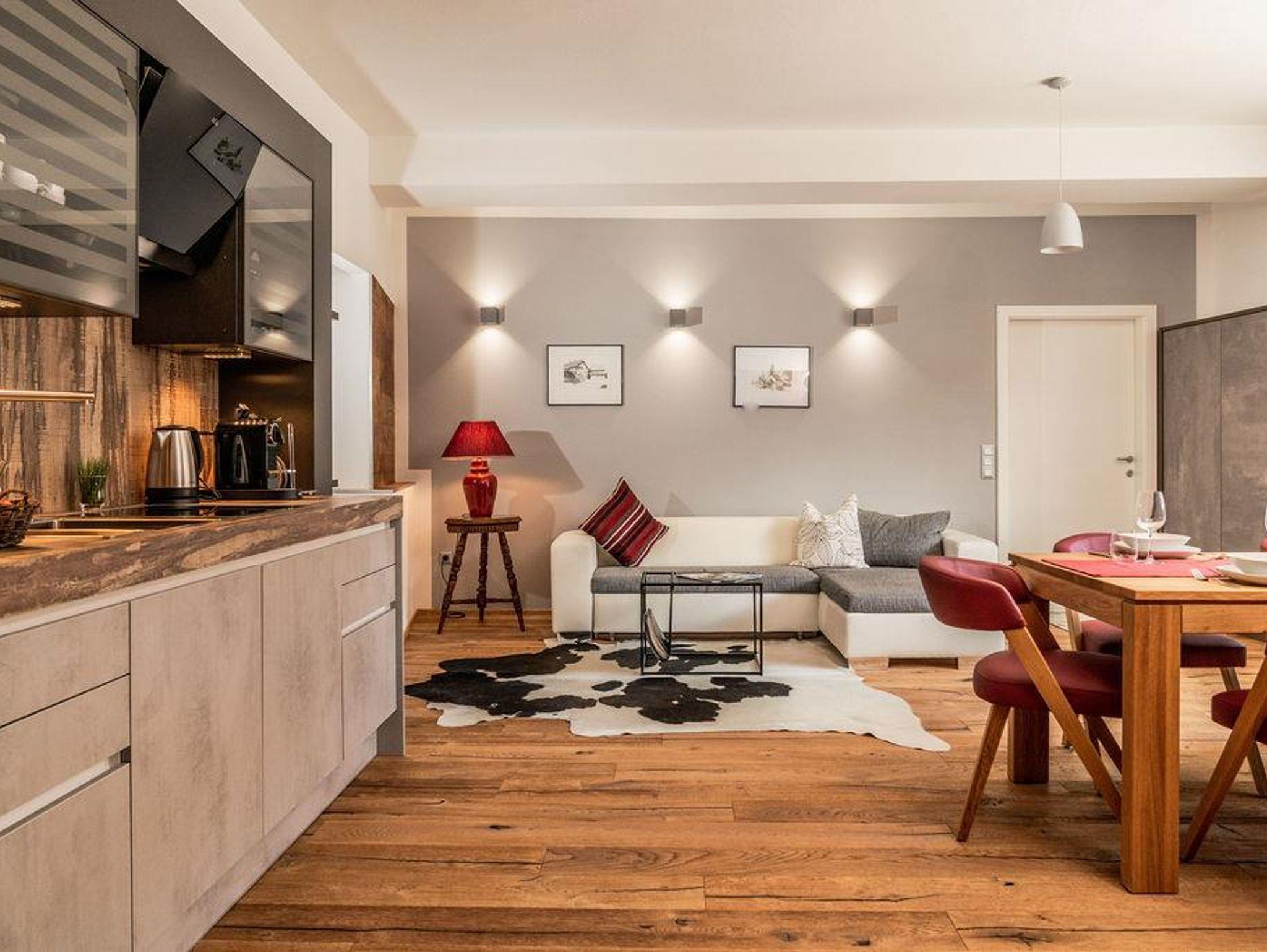 Unser Nichtraucher-Apartment Greisslerei bietet auf 84 m² Platz für 2 bis 6 Personen. Neben den beiden Schlafzimmern für je 2 Personen befindet sich im Wohnbereich eine ausziehbare Couch (ebenfalls für 2 Personen) sowie 2 WCs. Die vollausgestattete Küche (zB Kaffeemaschine, Kühlschrank, Geschirrspüler, Toaster, Mikrowelle, Stab- und Handmixer, Wasserkocher, Brotschneidemaschine, Plattengriller und vieles mehr) lässt keine Wünsche offen. Im Badezimmer finden Sie neben der Grundausstattung auch einen Haarföhn und eine Waschmaschine. Infrarotsauna, gratis W-Lan, 3 große Flat-TV - Urlaubskomfort mit allen Bequemlichkeiten, die Sie auch von zu Hause gewohnt sind.