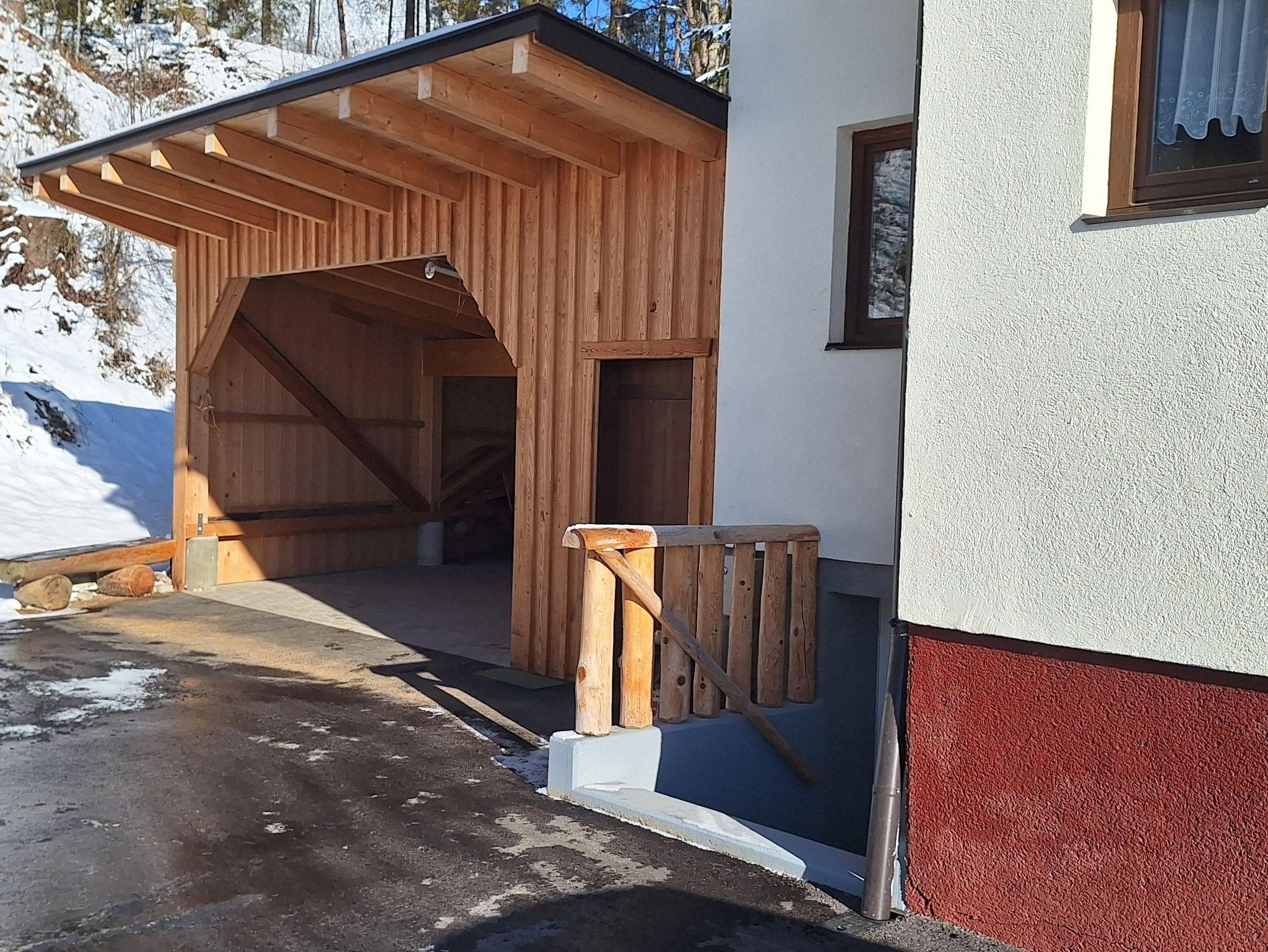 Ein Carport bietet eine komfortable Parkmöglichkeit und schützt das Auto vor den Einflüssen der Witterung. Das Chalet Lärchforst ist somit der ideale Ort für einen unvergesslichen Urlaub in der Region Schladming-Dachstein.