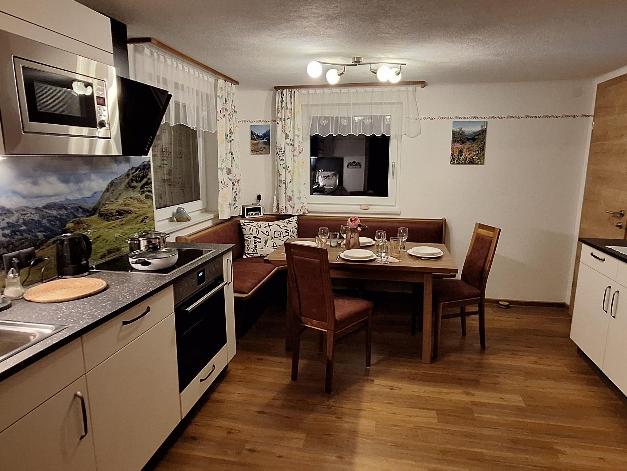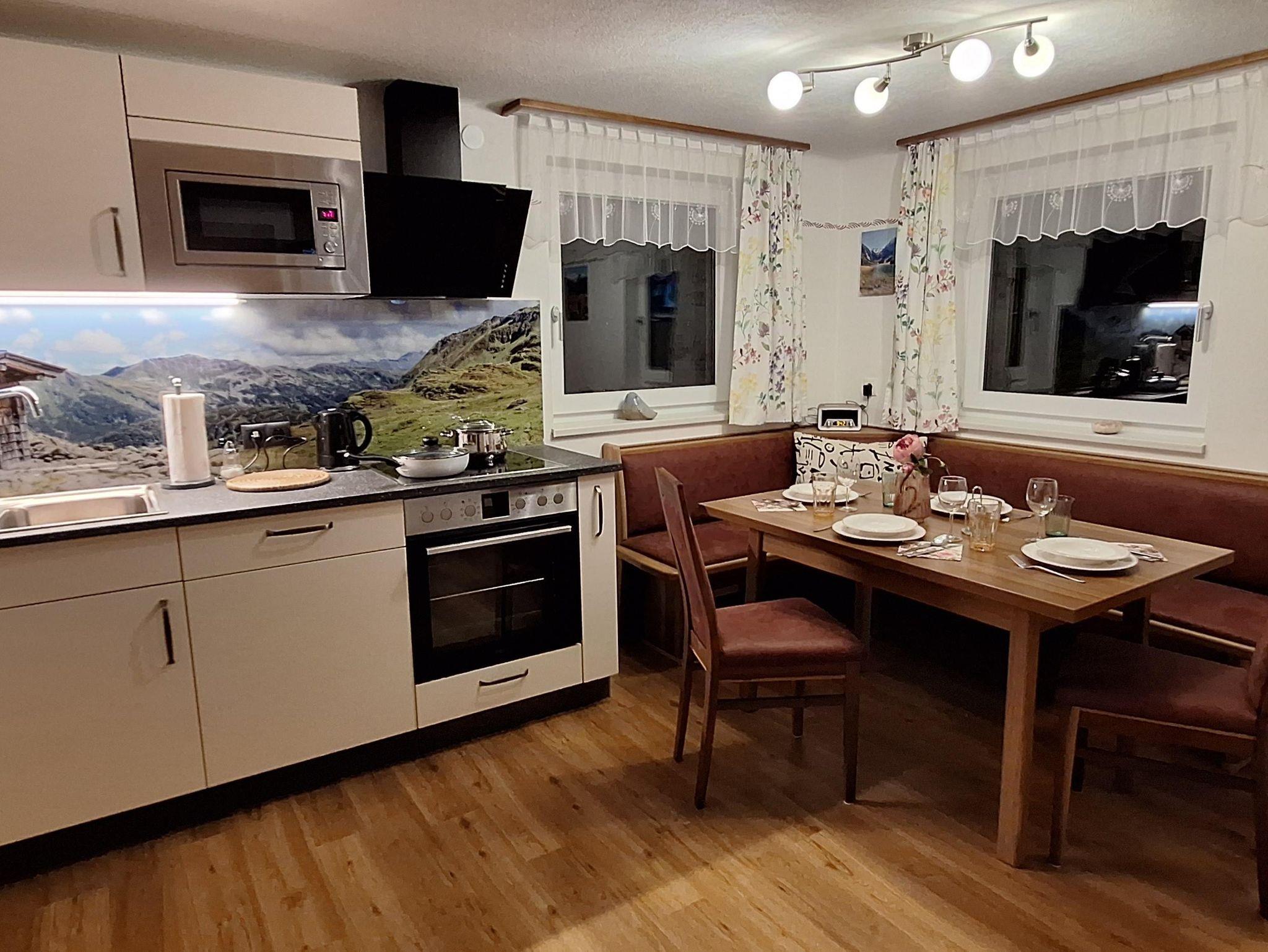 Die voll ausgestattete Küche und das gemütliche Wohnzimmer bieten alle Annehmlichkeiten für einen entspannten Aufenthalt. Nach einem Tag auf der Piste oder beim Wandern können Sie sich in der Außensauna entspannen oder den Ausblick von der Gartenhütte genießen.