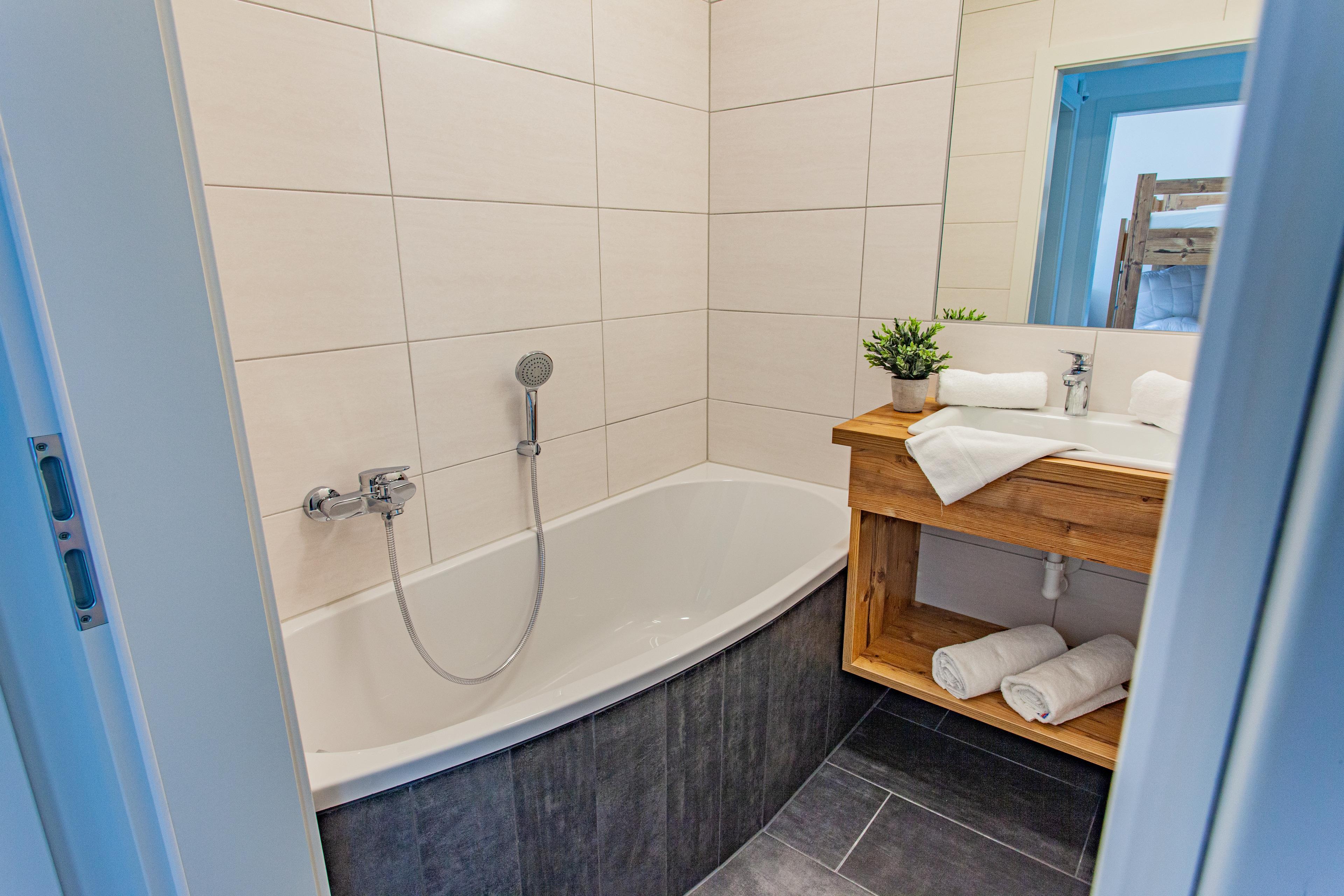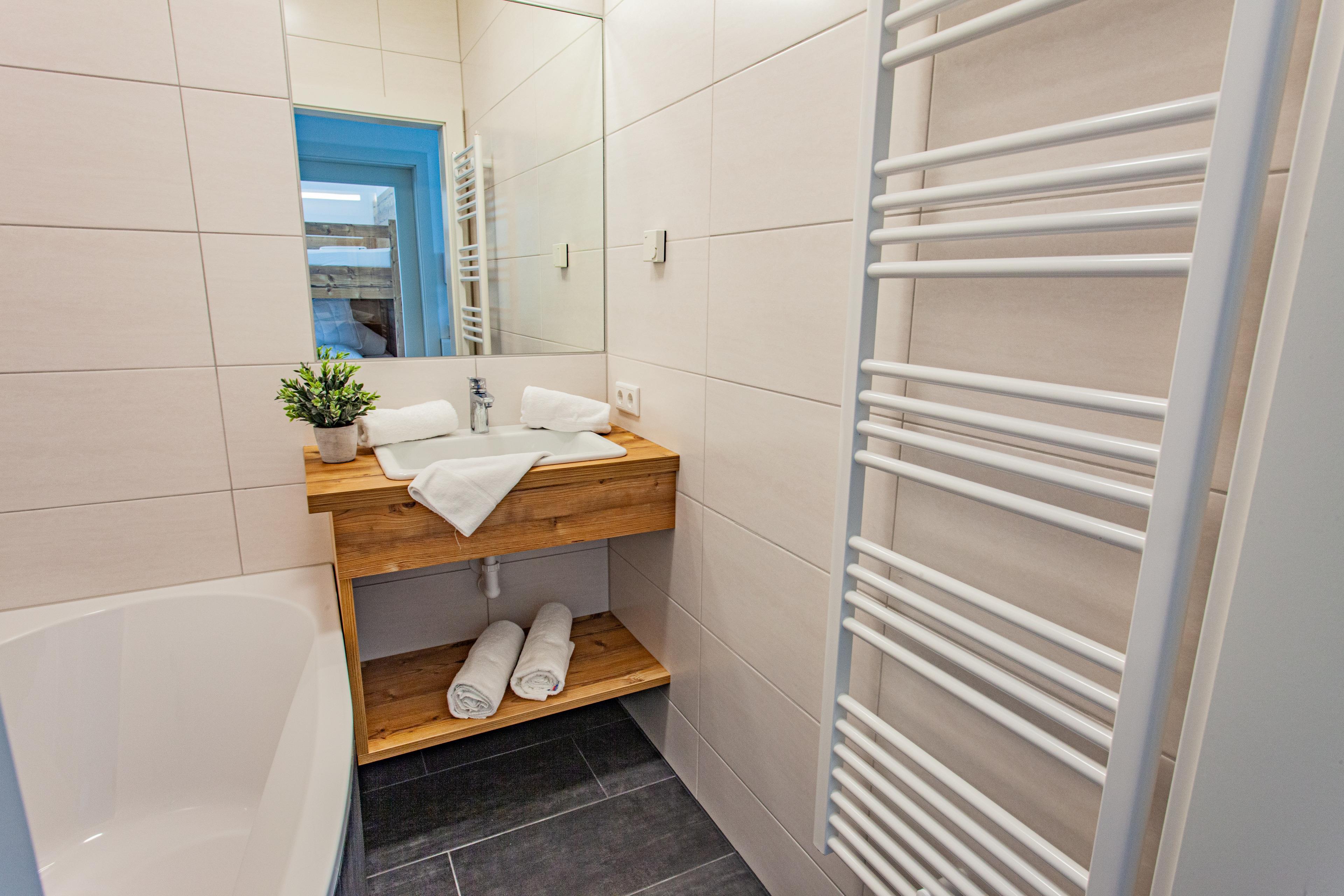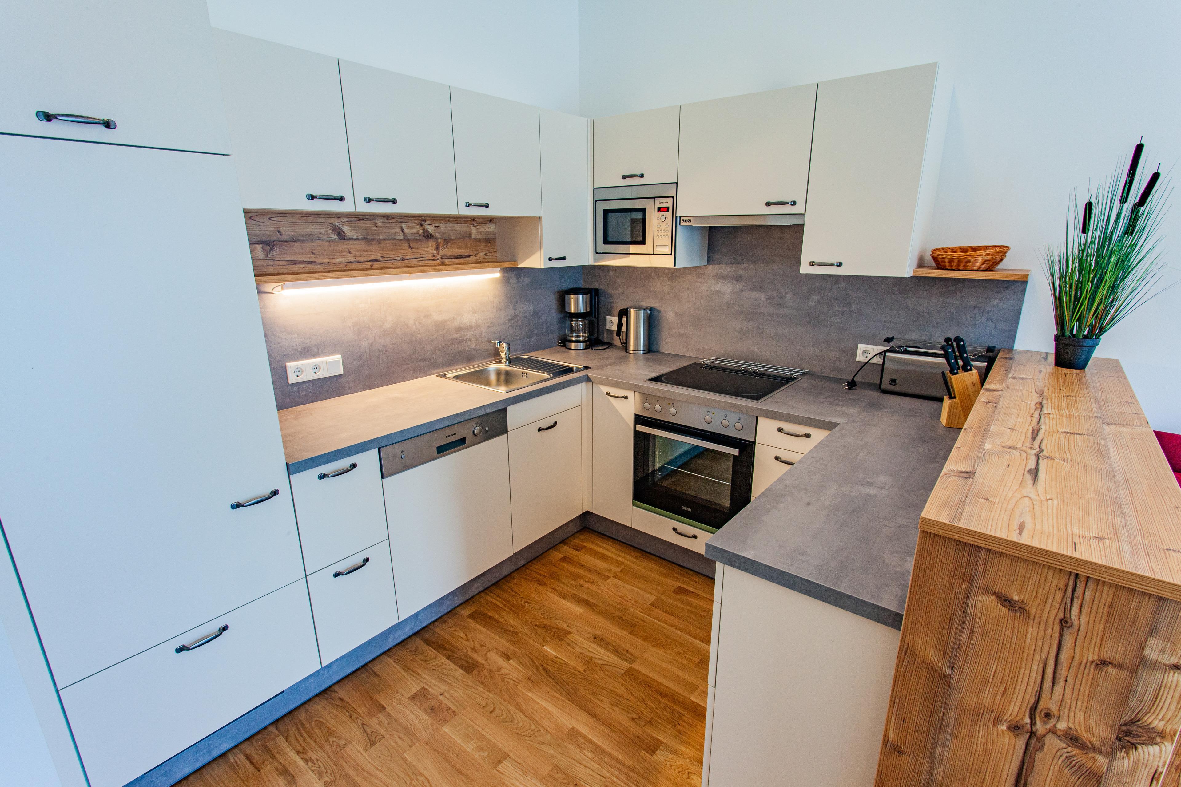 Die gemütliche, modern eingerichtete Wohnung für bis zu 10 Personen liegt im Obergeschoss eines neu errichteten Gebäudes und besteht aus drei Schlafzimmern, zwei Wohnküchen (Herd mit Backofen, Geschirrspüler, Toaster, Wasserkocher), zwei Bädern, zwei WCs und einer großzügigen Terrasse.