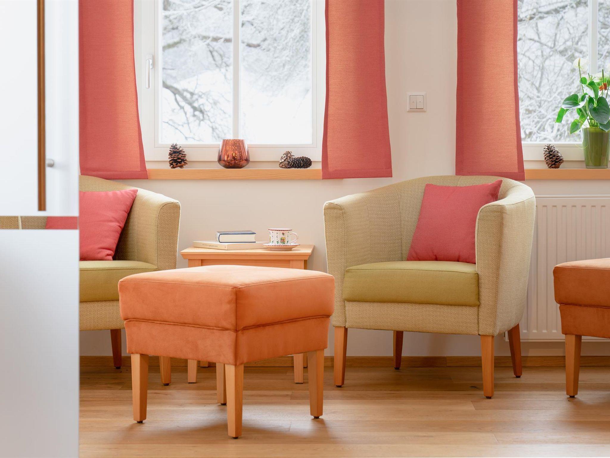 Nach einem ereignisreichen Urlaubstag können Sie in unserem hauseigenen Wellnessbereich, ausgestattet mit finnischer Sauna, Kräutersauna mit Kräutern vom Hausgarten, Infrarot-Klimarium und Farbtherapie in aller Ruhe ausspannen. Wer den Kreislauf anregen oder sich besonders abhärten möchte, kann nach einem ergiebigen Saunagang mit bloßen Füßen eine Runde im Schnee drehen. Der Ruhebereich bietet Ihnen eine angenehme Atmosphäre - hier finden Sie Entspannung pur.