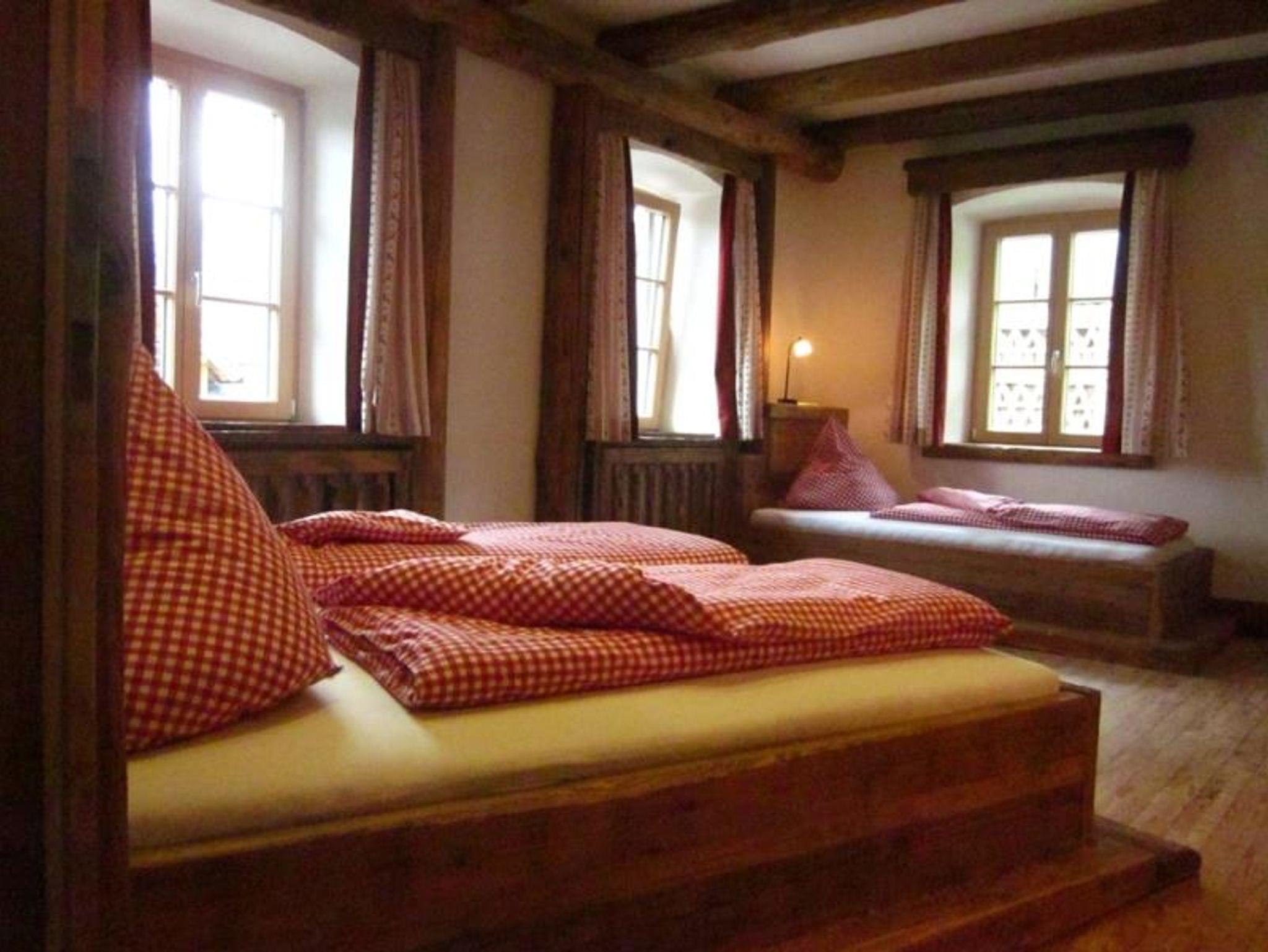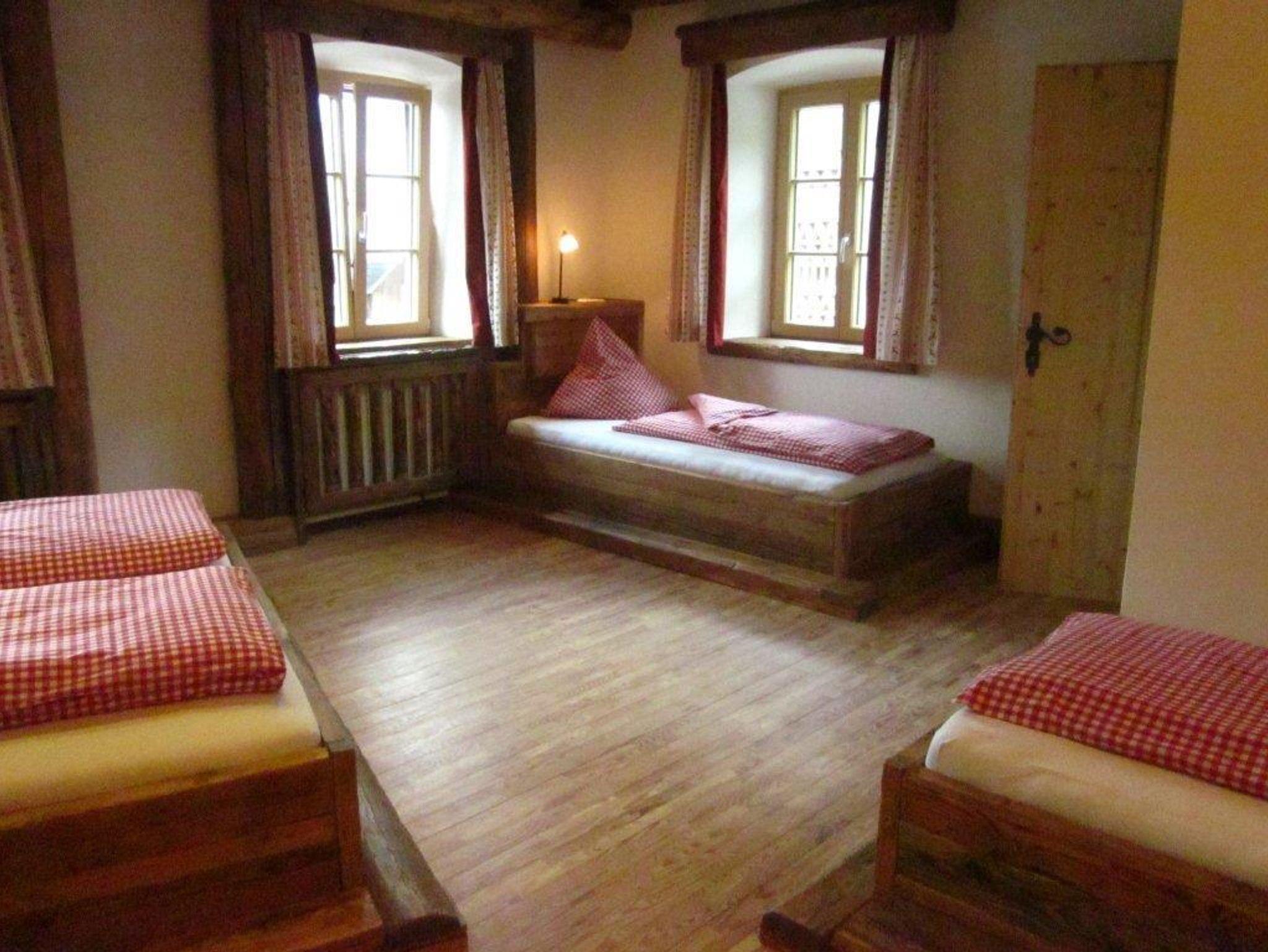 Unser geräumiges Familienzimmer bietet einen wunderbaren Blick auf das Hofgeschehen.