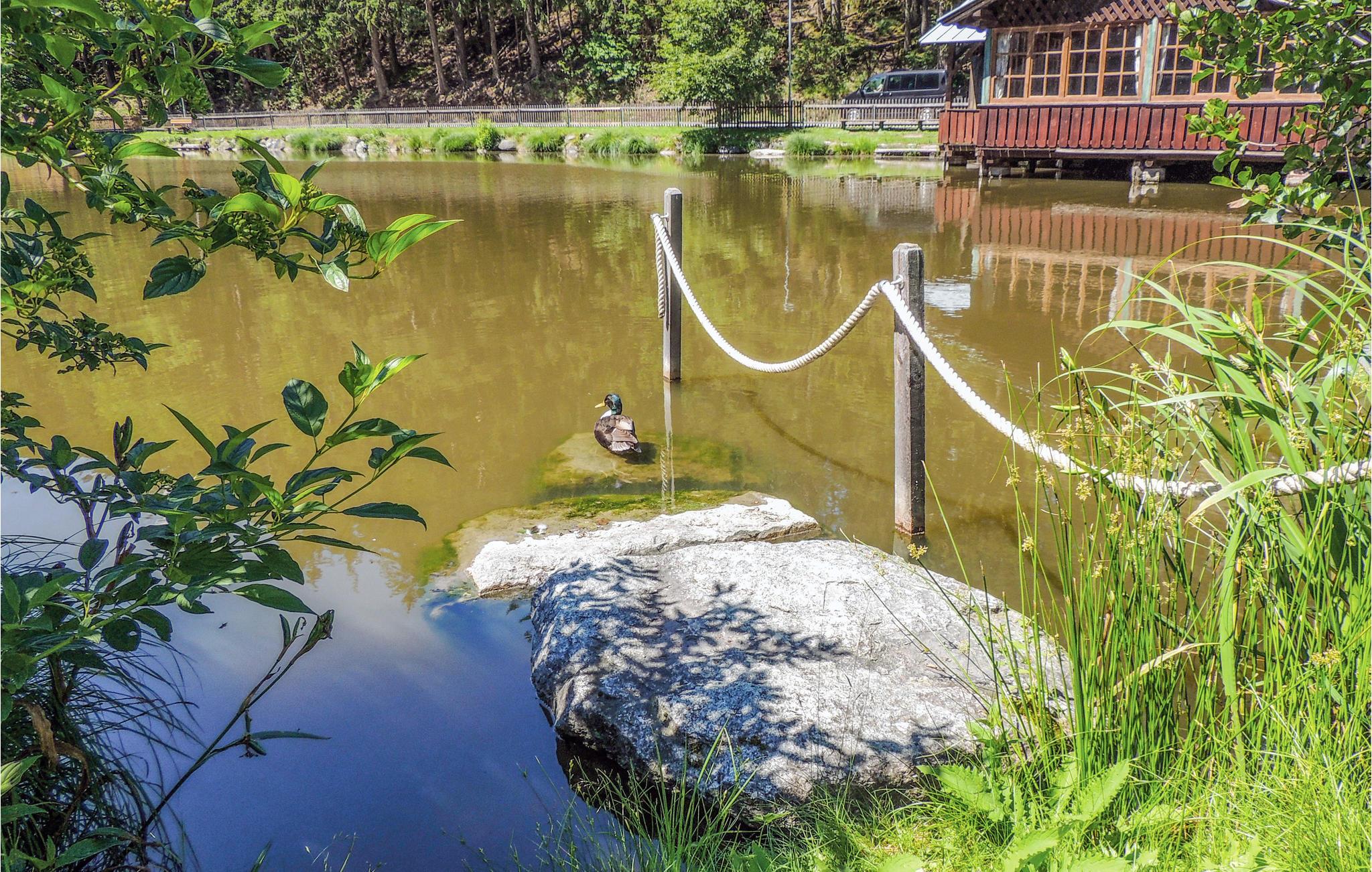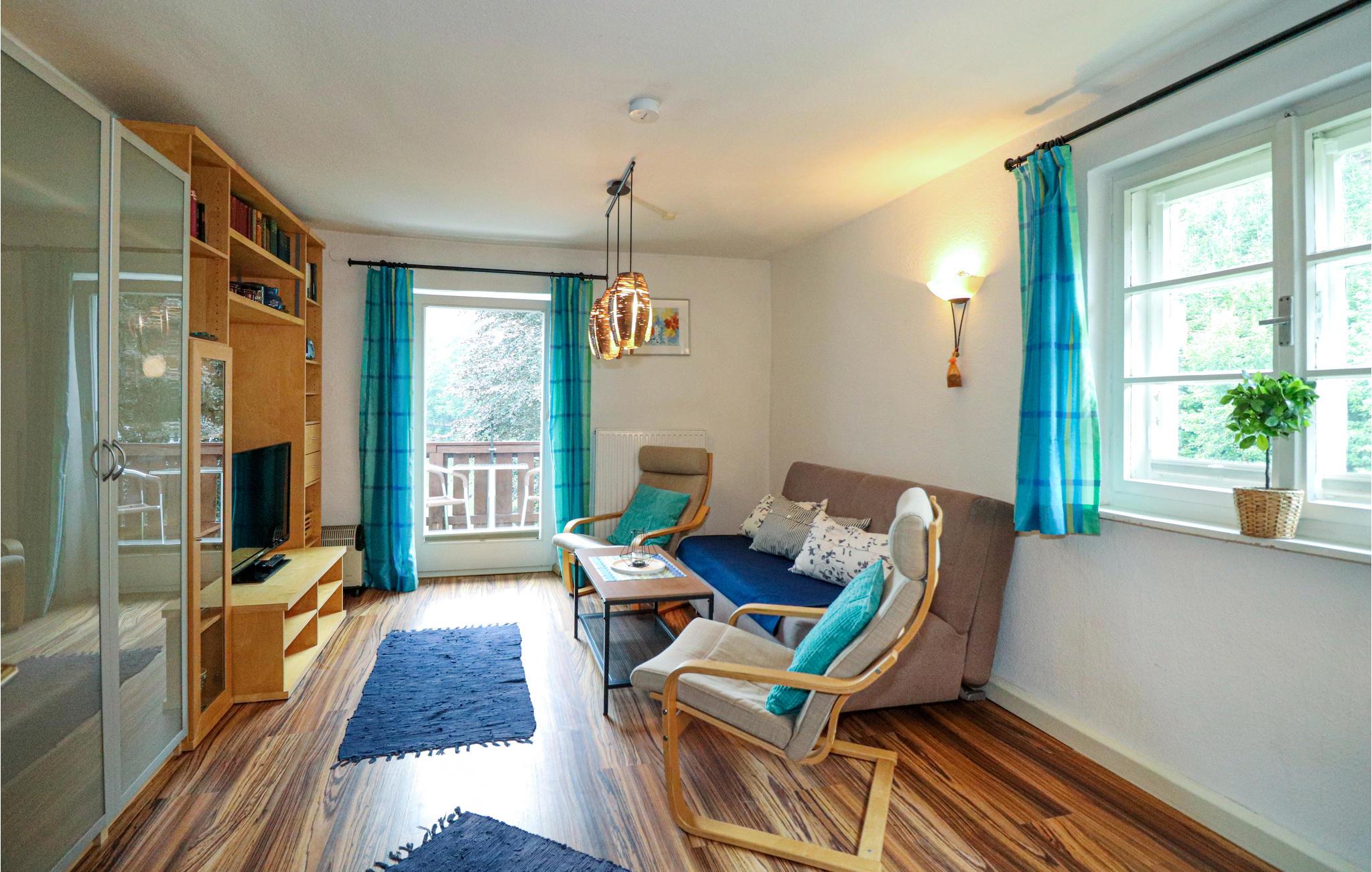 Lejligheden med en have og liggestole og en muret grill bag huset har en idyllisk beliggenhed i en skov. Glæd jer til at nyde morgenkaffen på altanen mens I planlægger dagens aktiviteter og lader jer fortrylle af det smukke landskab.