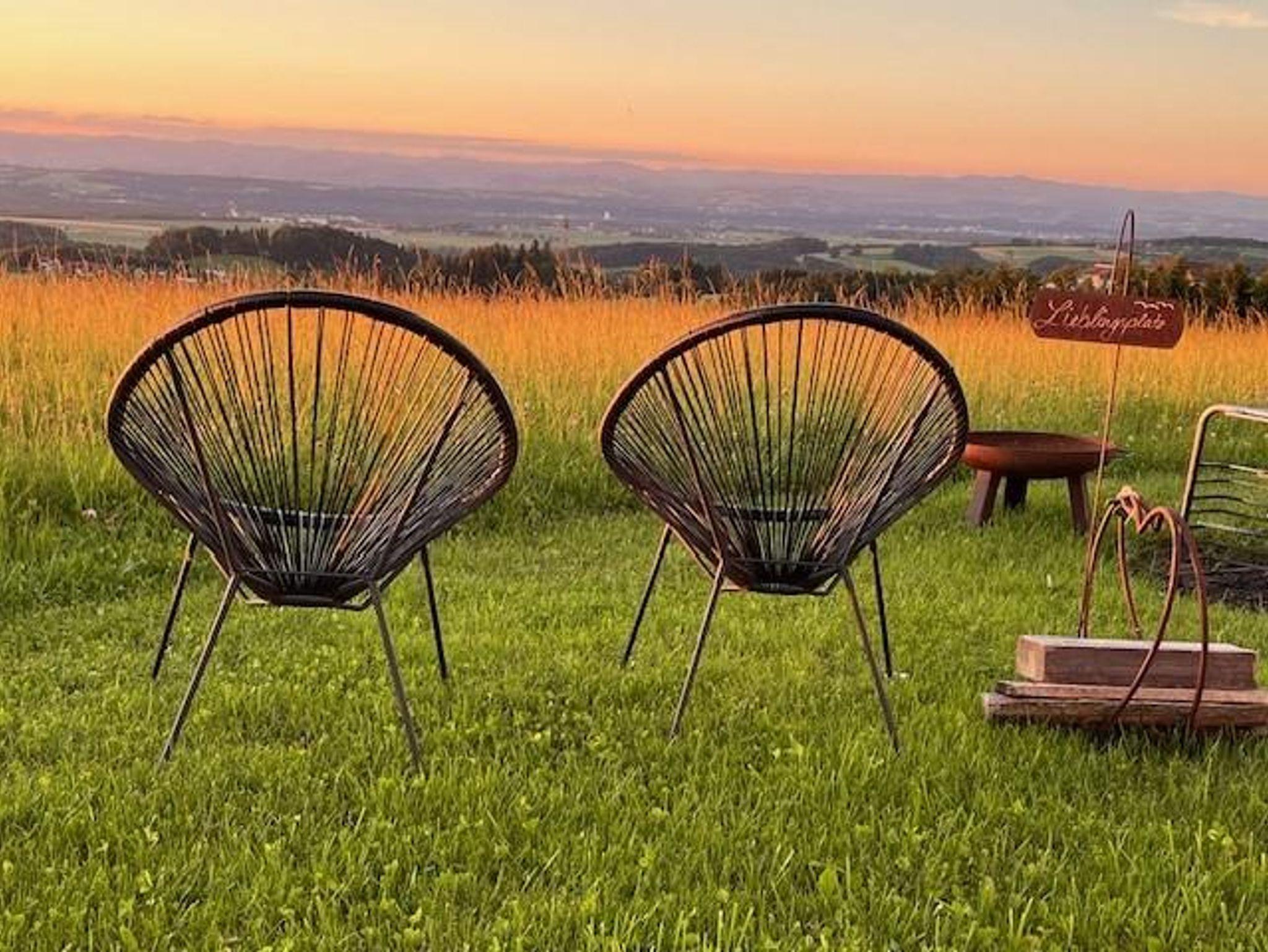 Am Haus laden Panoramapool und Grillplatz zum Entspannen ein. Ein Highlight für Abenteuerlustige ist die Himmelschaukel, die sich hoch über die Wiesen der Moststraße schwingt und einen unvergleichlichen Ausblick ermöglicht.