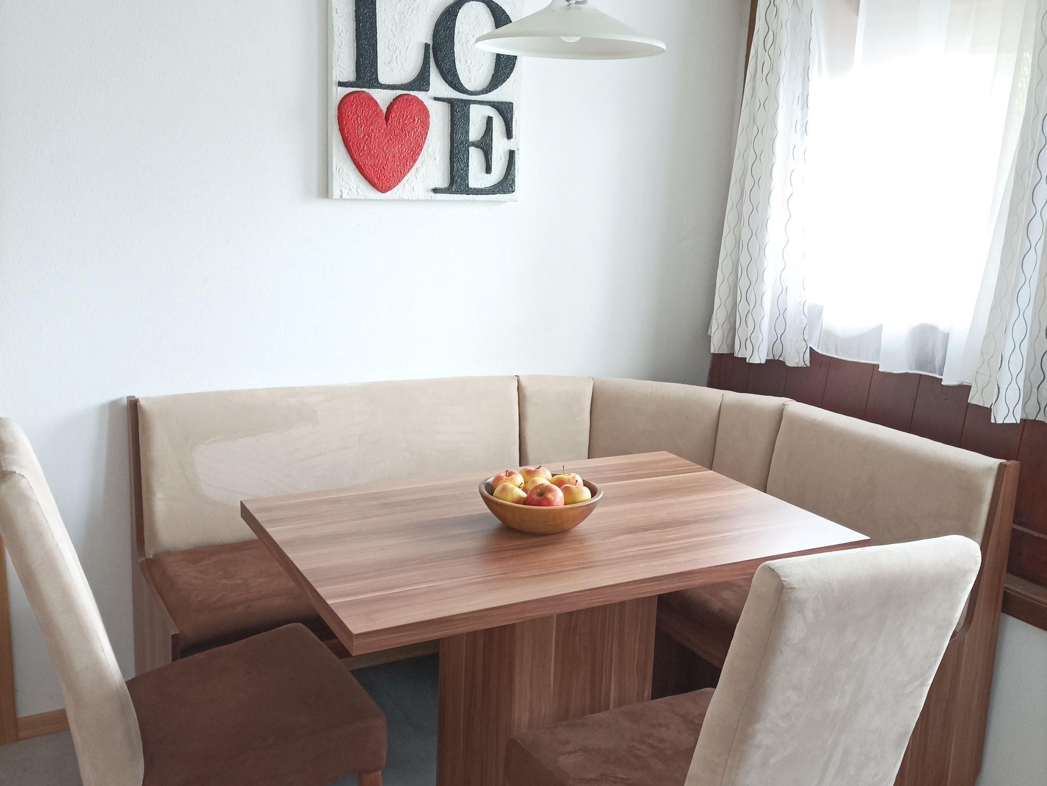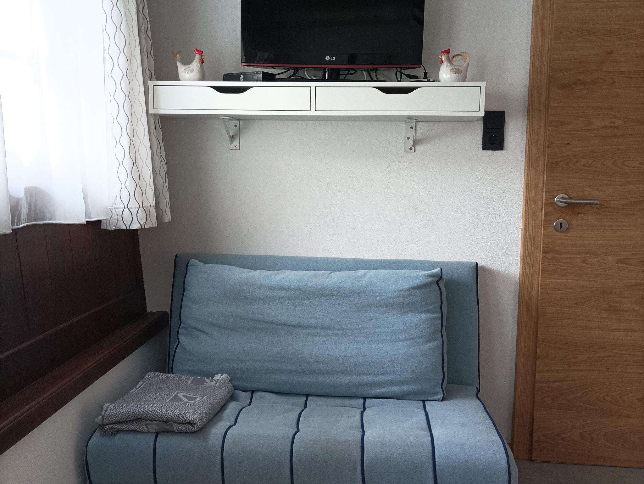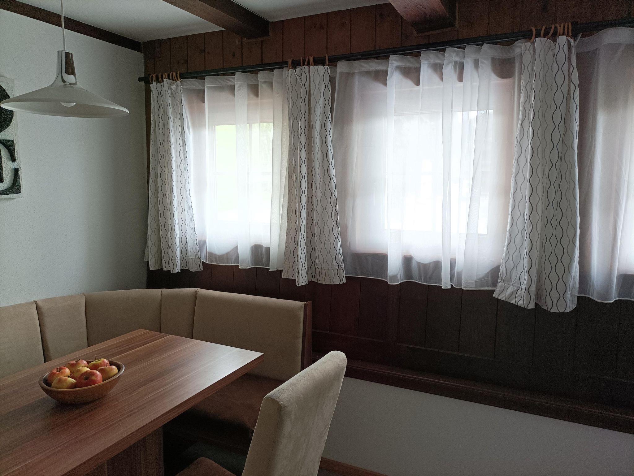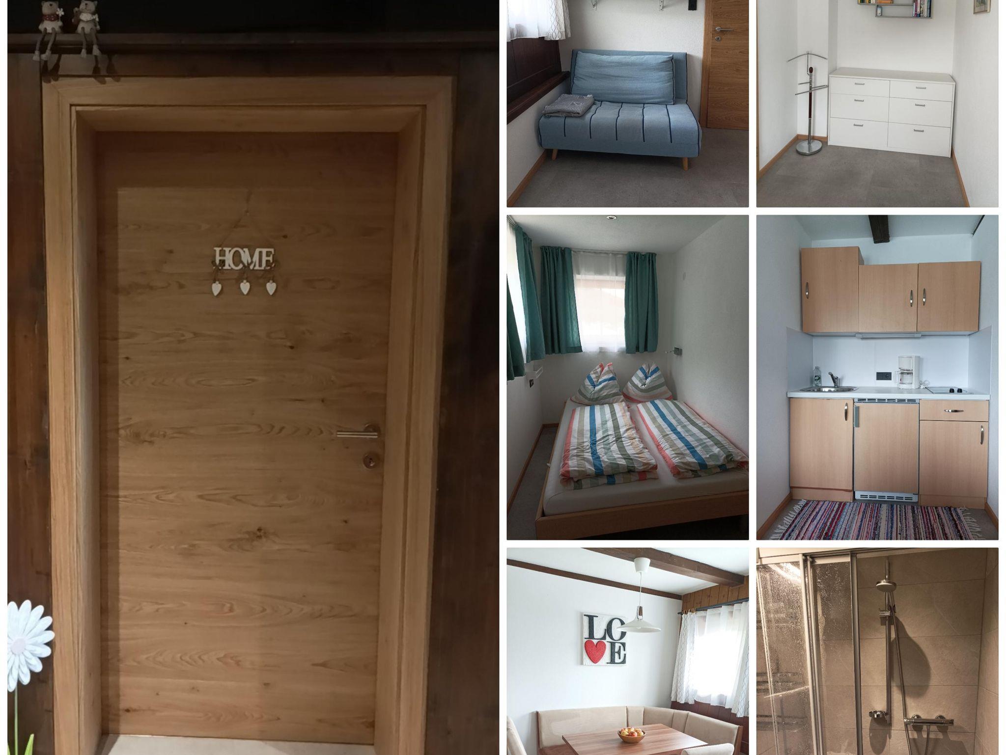 Unsere Ferienwohnung befindet sich in unserem Wohnhaus. Direkt nach der Haustür liegt der Eingang zur Wohnungstür. In der Ferienwohnung befindet sich ein kleines Bad (komplett neuwertig, Fertigstellung 2023) mit einer bodentiefen Dusche, einem Waschbecken mit Spiegelschrank und einem WC. Das Appartment wird komplett mit Bodenheizung geheizt. Im Wohnessbereich befindet sich die Schlafcouch (120x200cm) eine gemütliche Essecke und ein TV Gerät. Eine kleine Küchenzeile ergänzt die Wohung mit Waschbecken, ausreichend Aufbewahrungsmöglichkeiten, einem Kühlschrank und zwei Ceranfeldern. Ein separates Schlafzimmer ist angrenzend zum Wohnbereich. Hier befindet sich das Bett (140x200 cm) und eine Kommode als weiterer Stauraum. Die komplette Wohnung ist frisch renoviert und gilt als neuwertig, sie ist freundlich und hell gestaltet und lädt am Abend zur Erholung nach einer spannenden Tag ein. Es besteht auch die Möglichkeit im Sommer vor dem Haus zu jausnen (Bank dem Haus entlang plus Tisch).