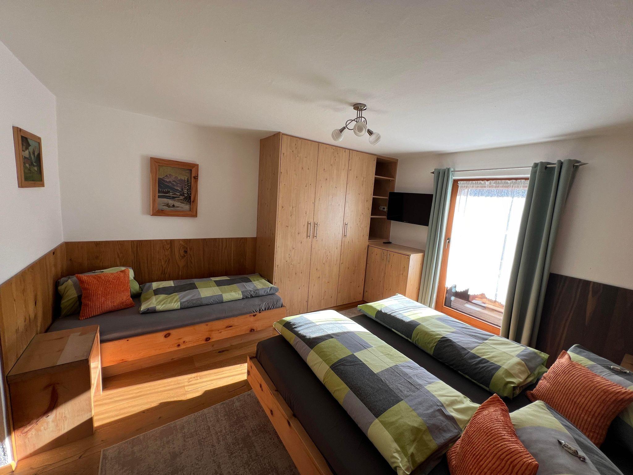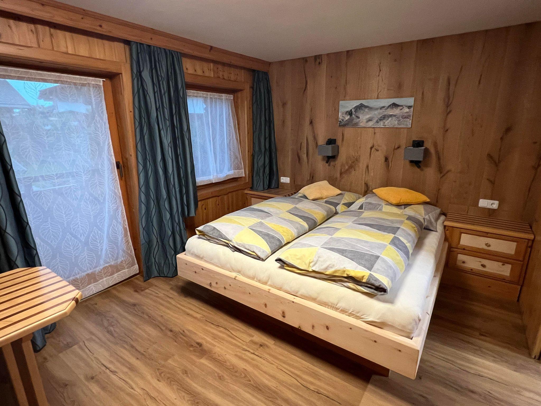 Die zwei Schlafzimmer in der Ferienwohnung, sind mit Naturholzböden und Betten und Möbel aus Zirbenholz ausgestattet.