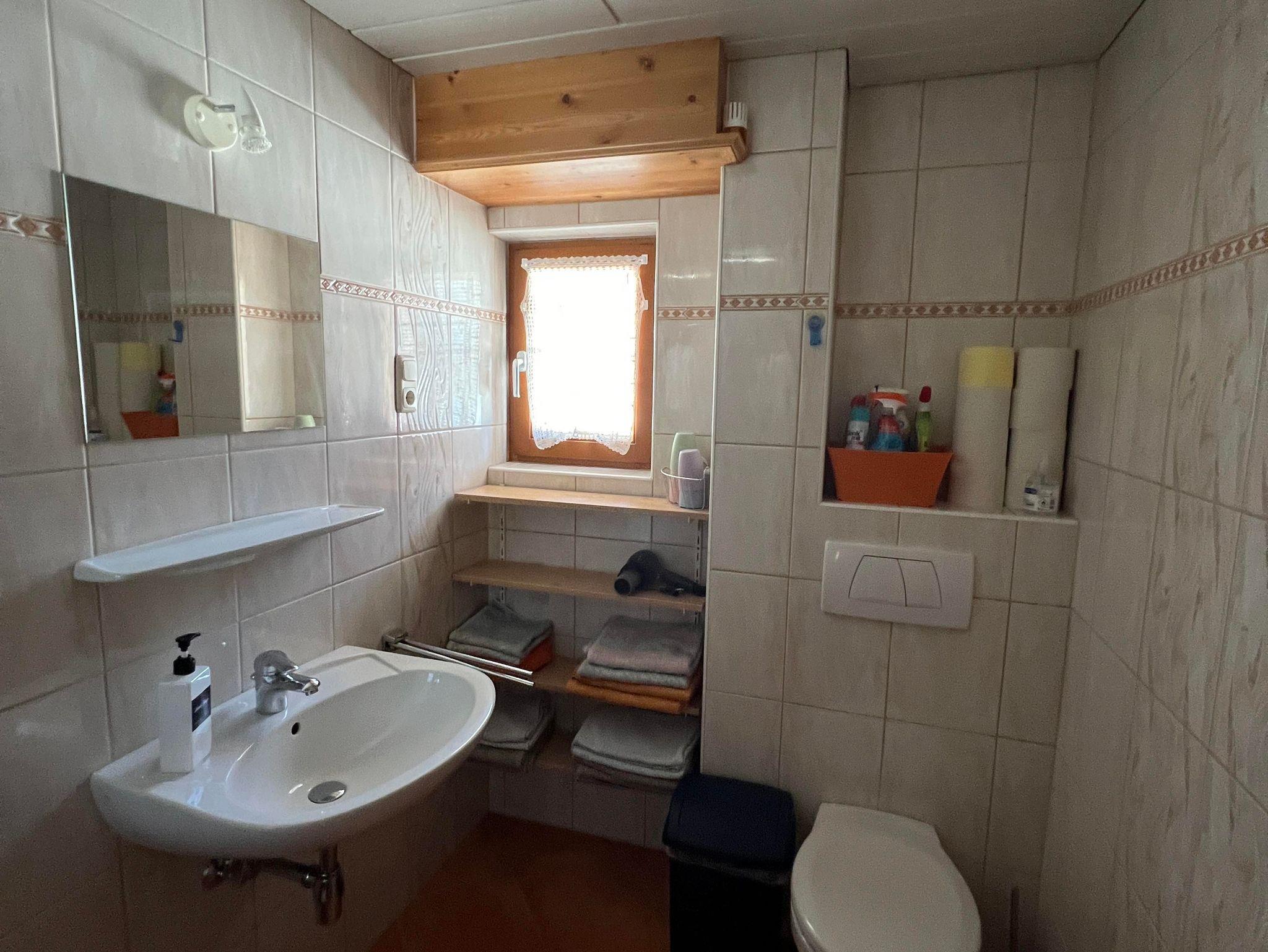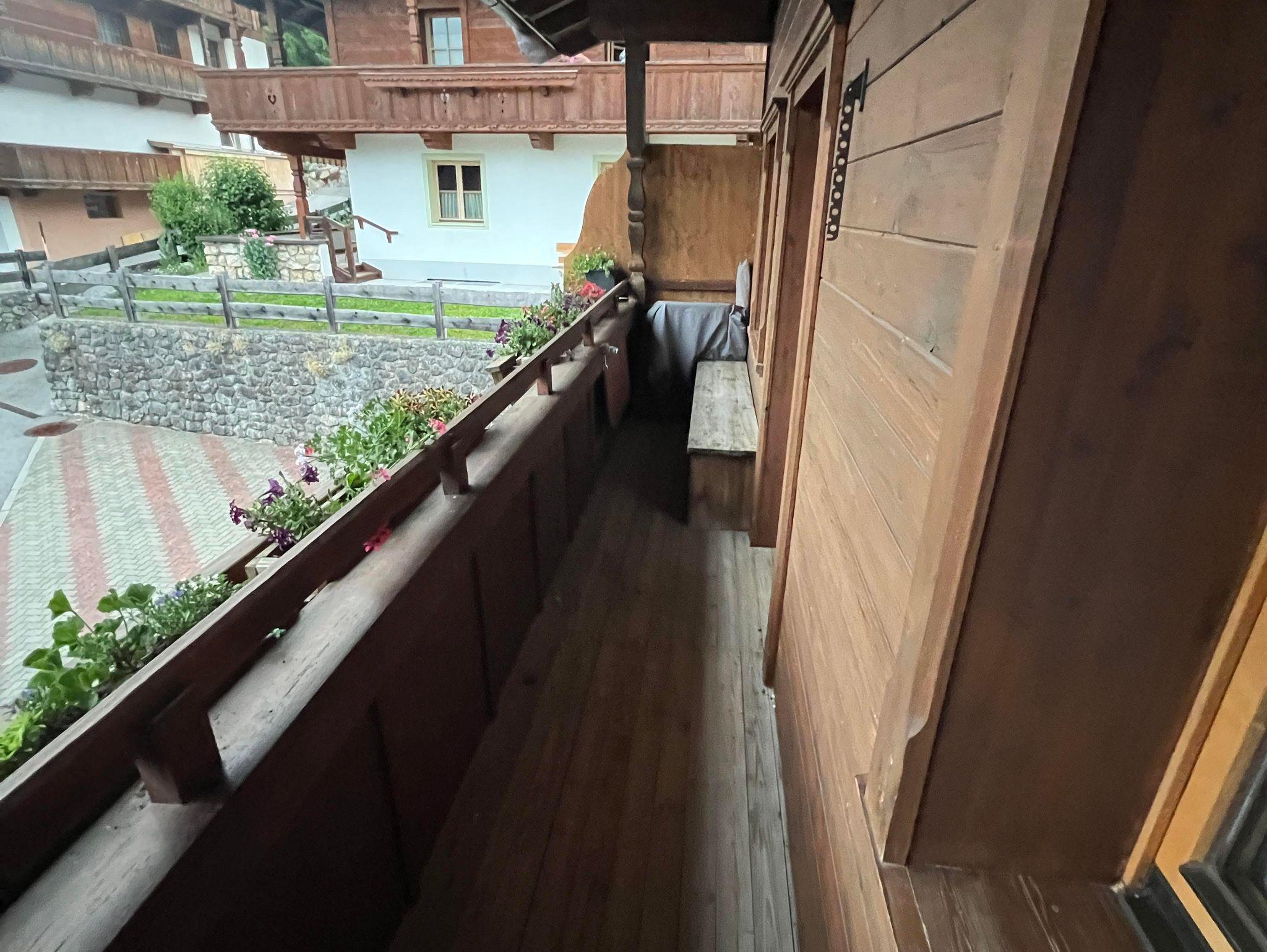 Zum Appartement gehört ein Balkon, der die ganze Südseite des Hauses umfasst. Auf dem Balkon finden Sie eine Sitzgelegenheit mit zwei kleinen ausklappbaren Tischen, um entspannt die Sonne und den wunderschönen Ausblick auf die Berge zu genießen.