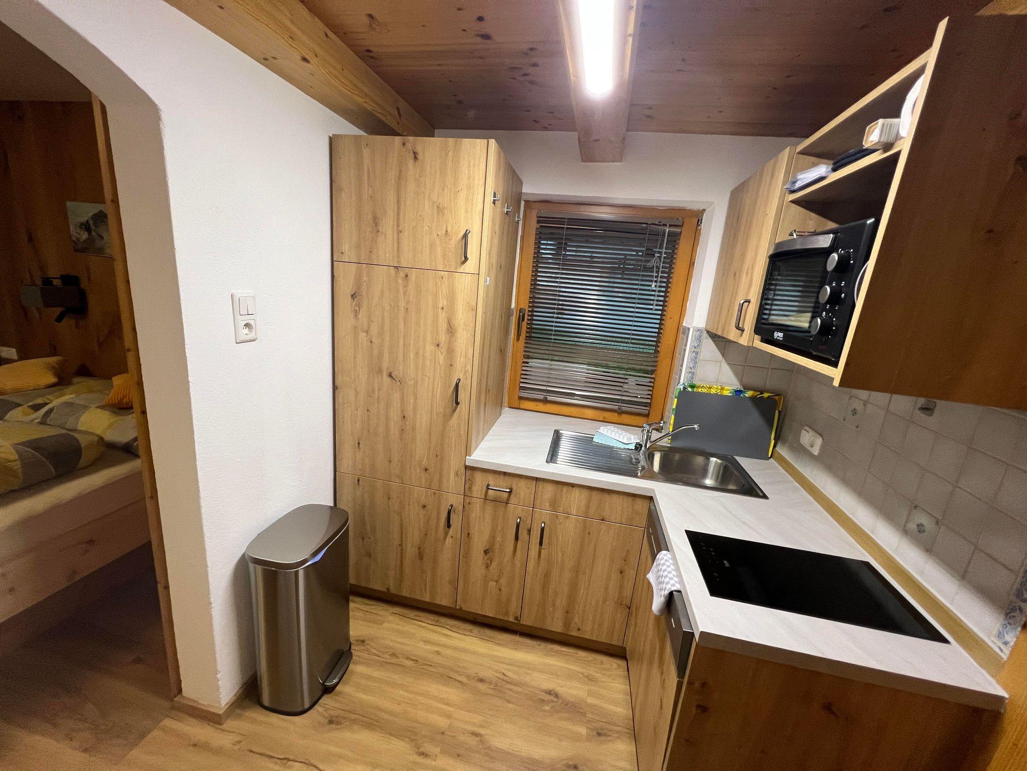 Das Studio Gratelspitz für 1 - 3 Personen (30m2). Hat einen Schlaf-Wohnraum mit Doppelbett aus Zirbenholz und gemütlicher Naturholz- Einrichtung. Die Küchenecke ist mit 2 Ceranfeldkochplatten, ein kleines Backrohr, Geschirrspülmaschine, Kühlschrank mit Gefrierfach, Geschirr, Filtercafemaschine und Eduscho Kapselmaschine, Toaster, Wasserkocher ausgestattet.Das Bad ist mit Badewanne und WC. Und ein kleines Zusatzzimmer mit Couch und seperaten Fernseher gibt es auch. Und vor dem Studio ist ein Balkon mit Klapptisch und Sitzmöbeln und Sonnenschirm.