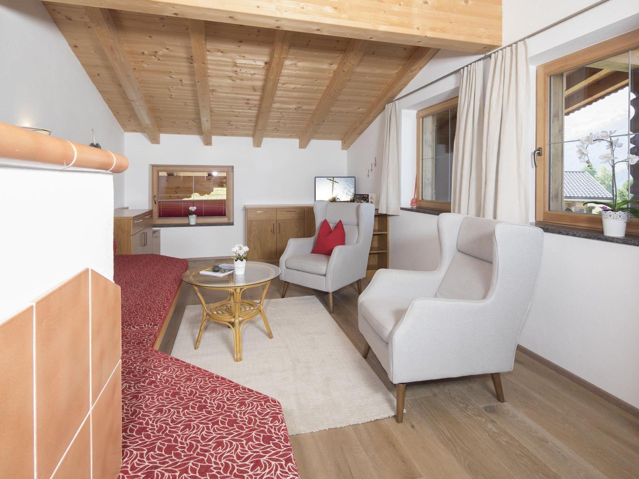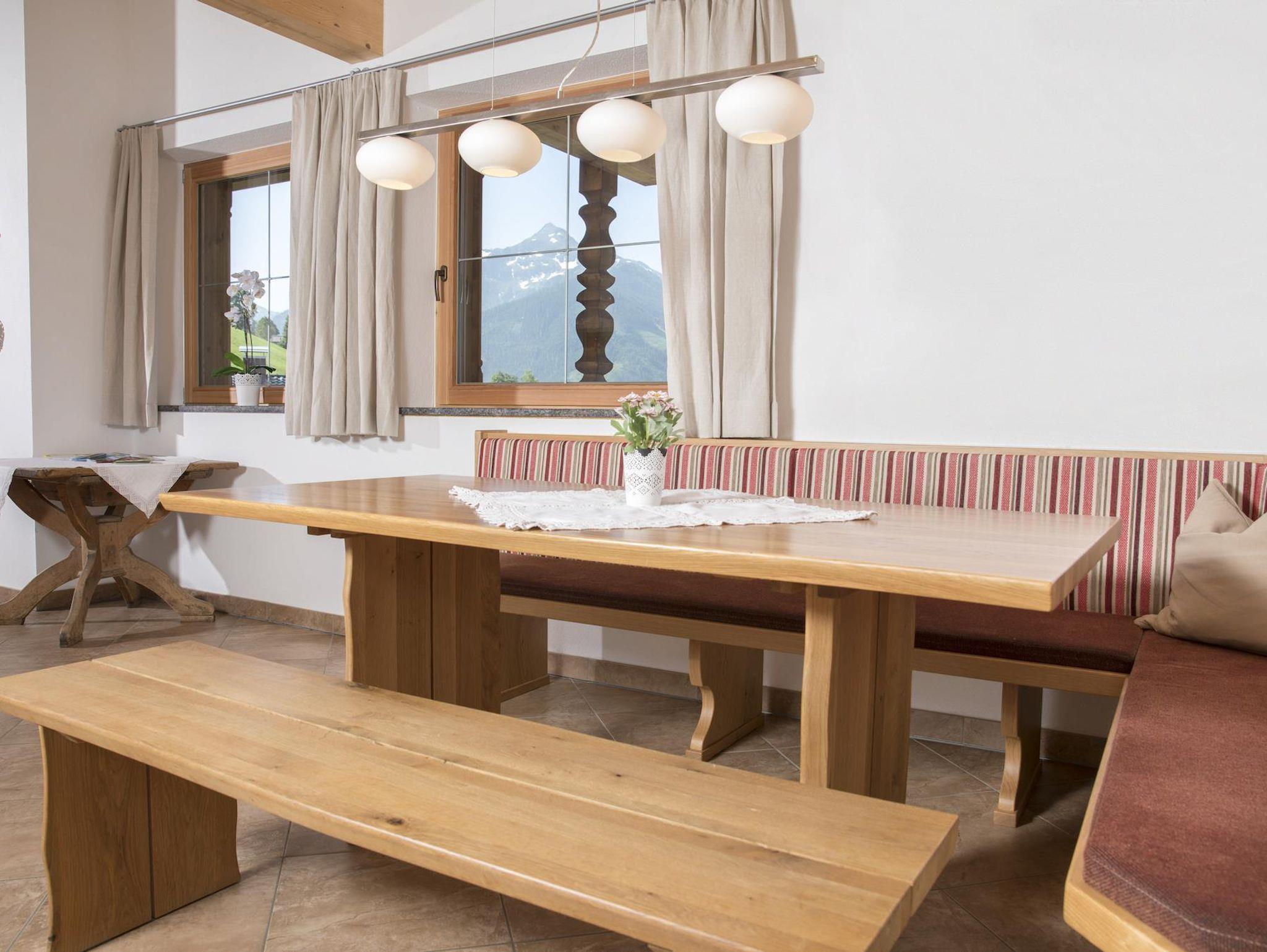 Die Ferienwohnung Roßmoos ist 150m² groß und verfügt über 3 Schlafzimmer (2 Doppelzimmer, 1 Zweibettzimmer) und hat einen herrlichen Ausblick in die Alpbachtaler Berge. Die vollausgestattet Küche mit Sitzecke und einem gemütlichen Wohnbereich lädt zum Verweilen ein.