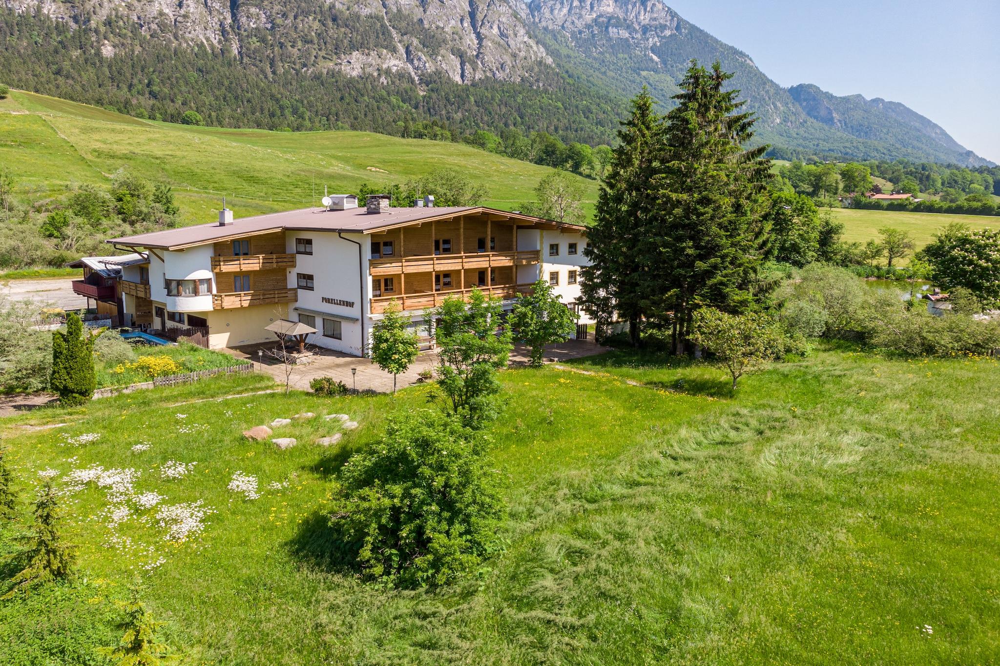 Denne unikke, fritliggende bolig er beliggende i centrum af Tyrol, syd for fæstningsbyen Kufstein. Det tidligere hotel er nu et stort feriehus, som komfortabelt kan rumme 60 gæster. Dette gør det til et ideelt overnatningssted for grupper, familier og andre store fester. Forellenhof har for nylig fået en ny ejer og ser frem til at byde sine gæster velkommen. Denne særlige ejendom er velegnet til maksimalt 60 personer. Det er helt til rådighed for dit rejseselskab. Dit privatliv er garanteret her! Det meget store sommerhus (ikke mindre end 1200 m2 feriefornøjelse) består af en hovedbygning og et udhus. Alt hænger sammen indefra. Stuerne (østrigske stuer) er et vidunderligt sted at sidde sammen. Udenfor på terrassen er der en grill og der er også en bålplads i haven. Skibussen stopper næsten lige uden for døren og kører dig gratis til det største skiområde i Østrig, herunder Ellmau, Westendorf og Kirchberg. Angerberg ligger tæt på hovedvejene til Brixental-dalen. Herfra har du også adgang til et af de største og mest moderne skiområder i verden: SkiWelt Wilder Kaiser - Brixental. Skiområdet er ideelt til fantastiske skiture og til at nyde den hvide verden. Også om sommeren er naturelskere på det rigtige sted at tage på smukke vandreture og mountainbiketure, mens de nyder den vidunderlige udsigt over de bjergrige omgivelser. Den nærliggende Mariastein er et besøg værd. Det er kendt for sin snehvide kirke og kapel. Billedet af Jomfru Maria i Nådens Kapel, som kan nås via mange trin, fortryller mange pilgrimme. I alt er der ikke færre end 29 soveværelser og badeværelser. Alt er i god stand og for de rigtige entusiaster er der endda en sauna (til 10 personer)!