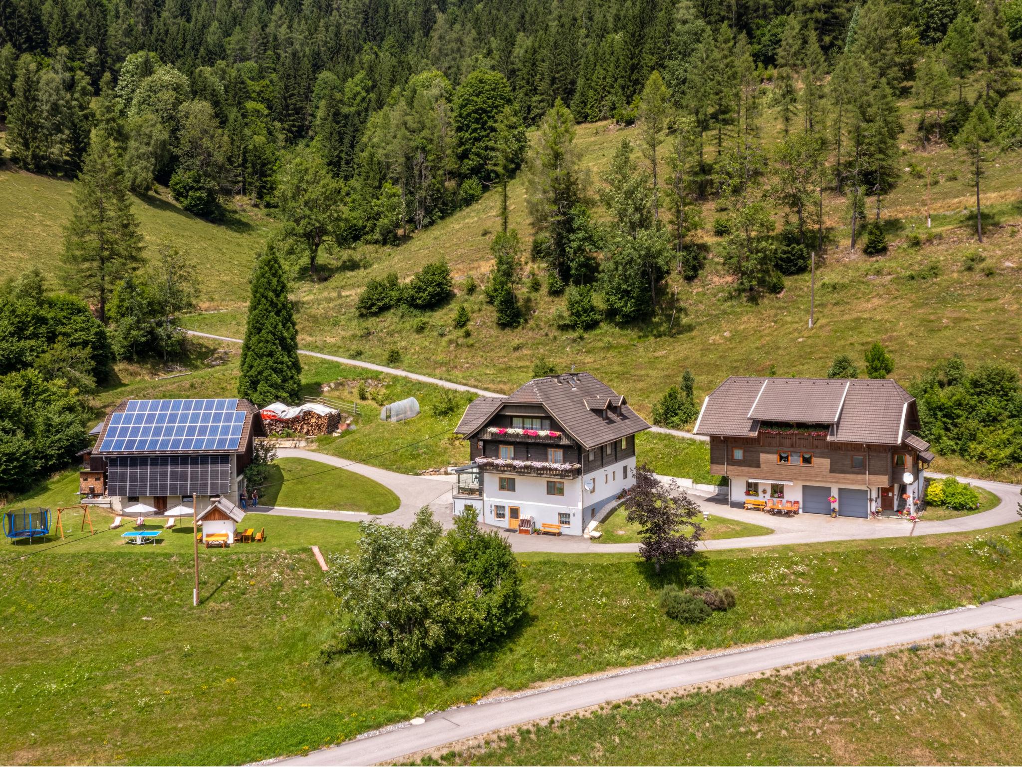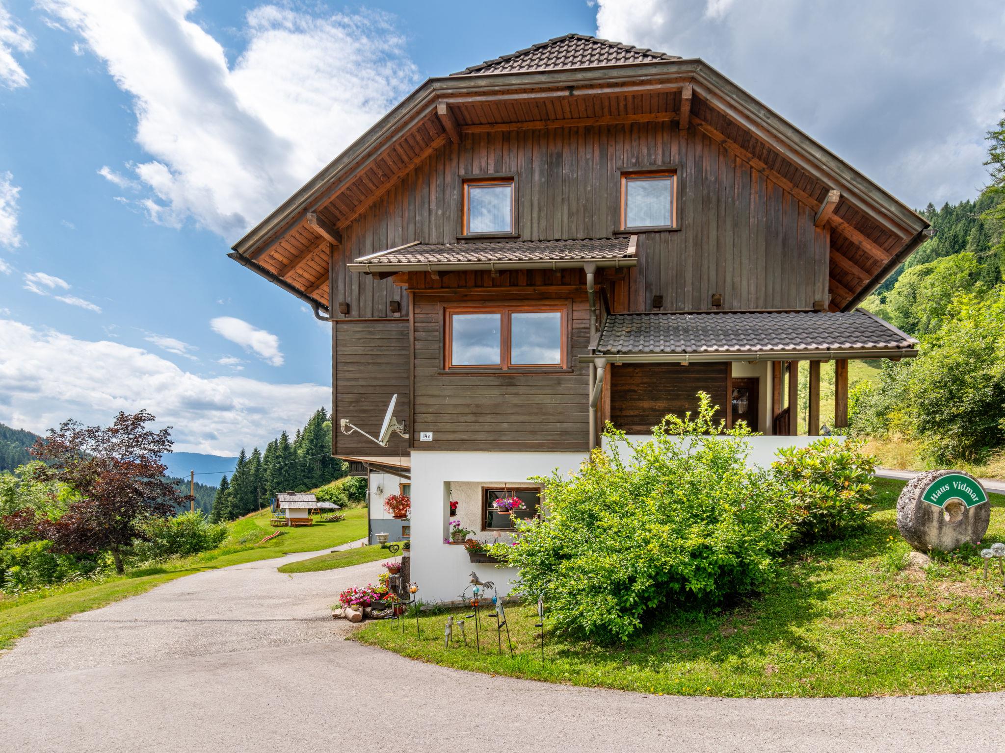 Cosy, rustic farmhouse "Vidmar". 4 apartments in the property. In the district of Innerteuchen 6.5 km from the centre of Arriach, 18 km from the centre of Feldkirchen, 23 km from the centre of Villach, in a secluded position on a slope. For shared use: property 5'000 m2 with lawn and trees, lawn for sunbathing. Table tennis, patio, garden furniture, barbecue (slide, swing). In the house: trampoline, central heating system. Parking at the house. Shop 6.5 km, restaurant 6.5 km, bus stop "Innerteuchen Neuwirth" 1.2 km, lake Afritzer See 14 km. Walking paths from the house 50 m. Well-known lakes can easily be reached: Ossiacher See 15 km, Faaker See 25 km, Wörther See 32 km.