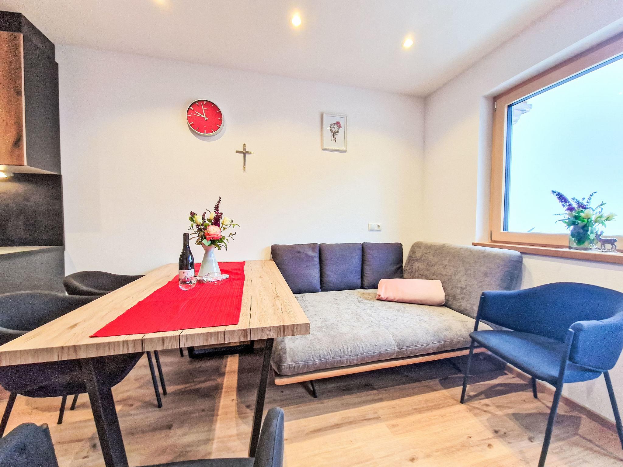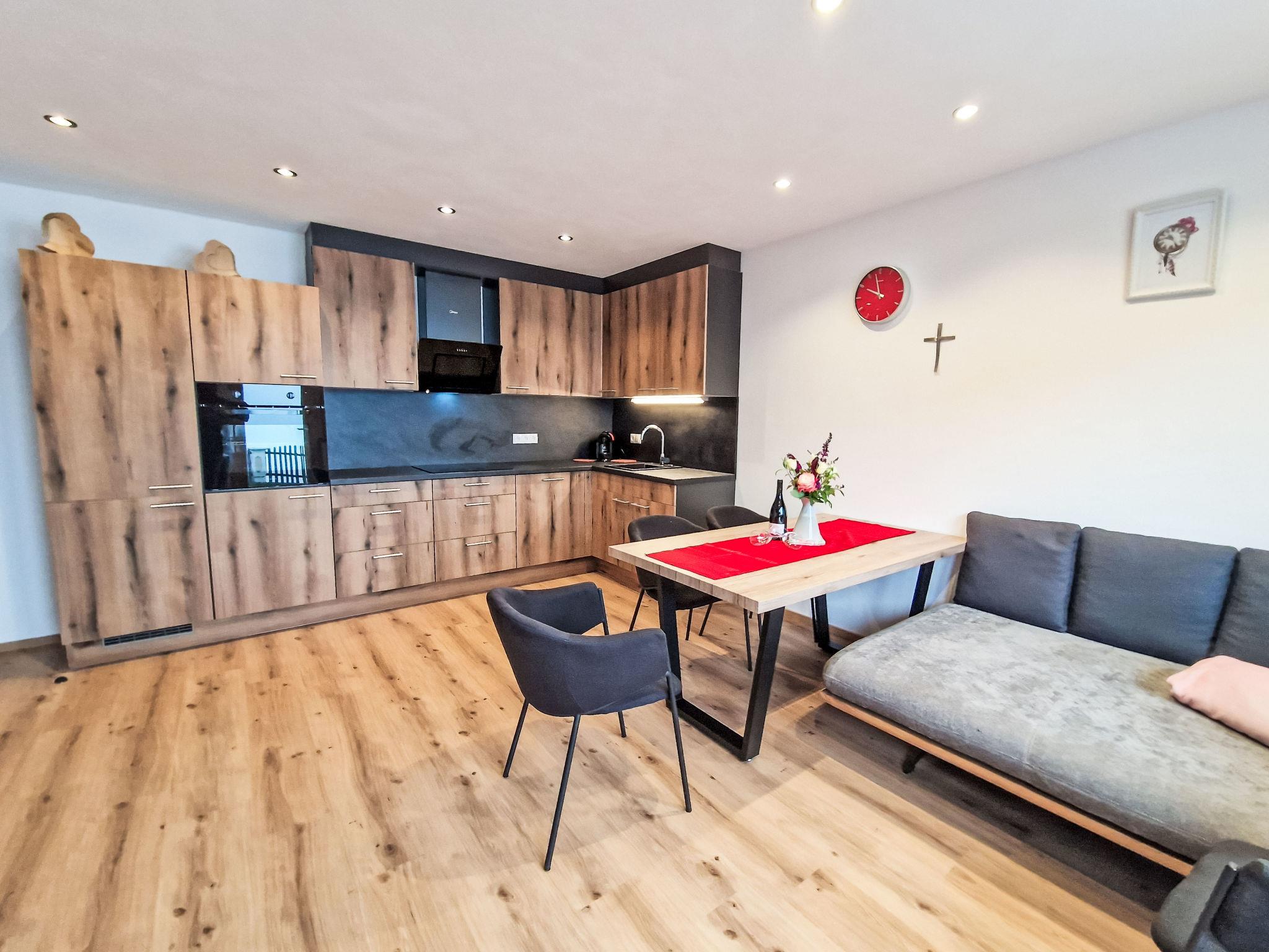 "2 Zimmer", 2-room apartment 65 m2 on 2 levels, on the ground floor. Modern and cosy furnishings: living room with dining nook and TV (flat screen). 1 room with 2 beds and 1 double bed. Open kitchen (oven, dishwasher, 4 ceramic glass hob hotplates, toaster, kettle, electric coffee machine). Shower, sep. WC. Underfloor heating. Terrace. Terrace furniture. Facilities: Internet (WiFi, free). Please note: non-smokers only. Smoke alarm.