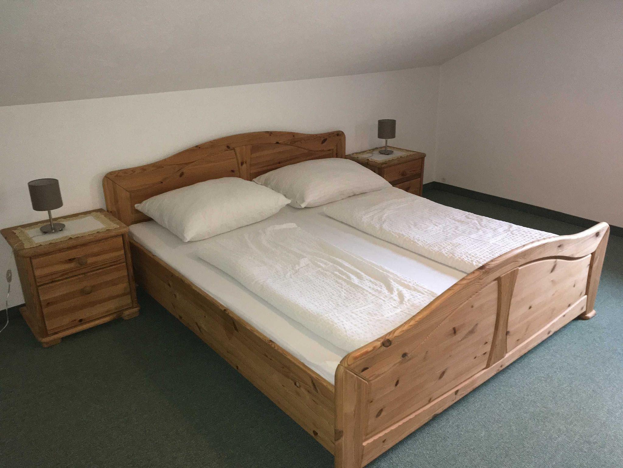 Die Ferienwohnung Bergblick befindet sich im 2. Stock des Hauptgebäudes. Auf 95 m² verteilen sich eine Wohnküche, 3 Doppelzimmer sowie Dusche und WC in getrennten Räumen. Die Küche ist mit Kühl-Gefrierschrank, Backofen und Herd sowie Geschirrspüler ausgestattet. Zur Unterhaltung ist ein moderner Flachbildfernseher installiert. Auch in dieser Wohnung ist ein Doppelzimmer in Vollholz verkleidet und sorgt somit für ein unvergleichbares Schlafklima. Vom südlich ausgerichteten Balkon bietet sich ein atemberaubender Ausblick auf die Zillertaler Bergwelt mit der hoch aufragenden Gerlossteinwand.