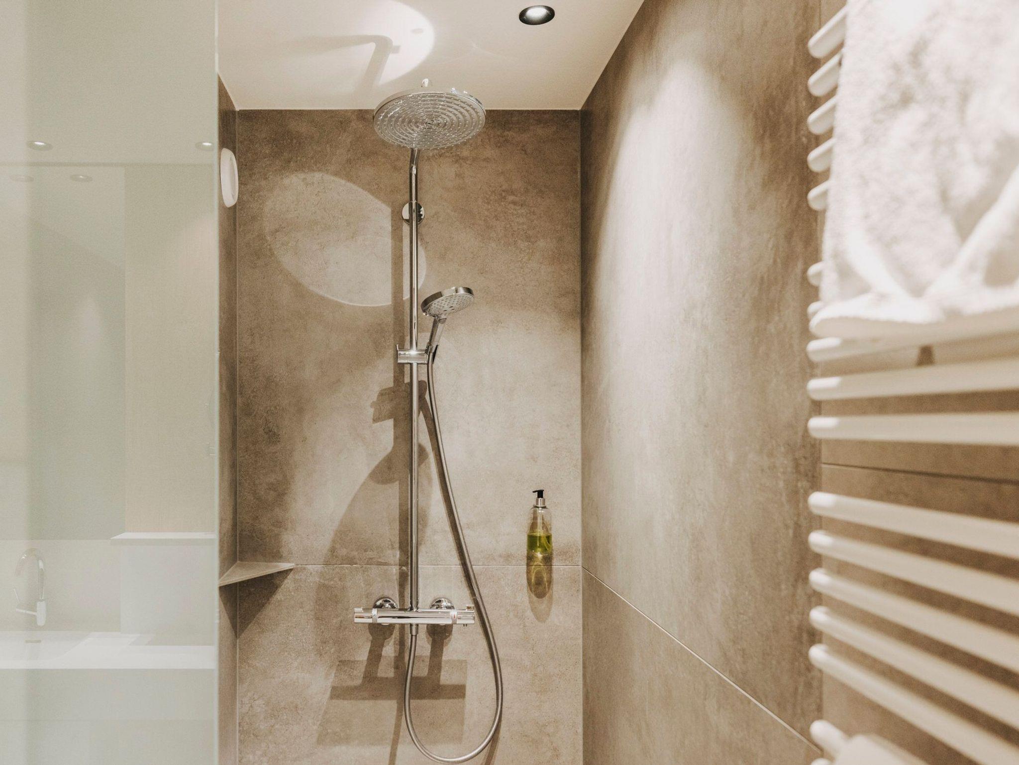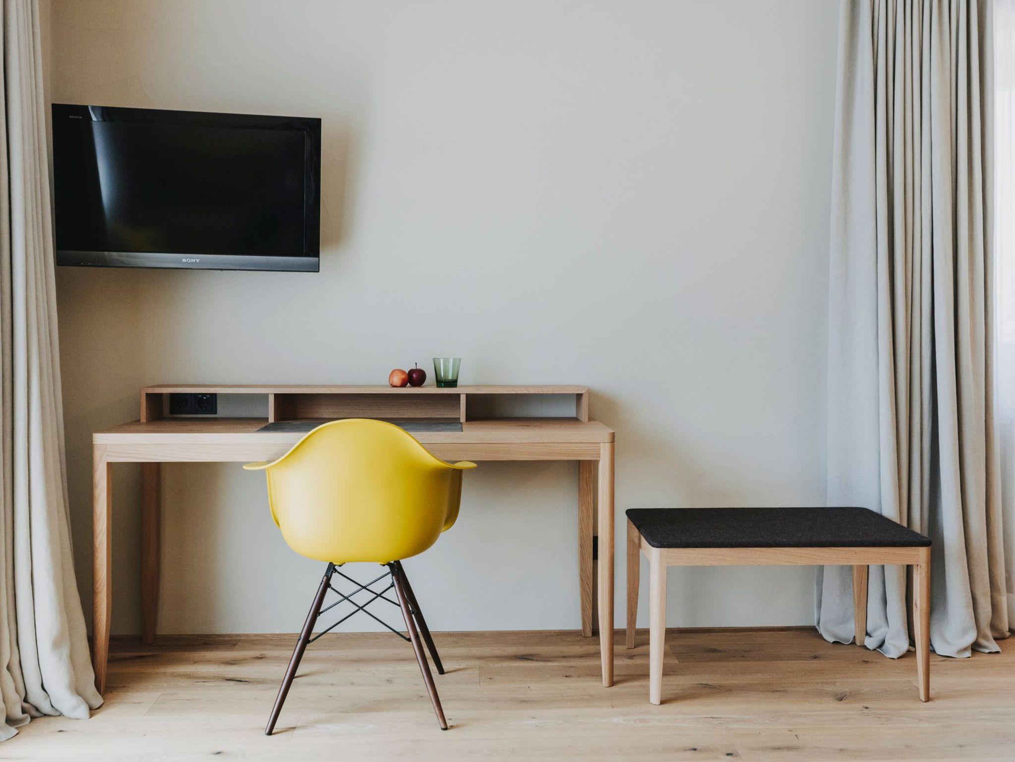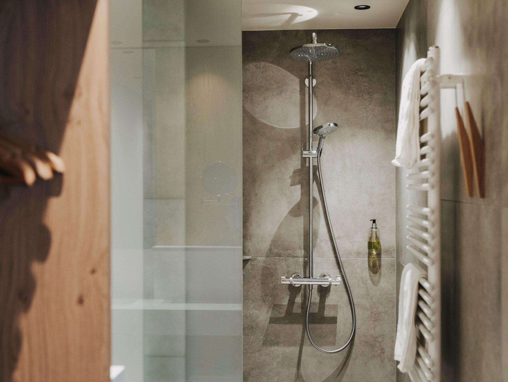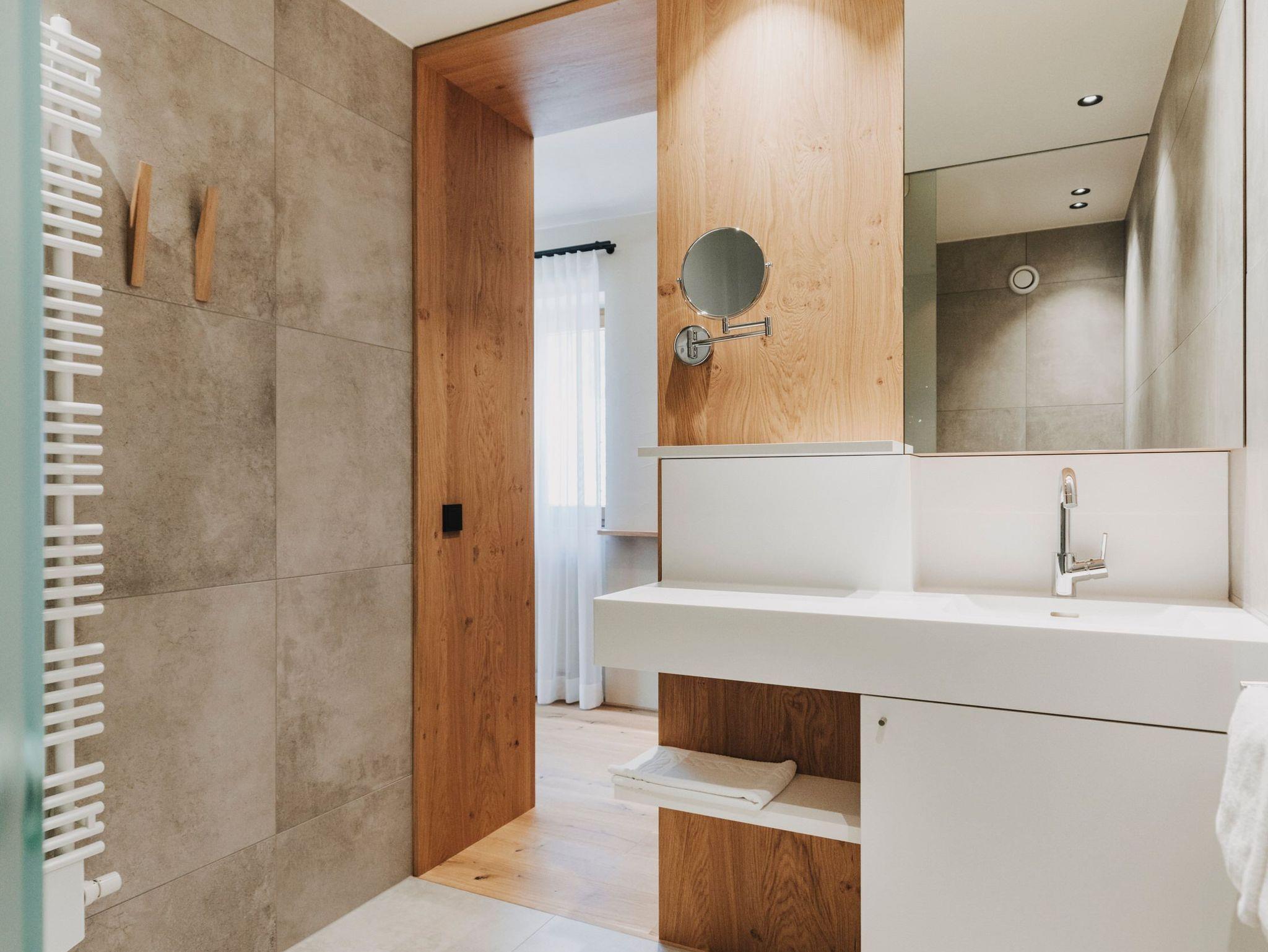 Exclusive DOPPELZIMMER - ca. 32m² - im modernen Design mit alpinen Charme - ausgestattet mit Südbalkon, Holzboden, Schreibtisch, Telefon, Flat-TV, Safe, gemütlichem Sitzsofa und modernem Badezimmer mit Regendusche, WC, Haarfön, Kosmetikspiegel.