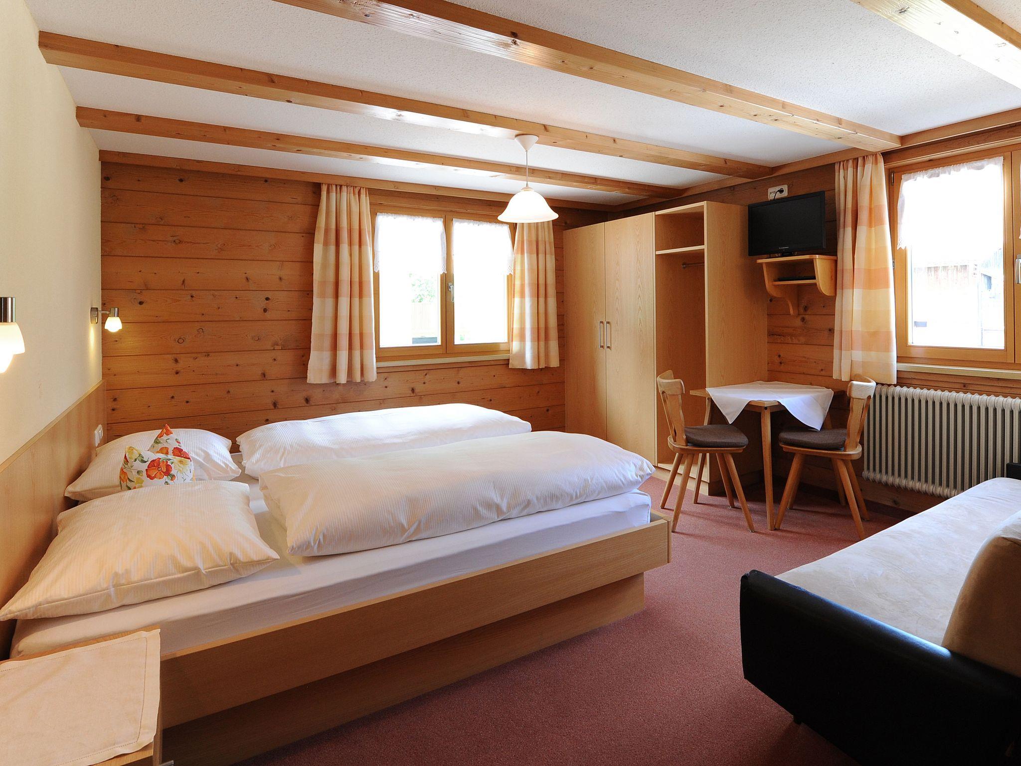 Wir verfügen über 2 Ferienwohnungen und zusätzlich 2 Zimmer mit Dusche/WC, TV, die gerne zu den Ferienwohnungen dazugebucht werden können. Für Skier, Fahrräder und Motorräder bieten wir eine abschließbare Garage an. Ebenfalls gibt es einen Trockenraum mit Schuhtrockner.