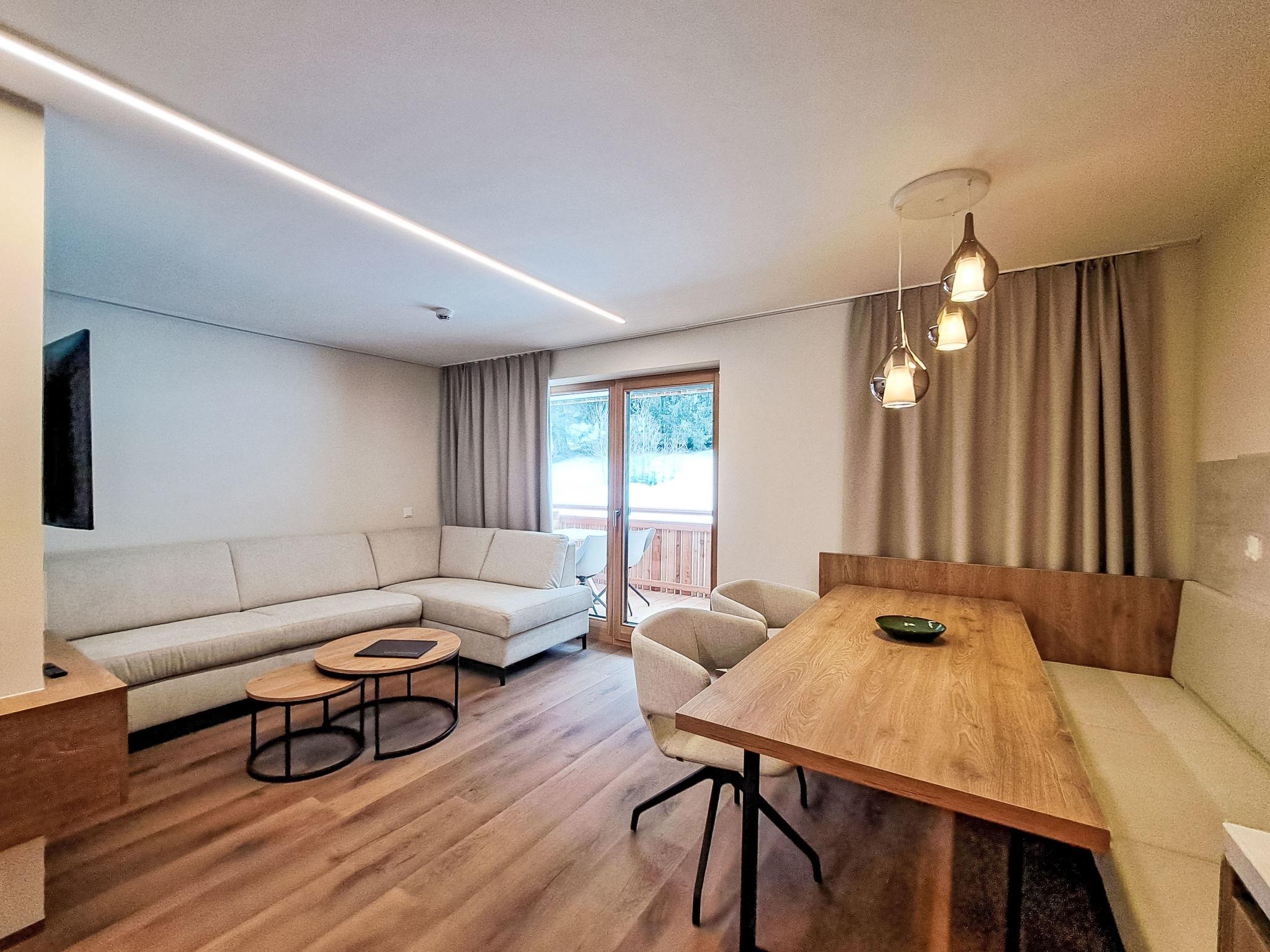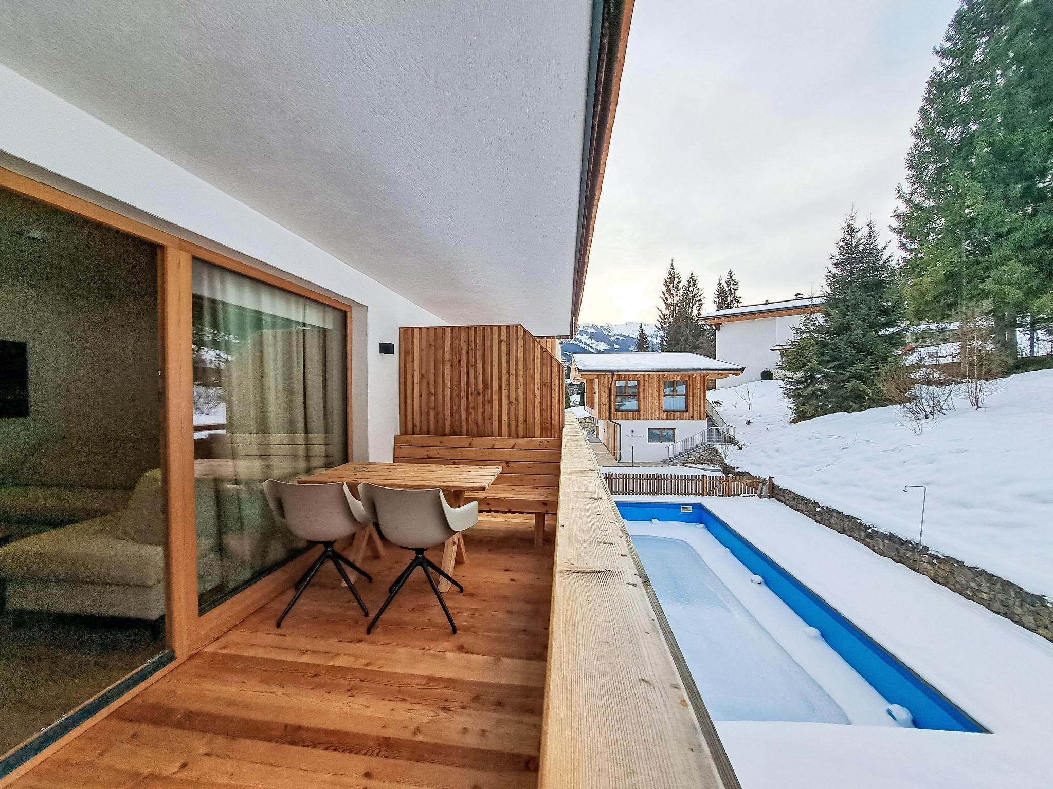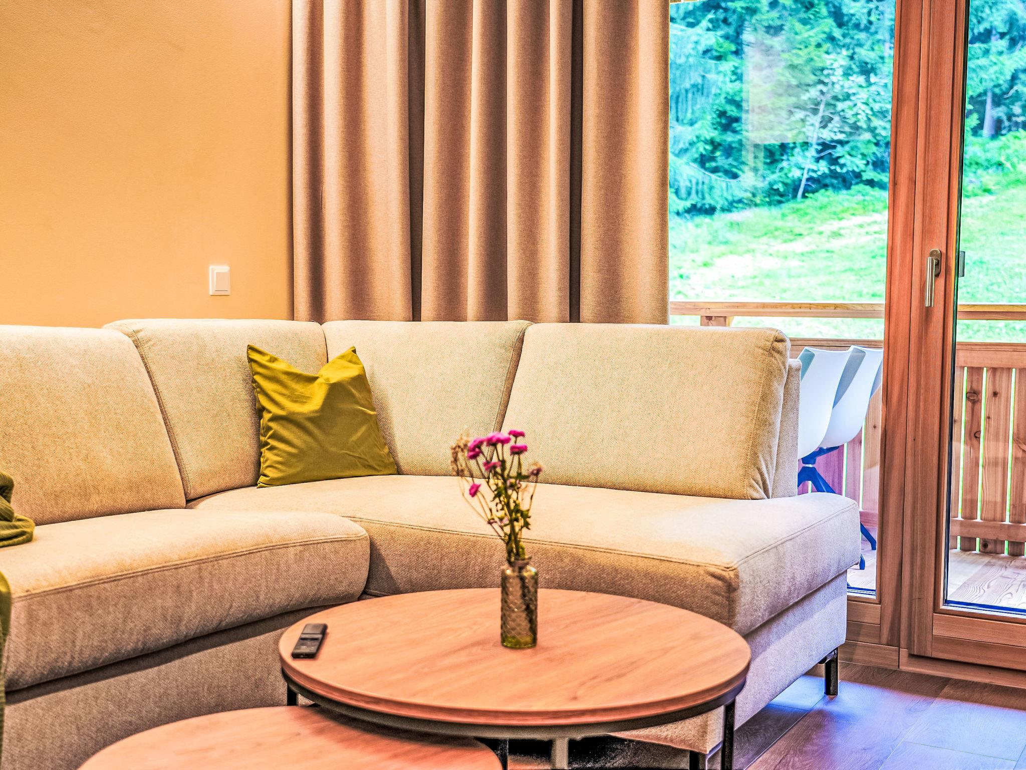"Bergklee", 3-room apartment 90 m2. Very comfortable and tasteful furnishings: 2 double bedrooms, each room with satellite TV and flat screen. Exit to the balcony. Kitchen-/living room (oven, dishwasher, 4 ceramic glass hob hotplates, toaster, electric coffee machine) with 1 double sofabed, dining table and flat screen. Exit to the terrace. Shower/WC, sep. WC, Sauna. Heating. Balcony, terrace. Terrace furniture, balcony furniture, deck chairs. Very beautiful, of the mountains and the swimming pool. Facilities: children's high chair. Please note: non-smokers only. There is a rain shower in the bathroom!