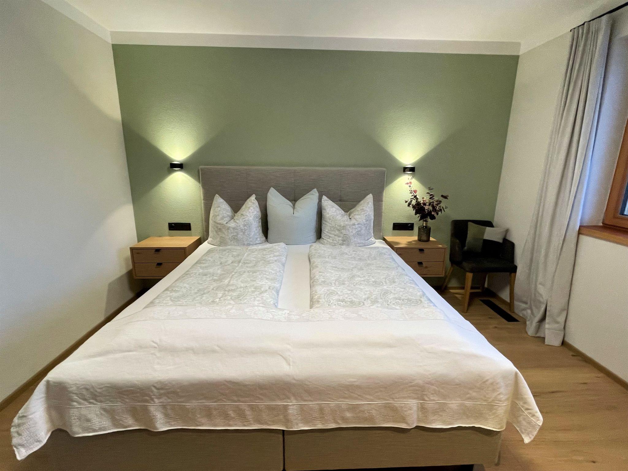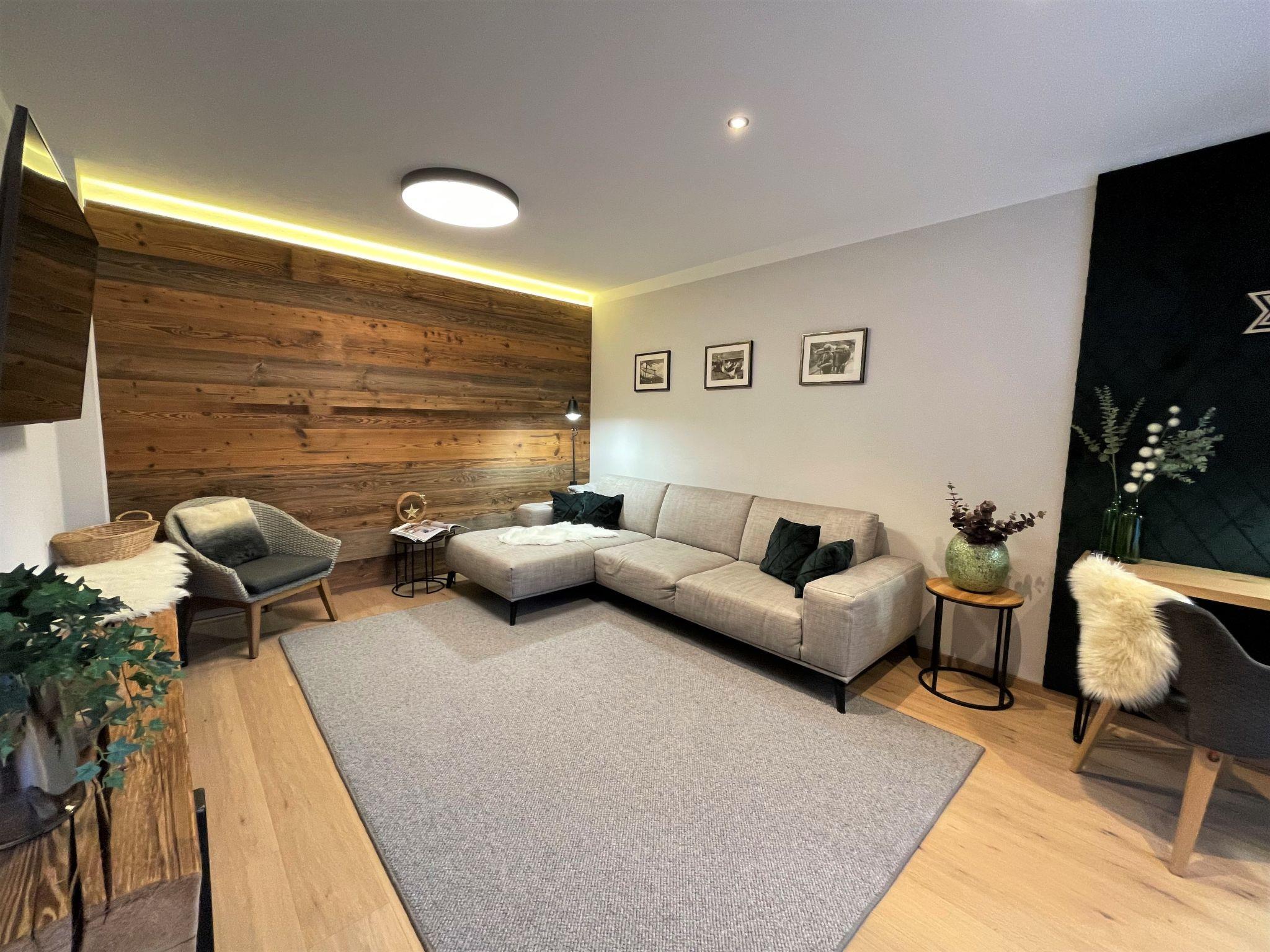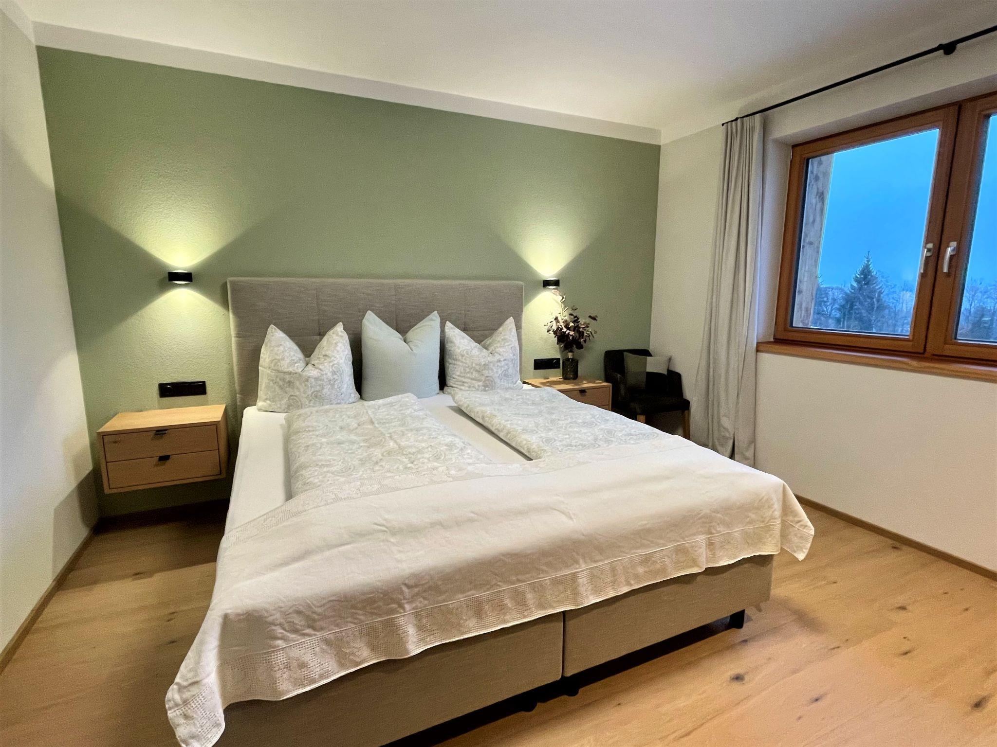 "Chalet Holzerjuwel", 7-room apartment 170 m2, on the ground floor. Bright, very comfortable and tasteful furnishings: entrance hall. 1 double bedroom with satellite TV. Exit to the terrace. 3 double bedrooms, each room with shower/WC and satellite TV. Office with 1 bed and satellite TV. Large kitchen-/living room (oven, dishwasher, 4 ceramic glass hob hotplates, toaster, kettle, electric coffee machine, Capsules for coffee machine (Nespresso)) with dining nook and satellite TV. Exit to the terrace. Shower/WC, sep. WC. Underfloor heating. Wooden floors. 2 large terraces 18 m2. Terrace furniture, electric barbecue, deck chairs (4), box-room. Marvellous panoramic view of the mountains and the valley. Facilities: children's high chair, baby cot, hair dryer. Internet (WiFi, free). Parking (4 cars). Please note: non-smokers only. Private entrance, fire extinguisher. No internal connecting door between the separated properties. Ideal accommodation for home office activities or for a "Workation" - thanks to the extra powerful business WLAN.