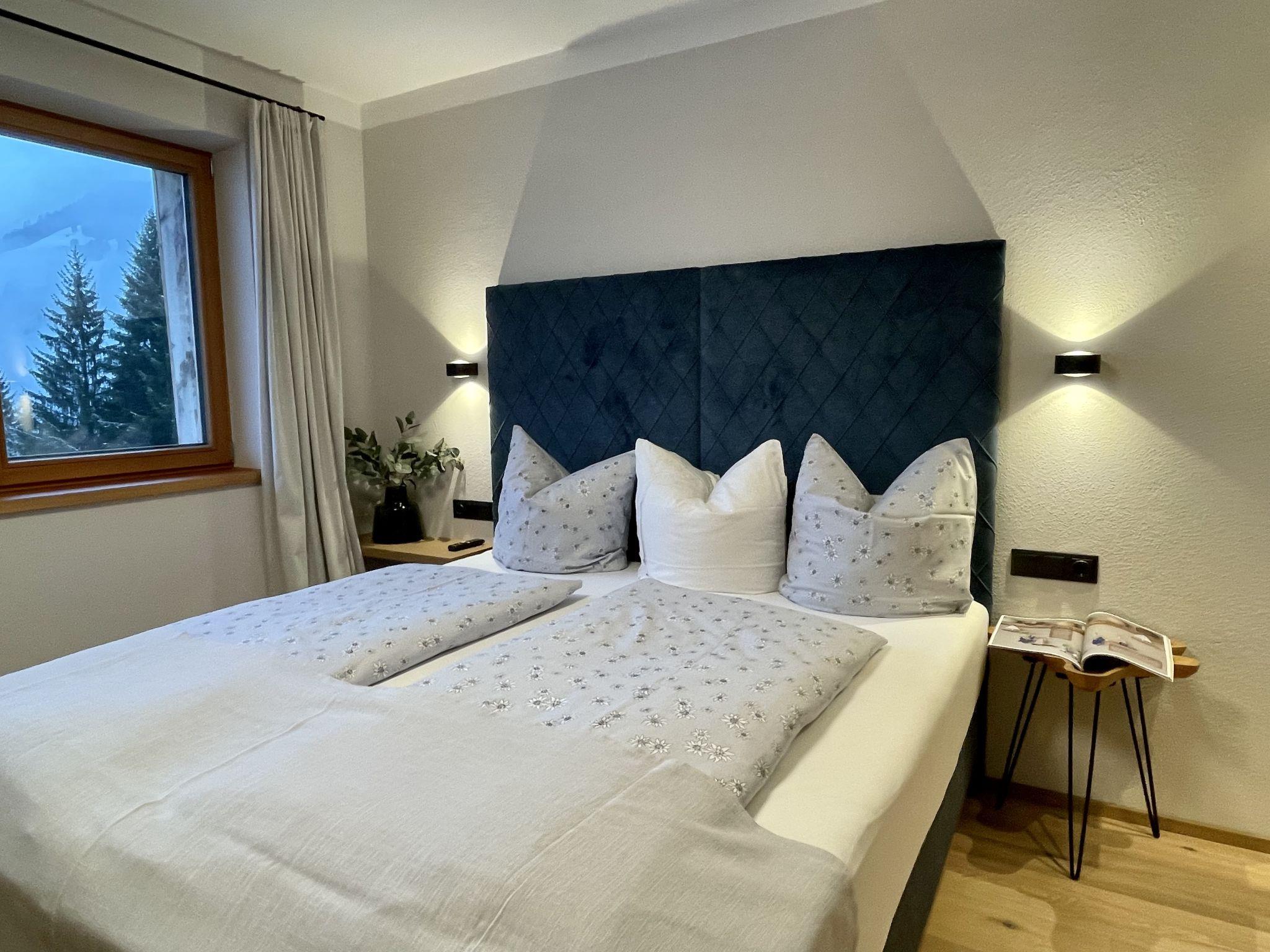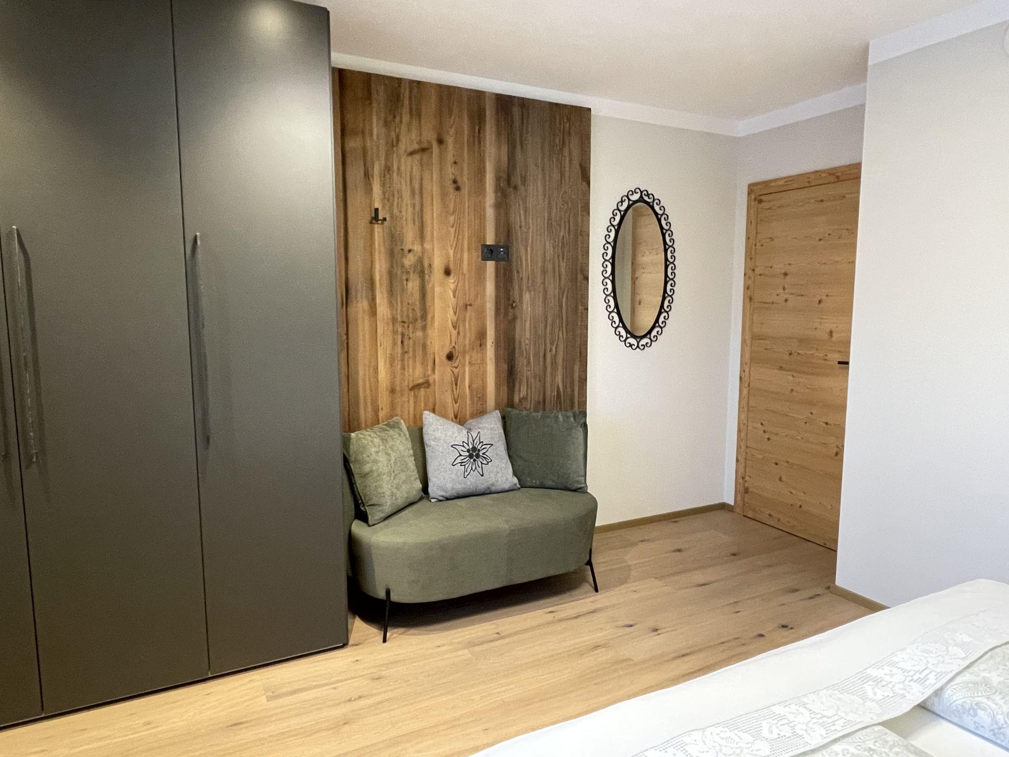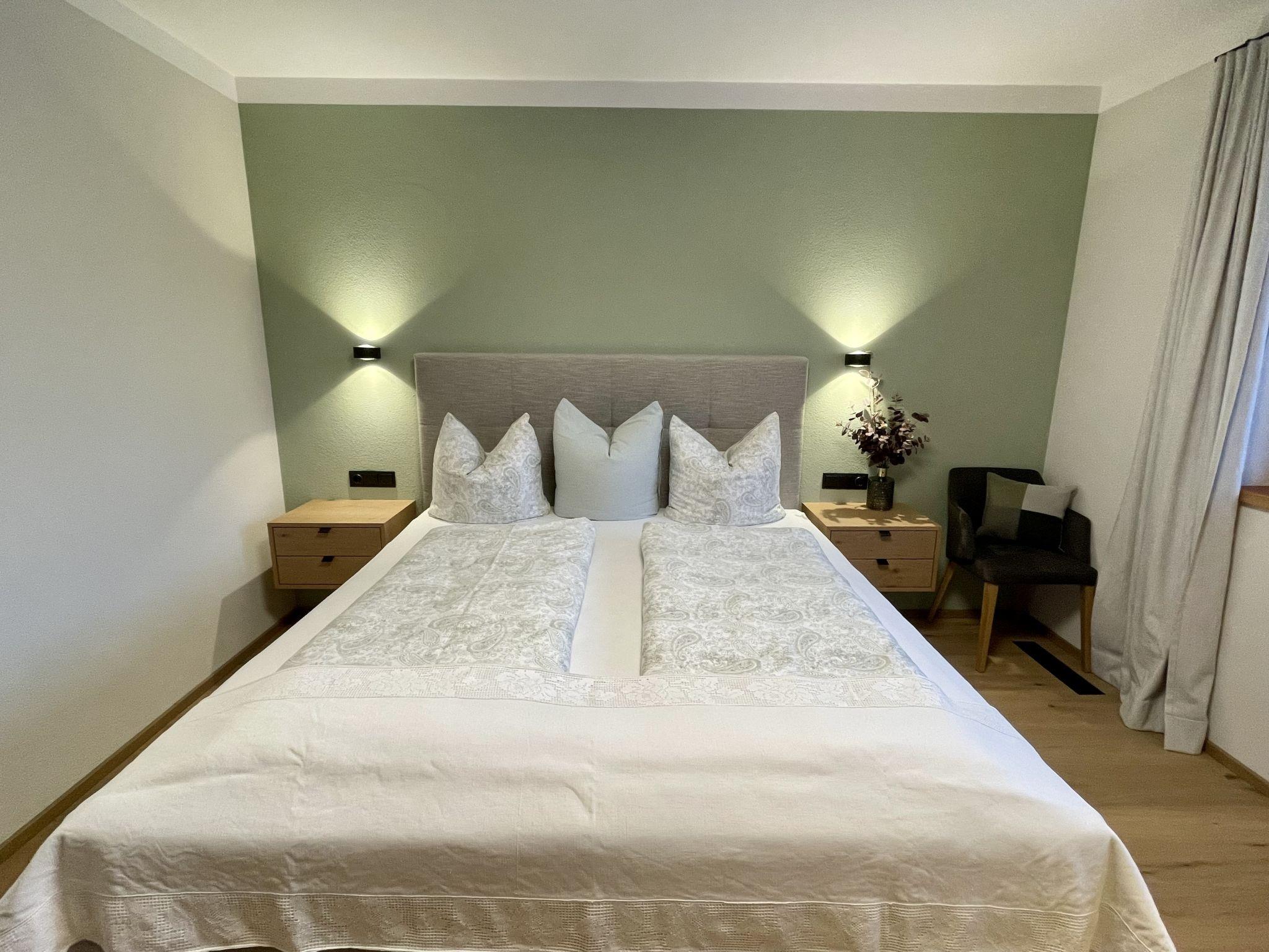 "Chalet Holzerjuwel", 7-room apartment 170 m2, on the ground floor. Bright, very comfortable and tasteful furnishings: entrance hall. 1 double bedroom with satellite TV. Exit to the terrace. 3 double bedrooms, each room with shower/WC and satellite TV. Office with 1 bed and satellite TV. Large kitchen-/living room (oven, dishwasher, 4 ceramic glass hob hotplates, toaster, kettle, electric coffee machine, Capsules for coffee machine (Nespresso)) with dining nook and satellite TV. Exit to the terrace. Shower/WC, sep. WC. Underfloor heating. Wooden floors. 2 large terraces 18 m2. Terrace furniture, electric barbecue, deck chairs (4), box-room. Marvellous panoramic view of the mountains and the valley. Facilities: children's high chair, baby cot, hair dryer. Internet (WiFi, free). Parking (4 cars). Please note: non-smokers only. Private entrance, fire extinguisher. No internal connecting door between the separated properties. Ideal accommodation for home office activities or for a "Workation" - thanks to the extra powerful business WLAN.