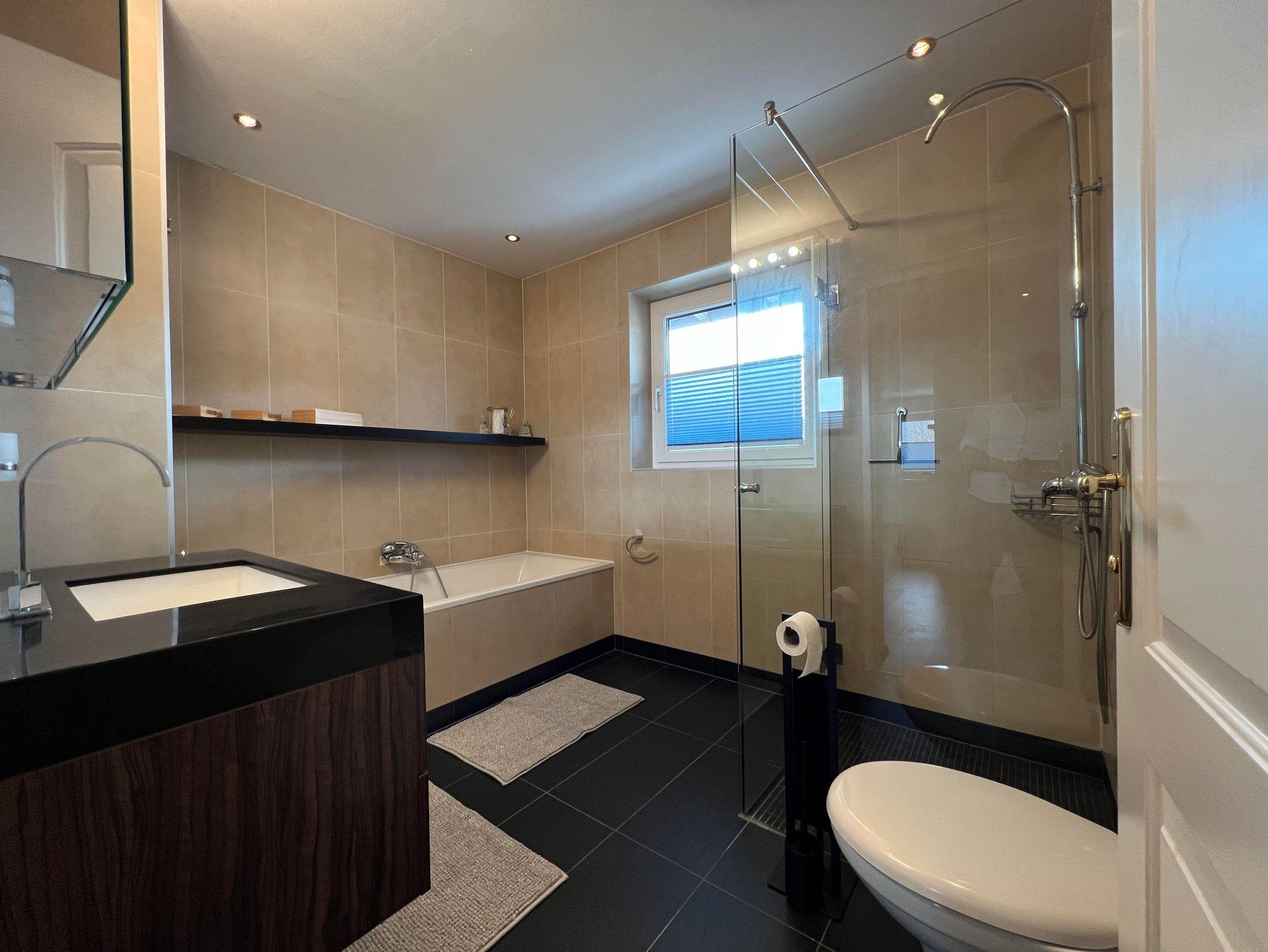 Die Wohnung erstreckt sich über 105 m² und bietet Platz für bis zu 6 Personen. Sie verfügt über eine Terrasse mit Bergblick, zwei Schlafzimmer (ein Doppelbett, zwei Schlafsofas für je zwei Personen), ein Wohnzimmer mit Satelliten-Flachbild-TV, eine voll ausgestattete Küche sowie ein Badezimmer mit Dusche und Badewanne. Handtücher und Bettwäsche sind inklusive.