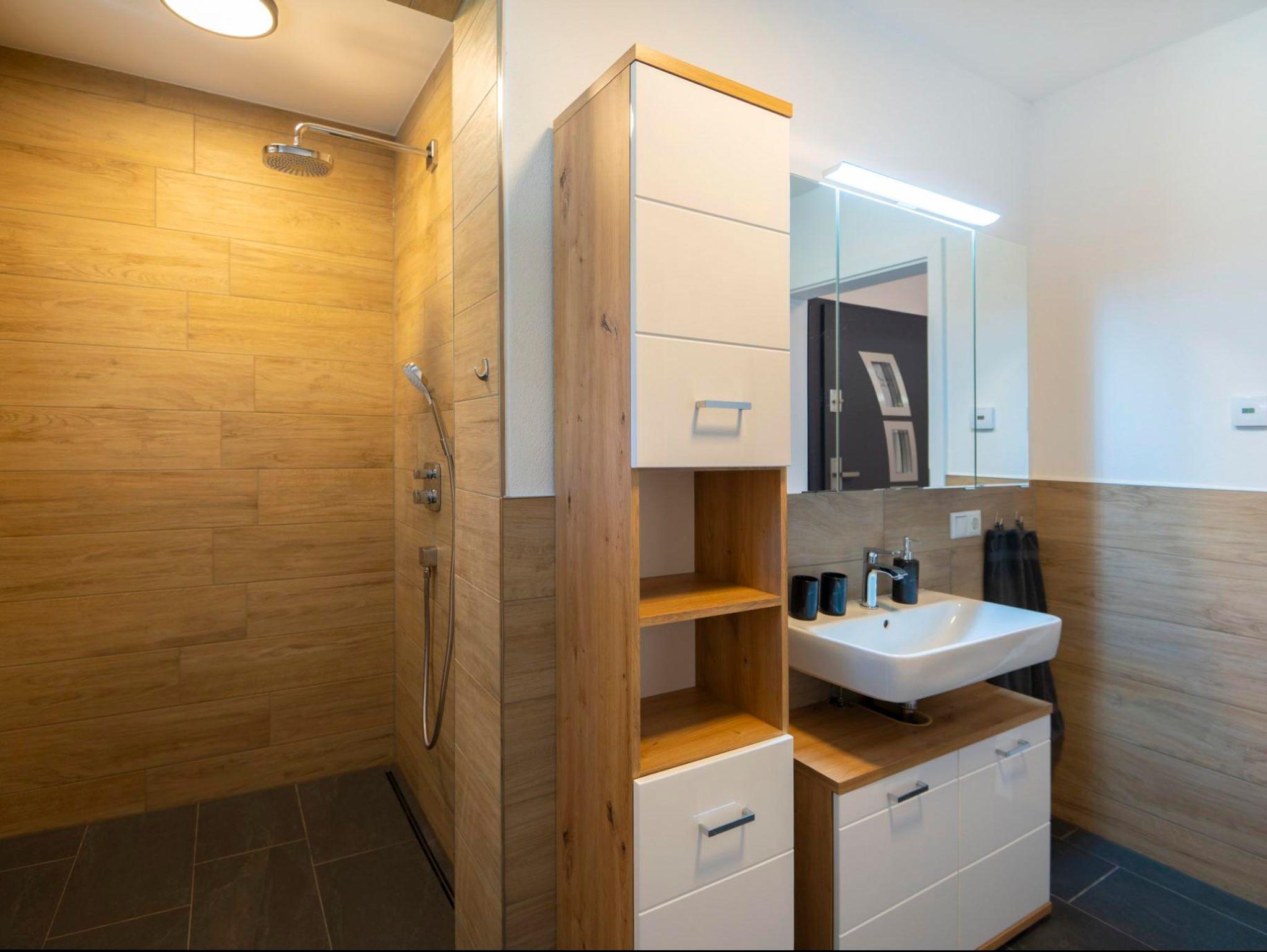 Genießen Sie auch hier den Luxus eines großen Balkons, den Sie vom Wohnzimmer aus erreichen. Er bietet Ihnen einen zauberhaften Blick auf die umliegende Landschaft und lädt zum Verweilen ein.