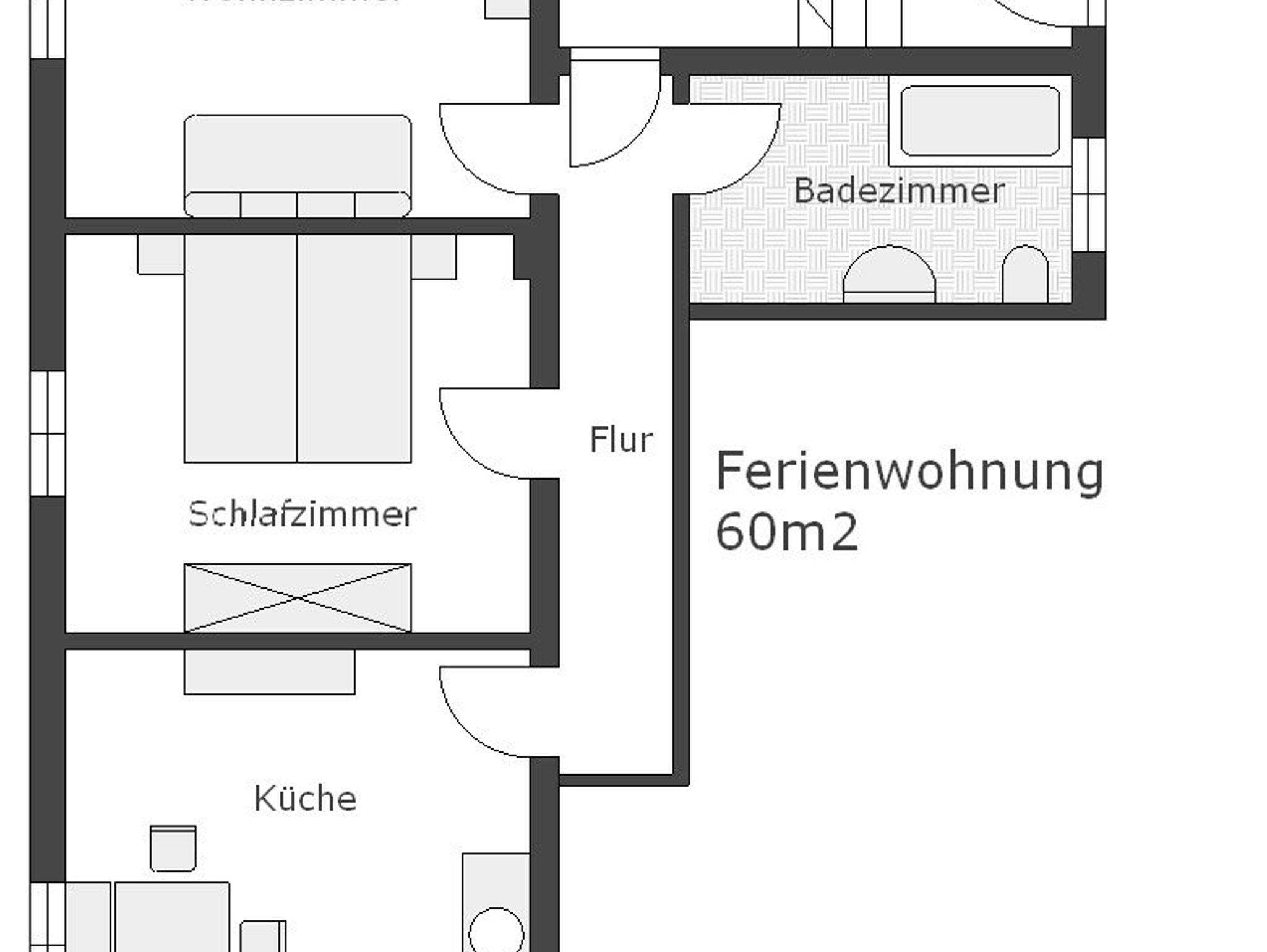 Die kleine Ferienwohnung mit 30 m² ist komplett ausgestattet und verfügt über einen seperaten Eingang. Öffentliche Parkplätze sind direkt gegenüber.