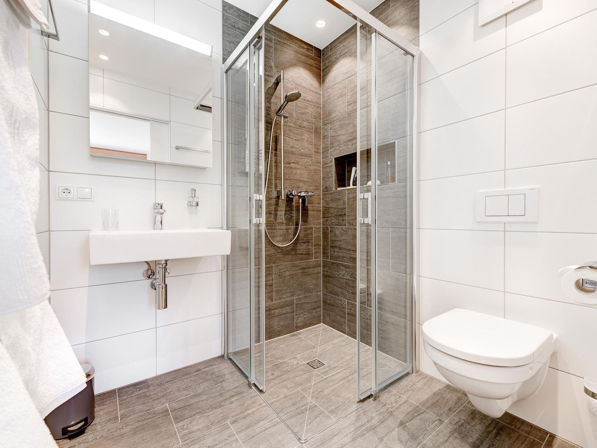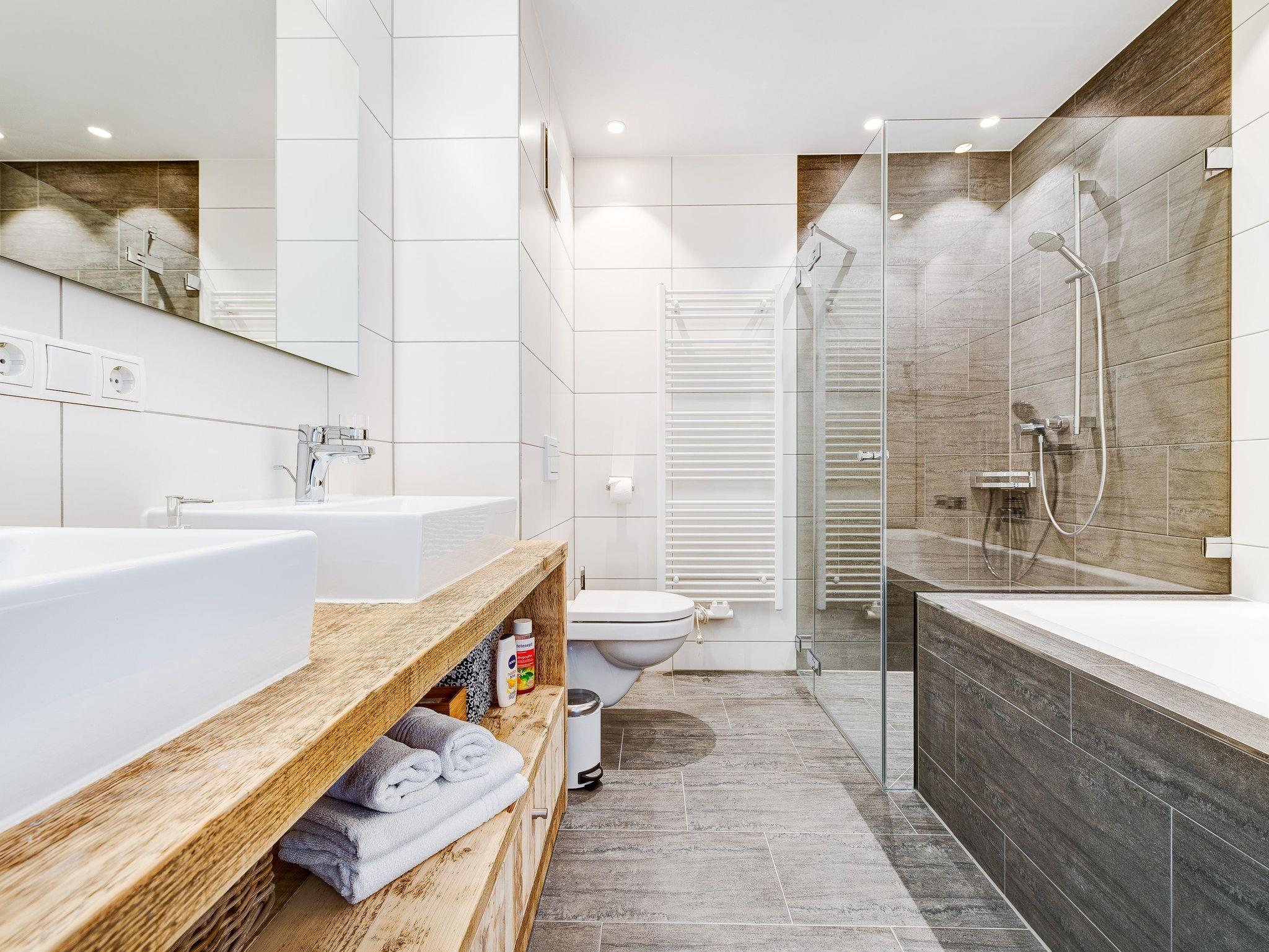 2 Badezimmer jeweils mit Dusche, WC (davon ein Ensuite Bad, Familienbad zusätzlich mit großer Badewanne)