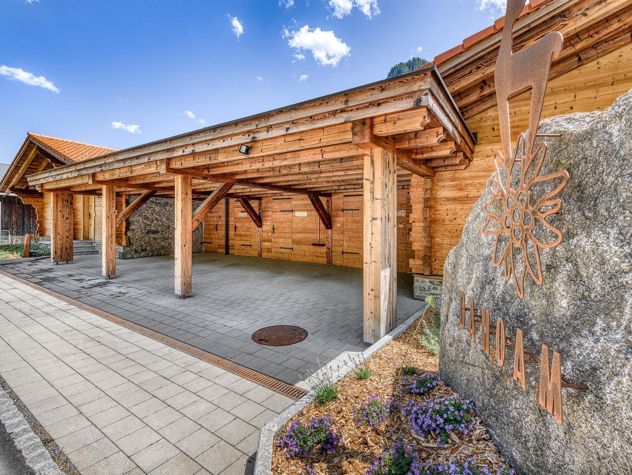 Die besondere Lage macht das urig-edle Ferienwohnhaus zu einem Blickfang und ist gleichzeitig für seine Gäste der ideale Ausgangspunkt für erholsame Urlaubstage. Klein aber fein! Die nur 4 Appartements, aufgeteilt auf 2 Baukörper liegen auf einem Plateau mit Blick auf die umliegende Bergwelt. Die Apartments im Obergeschoss verfügen über einen Balkone. Die Wohnungen im Erdgeschoss besitzen eine überdachte Terrasse mit Garten. Alle Wohnungen verfügen über einen Carport. Altholz, die rustikale Bauweise und Steinwandverkleidungen lassen den ganz besonderen Charakter der Dahoam-Apartmens zur Geltung kommen. Durch das perfekt abgestimmte Zusammenspiel von handwerklicher Qualität, architektonischer Kreativität und technischer Exzellenz wurde eine Vision wahr, die auch aus ökonomischer und ökologischer Sicht überzeugt.