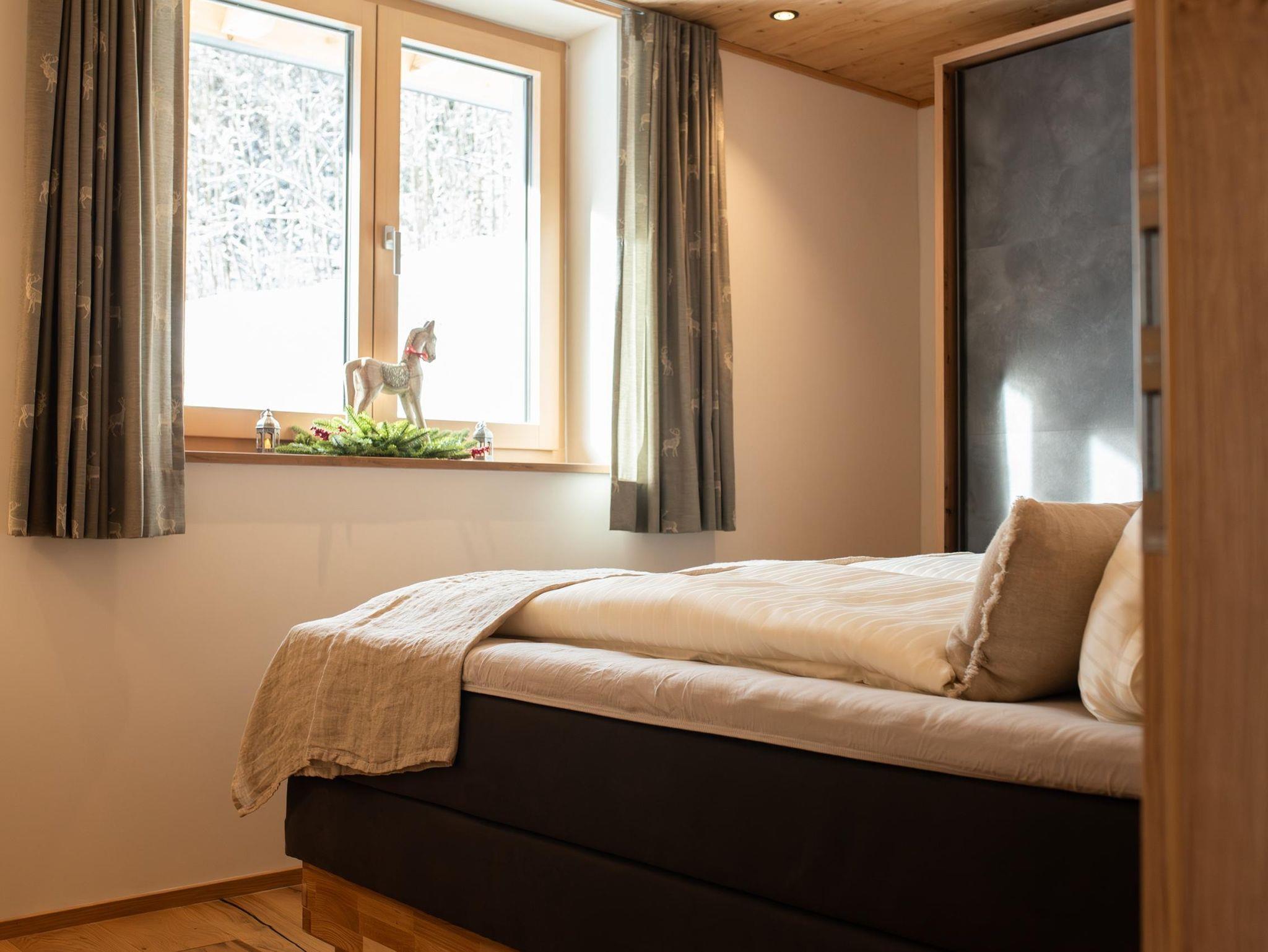 Im Schlafzimmer helfen Ihnen nicht nur die komfortable Matratze und das bequeme Boxspring-Doppelbett zu erholsamen Schlaf, sondern auch das weiche, idyllische Rauschen des örtlichen Baches. Genießen Sie eine entspannte Nachtruhe und begrüßen Sie den neuen anbrechenden Tag mit frischem Elan.