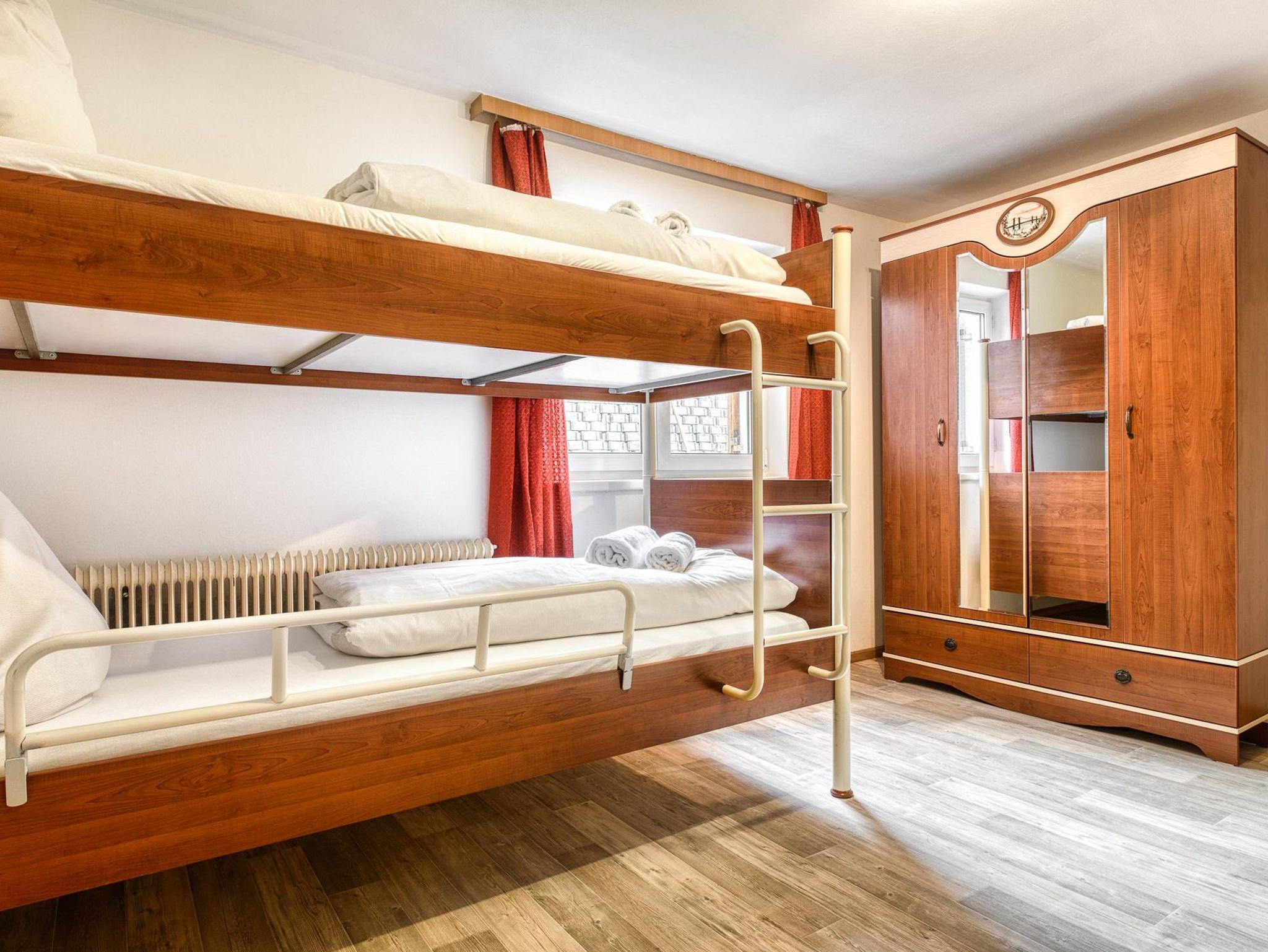 Zwei Schlafzimmer mit jeweils einem Doppelbett, sowie ein Stockbett in einem „Durchgangszimmer“ bieten Platz für 6 Personen. Auch eine separate Küche mit einem Esstisch, sowie ein geräumiger Aufenthaltsraum machen den Familienurlaub angenehm und komfortabel.