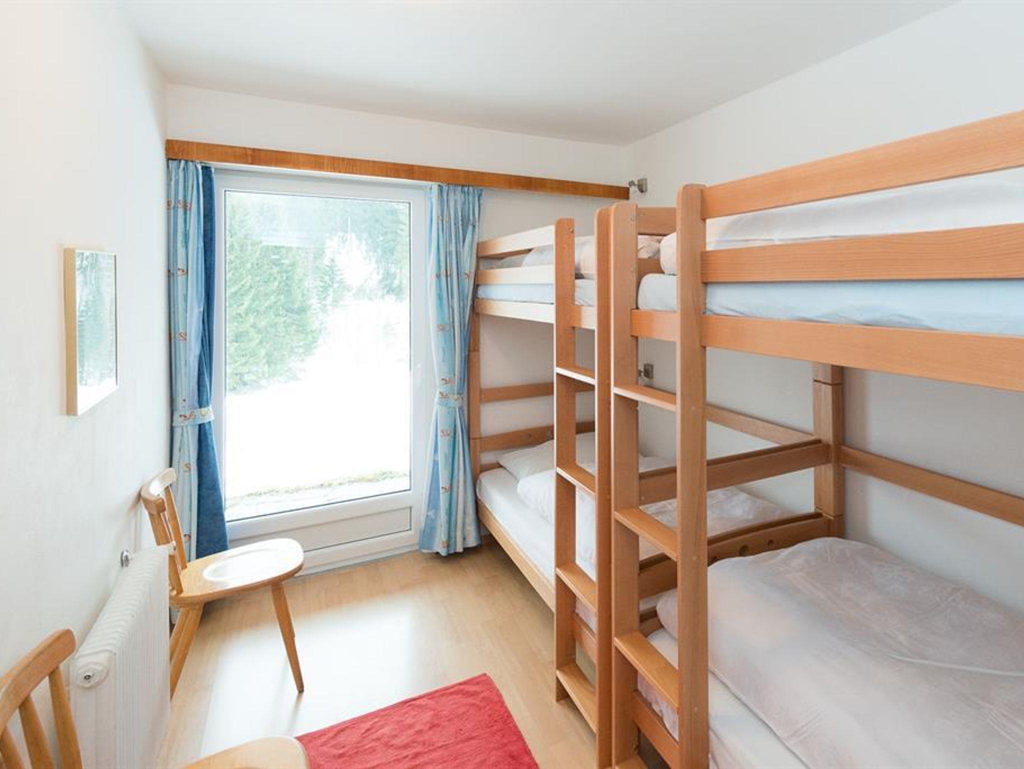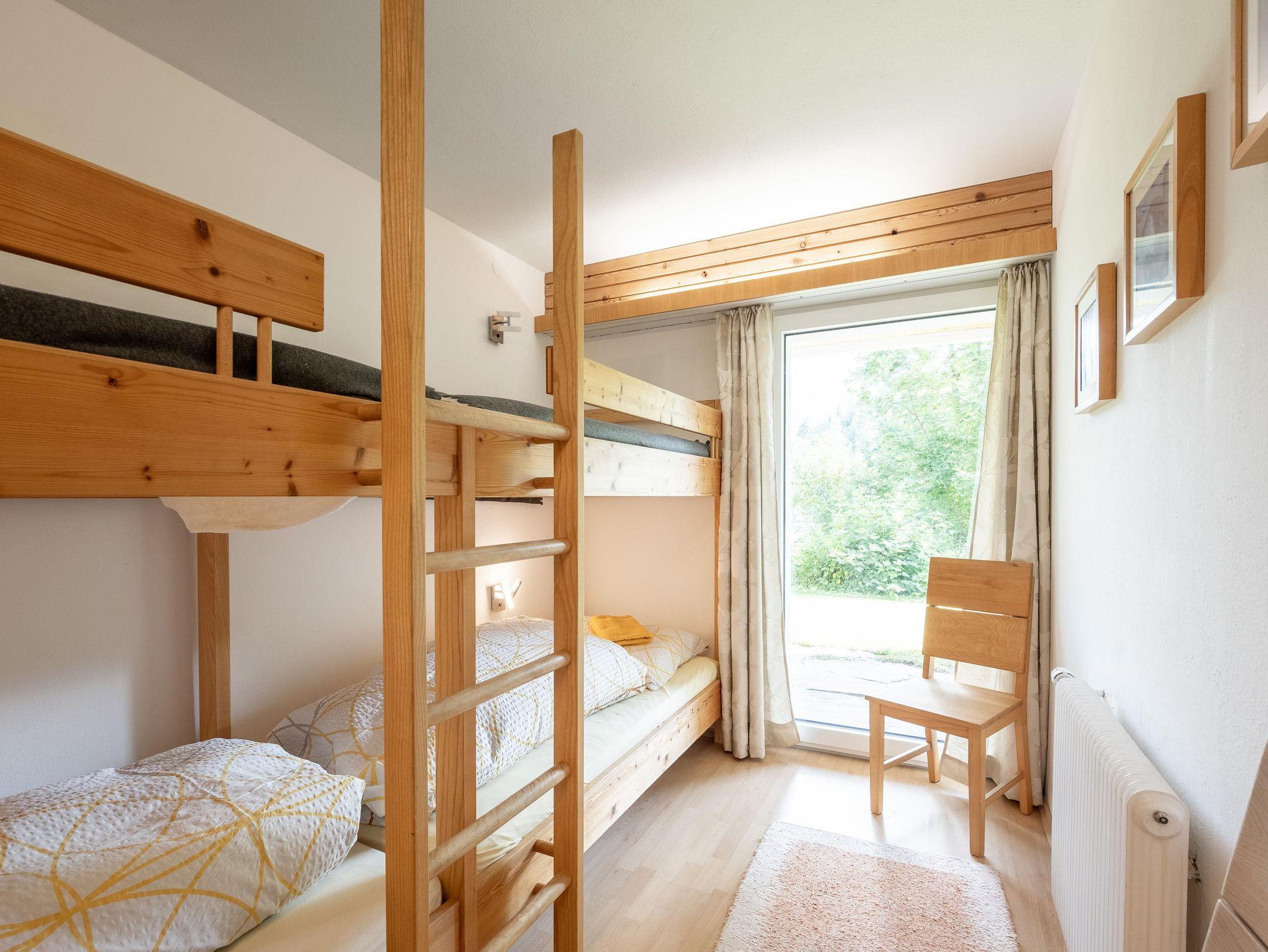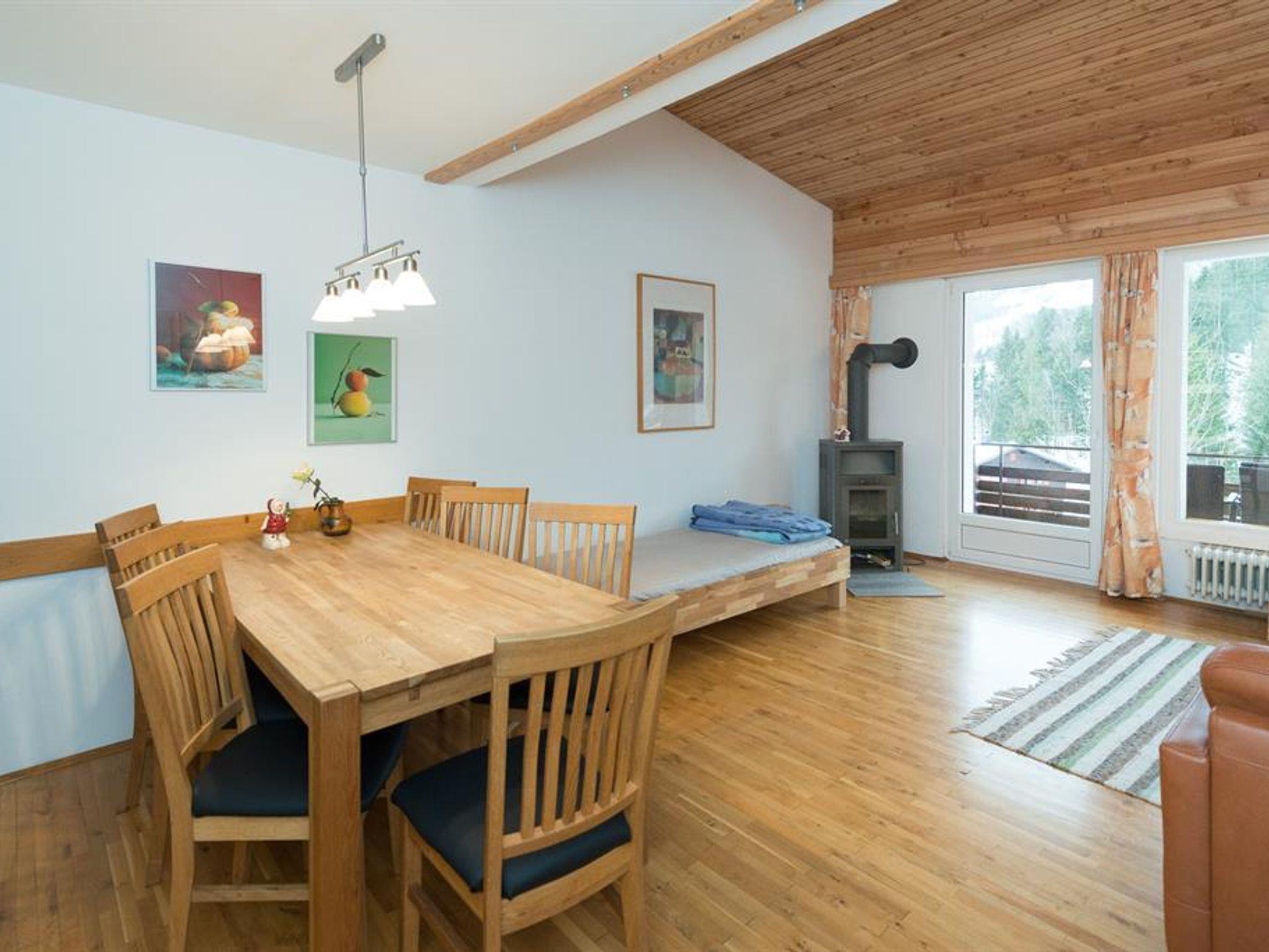 Unser Haus besitzt einen sehr großen Wohn-Essraum mit einem südseitigen Fenster mit großartigem Blick auf die Bergwelt des Rätikons. Der geräumige Aufenthaltsraum bietet viel Platz mit Freunden und Familie zusammen zu sitzen, um zu spielen oder auch nur ein Gläschen miteinander zu trinken. Gleich anschließend befindet sich eine moderne Küche (inklusive Geschirrspüler) und zwei Schlafzimmer (mit je 4 Betten) im unteren Stock.