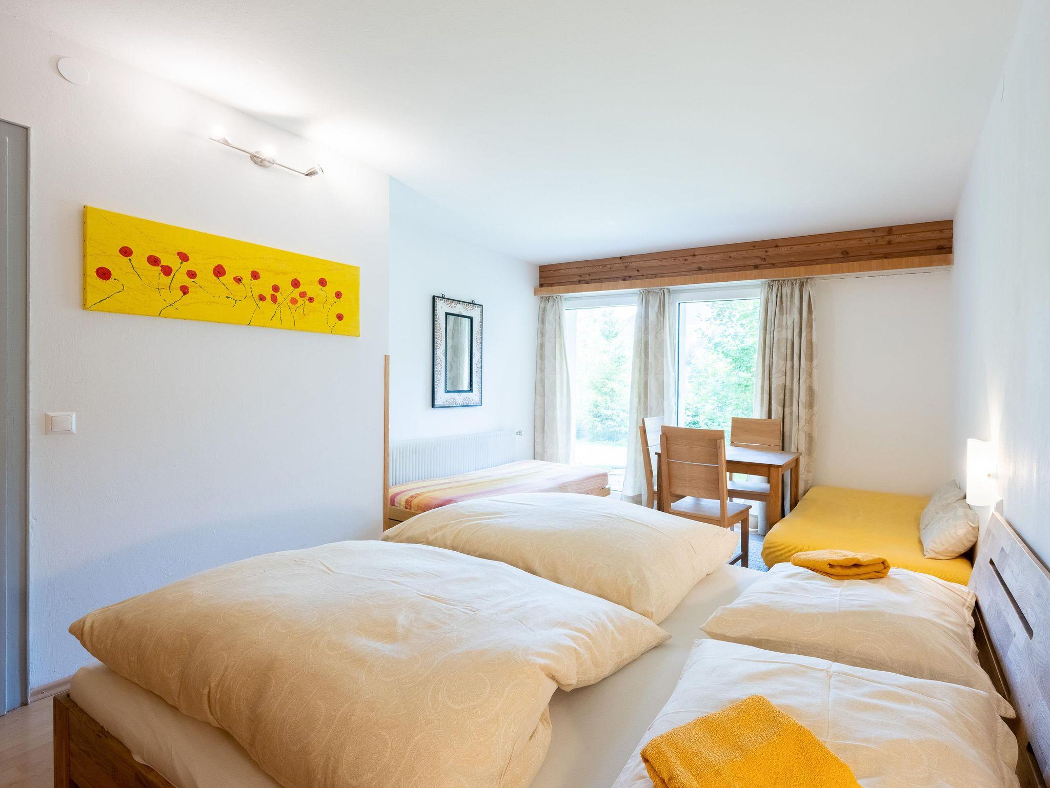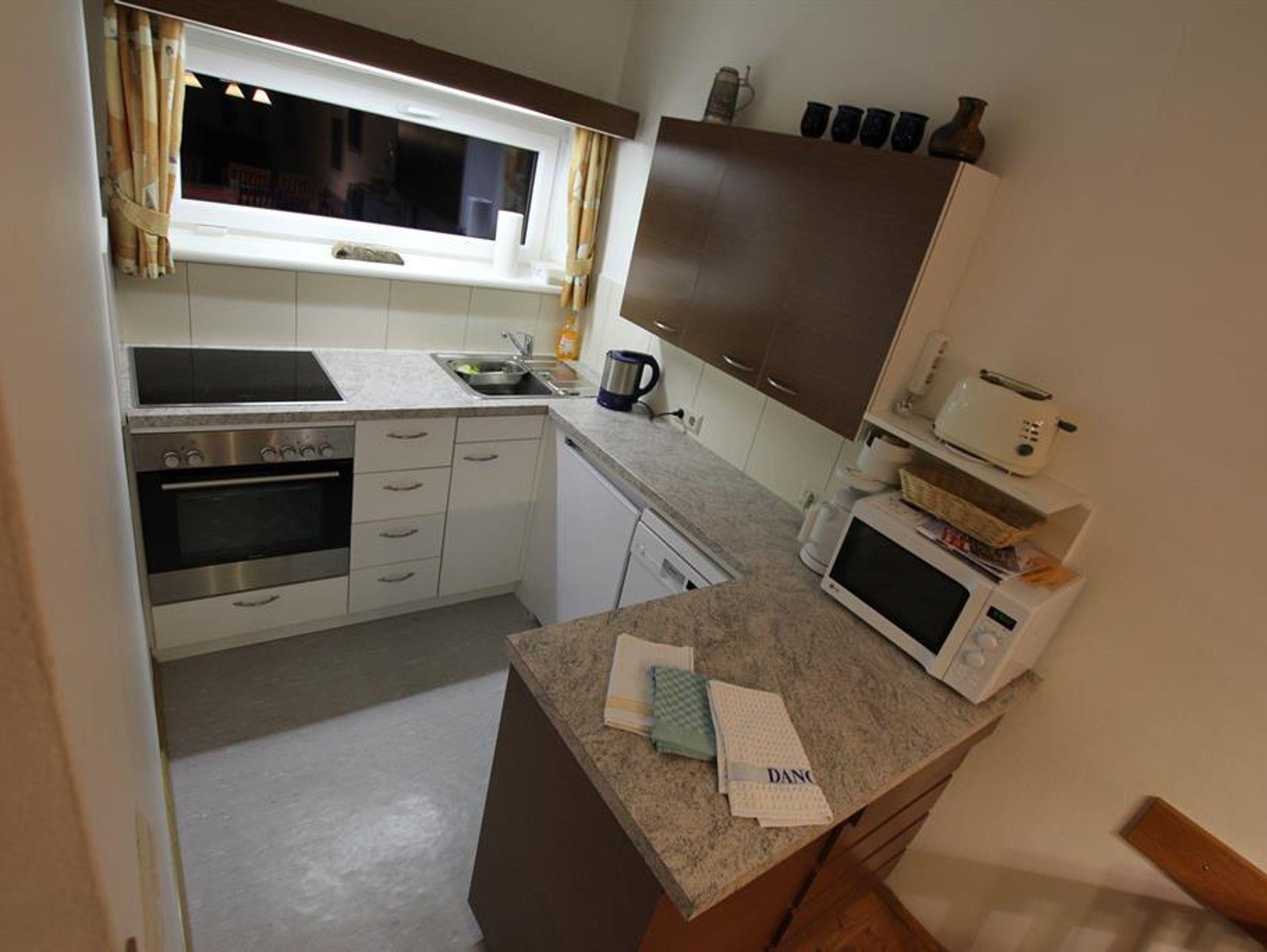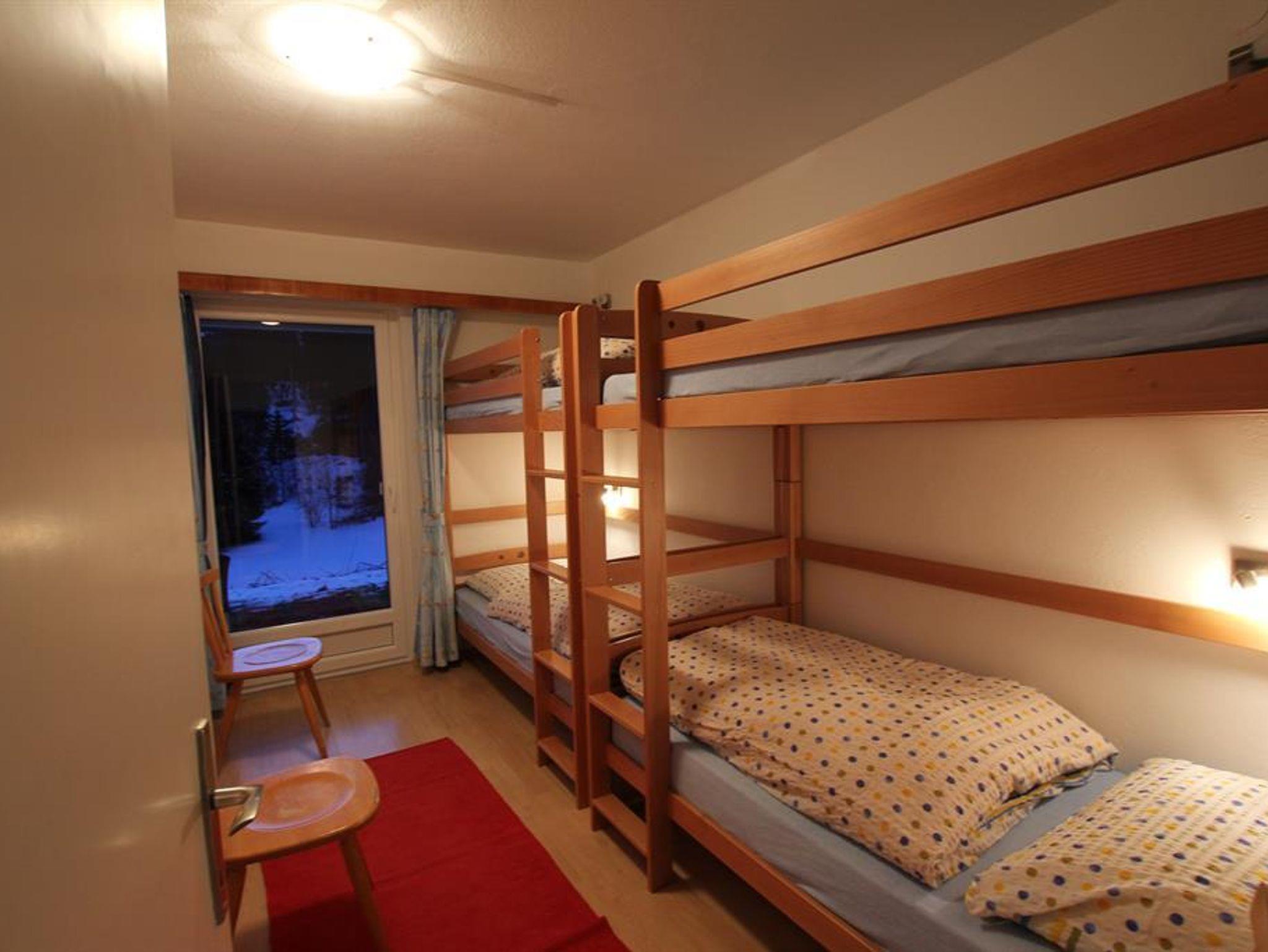 Unser Haus besitzt einen sehr großen Wohn-Essraum mit einem südseitigen Fenster mit großartigem Blick auf die Bergwelt des Rätikons. Der geräumige Aufenthaltsraum bietet viel Platz mit Freunden und Familie zusammen zu sitzen, um zu spielen oder auch nur ein Gläschen miteinander zu trinken. Gleich anschließend befindet sich eine moderne Küche (inklusive Geschirrspüler) und zwei Schlafzimmer (mit je 4 Betten) im unteren Stock.