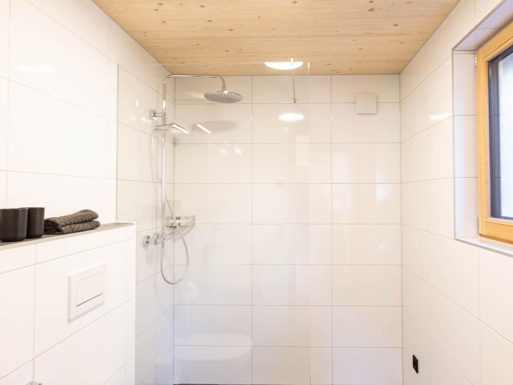Außerdem im EG: ein modernes Badezimmer mit Dusche und WC sowie ein separates Zimmer mit Stockbett.