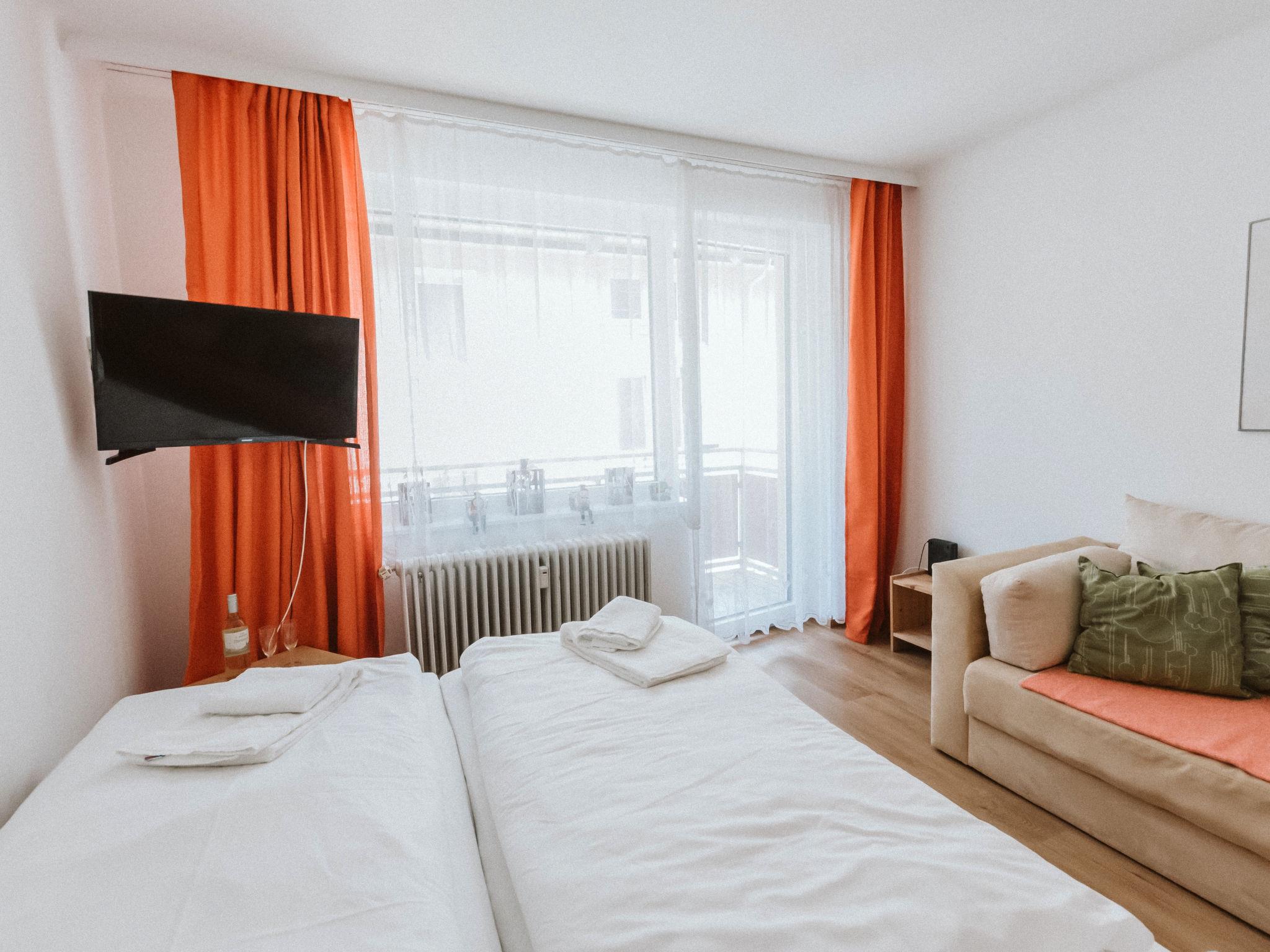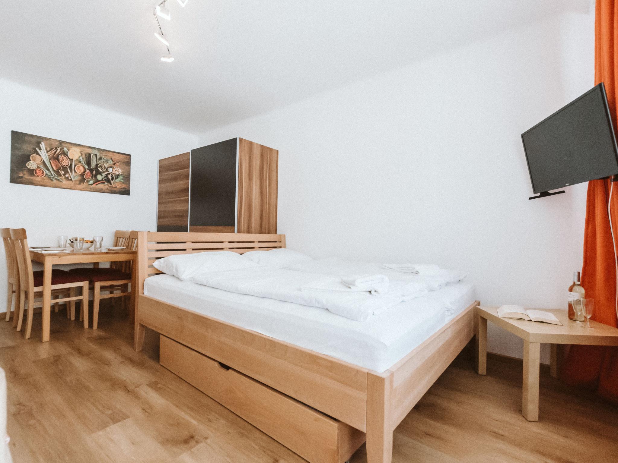 "Stubner Kogel Top 18", 1-room apartment 35 m2 on 2nd floor. Bright, renovated in 2021, very cosy furnishings: entrance hall. Living/sleeping room with 1 sofabed, 1 double bed, dining table and satellite TV (flat screen). Exit to the balcony. Small kitchen (oven, 4 ceramic glass hob hotplates, toaster, kettle, microwave, electric coffee machine). Bath/WC. Boiler (100 litres). Parquet floors. Balcony 4 m2. View of the mountains and the resort. Facilities: Internet (WiFi, free). Please note: non-smokers only. Smoke alarm. 50403-000313-2020